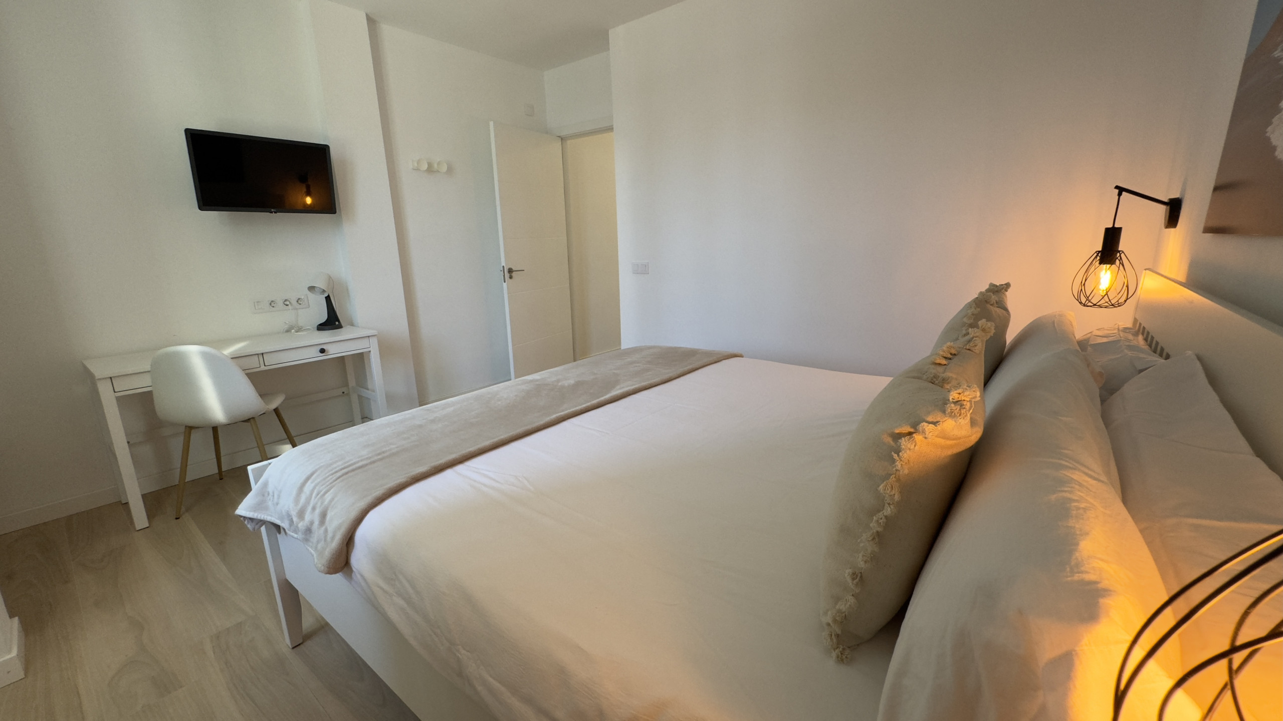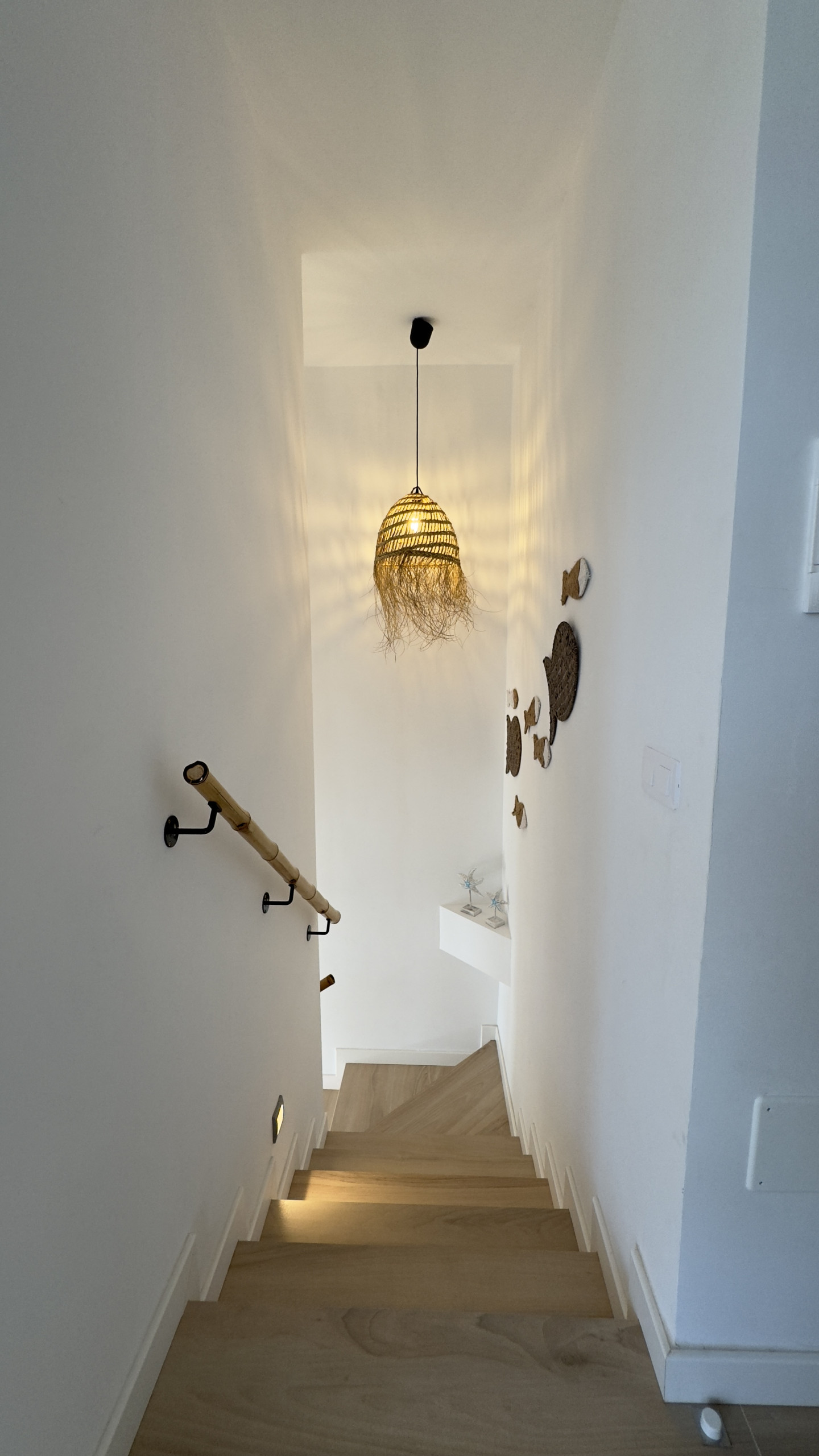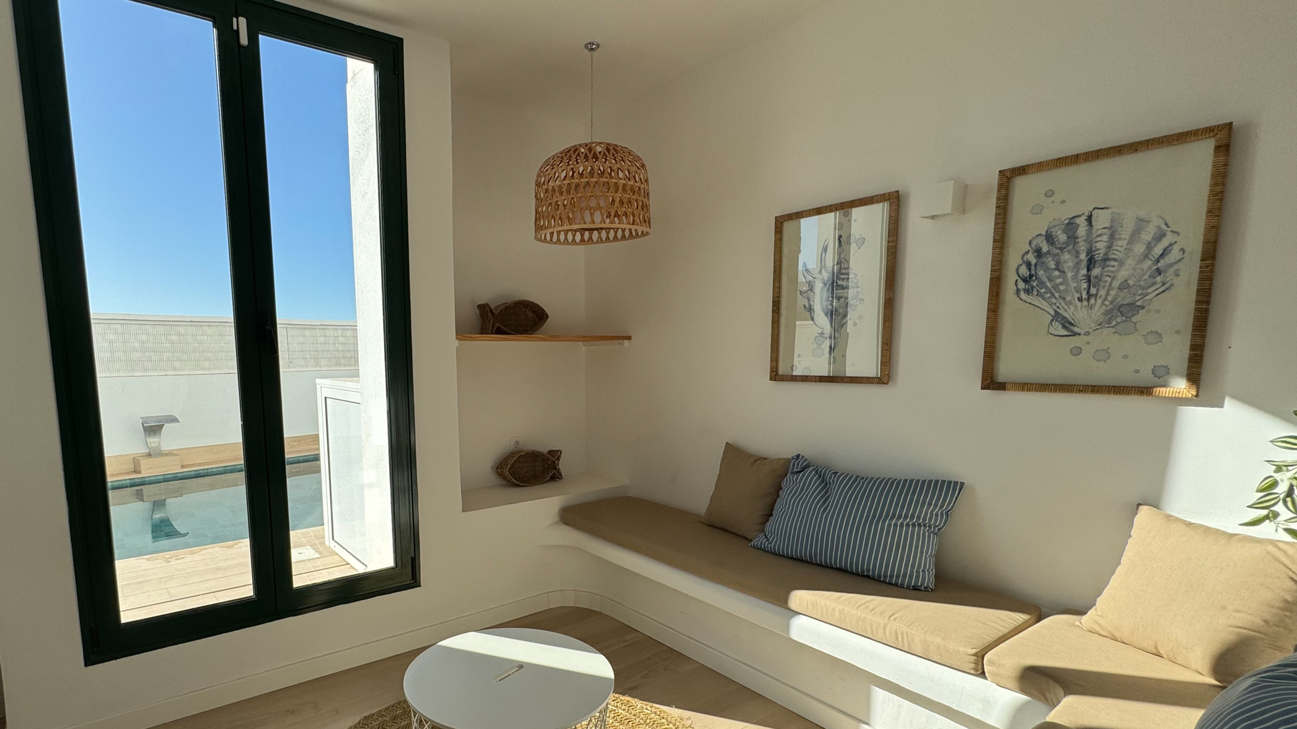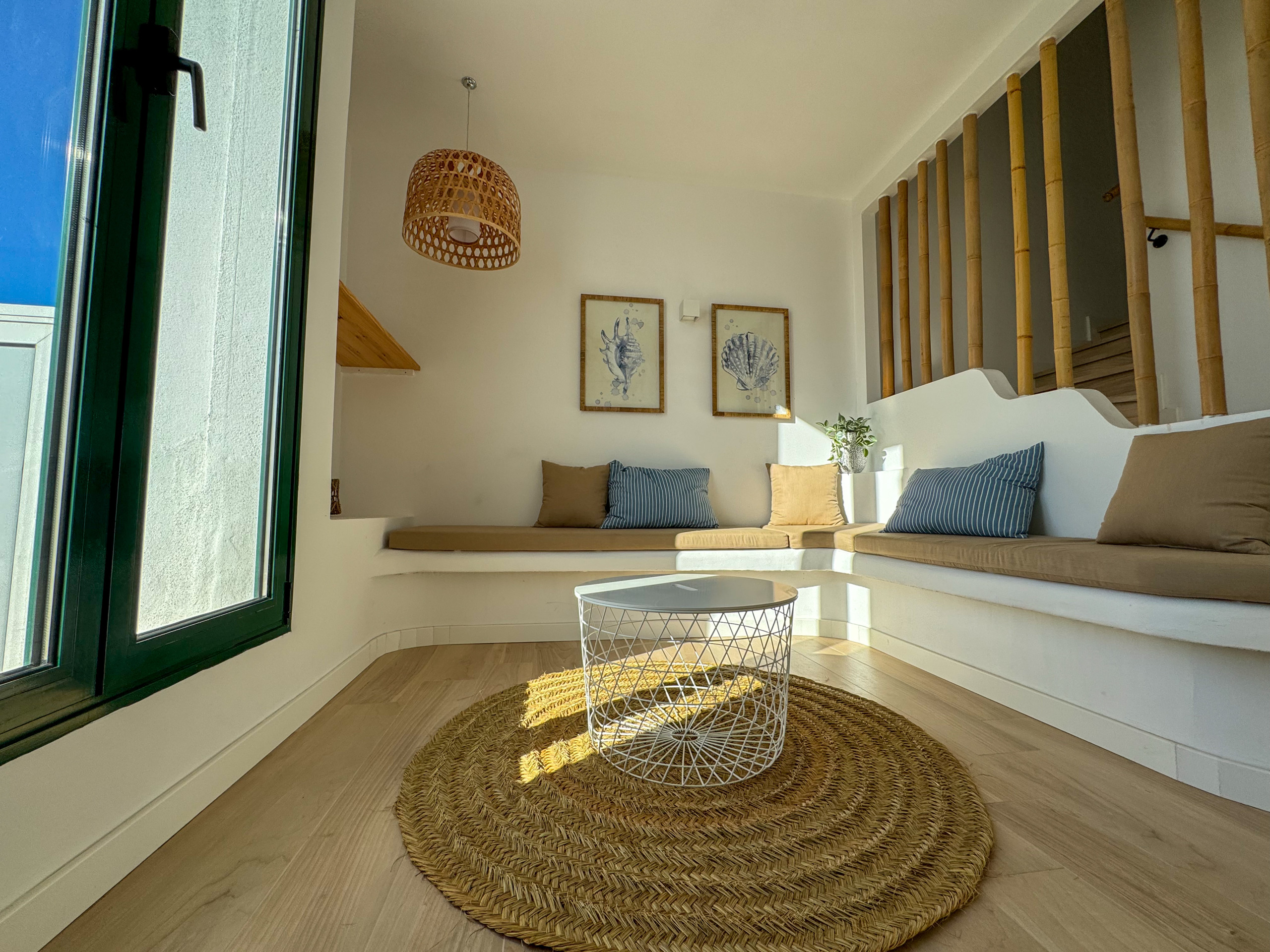 En el primer piso hay dos dormitorios adicionales, un baño completo con ducha, un aseo independiente y una pequeña sala de estar con sofá cama y acceso a un balcón donde se puede disfrutar del sol.