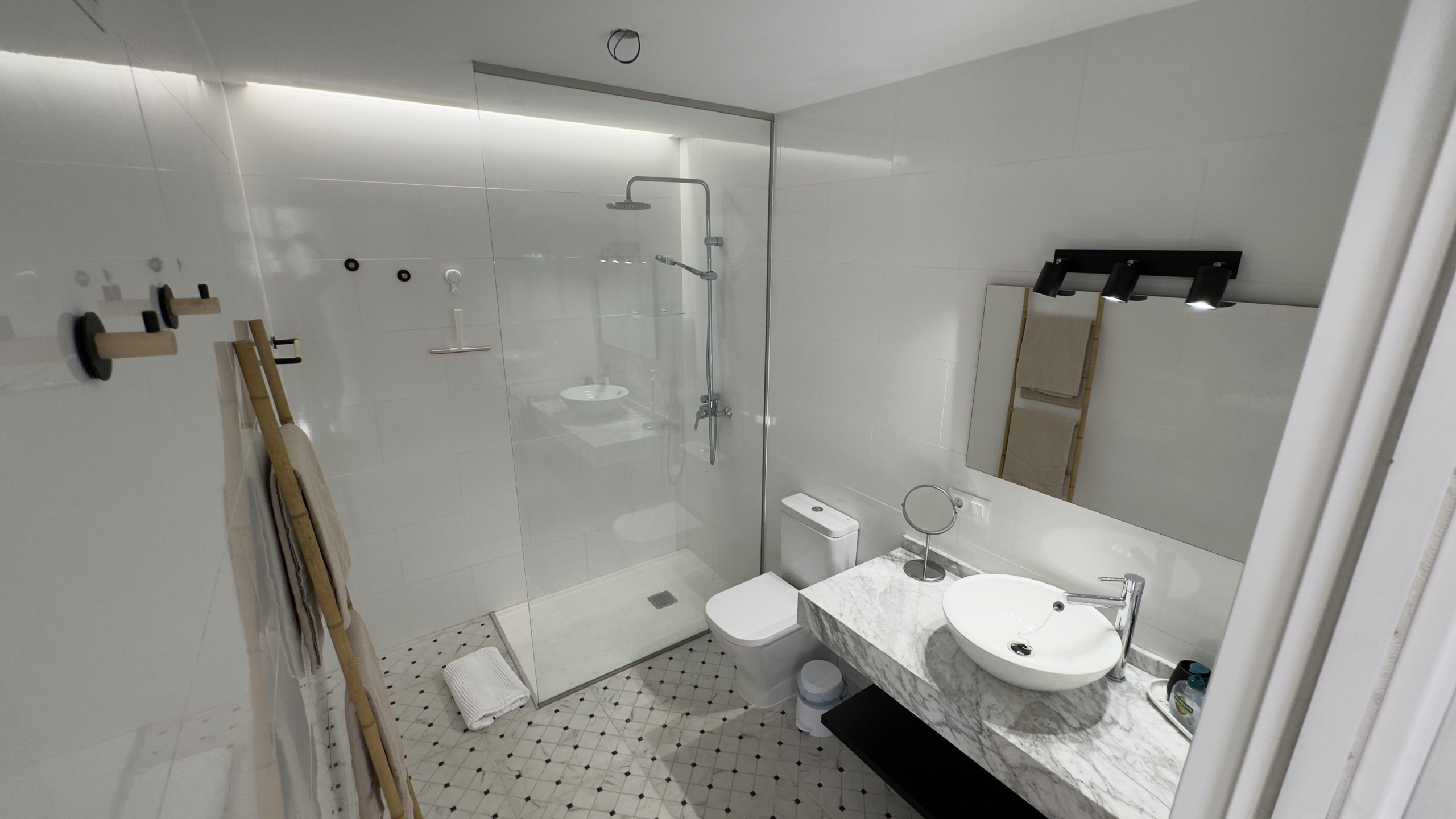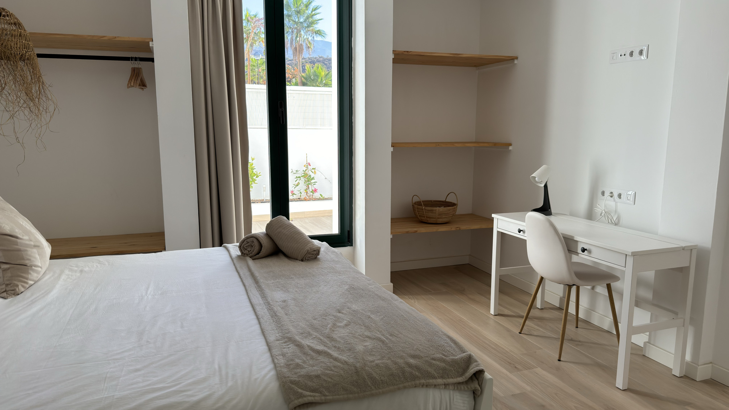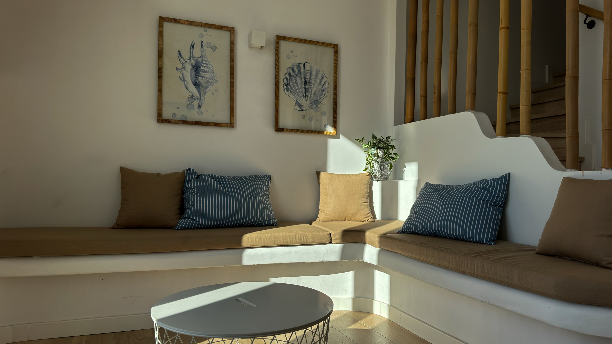 Lilias Home dispone de tres dormitorios y es una opción ideal tanto para familias como para trabajadores remotos. Aunque se encuentra dentro de un edificio, cuenta con acceso independiente y piscina privada. En la planta baja se encuentra una cocina completamente equipada con todos los electrodomésticos necesarios, una cómoda sala de estar con televisión de pantalla grande (con canales vía satélite Astra), wifi y un aseo de cortesía. En esta misma planta se ubica el dormitorio principal, que incluye un elegante baño en suite y es perfecto para quienes prefieren evitar escaleras.