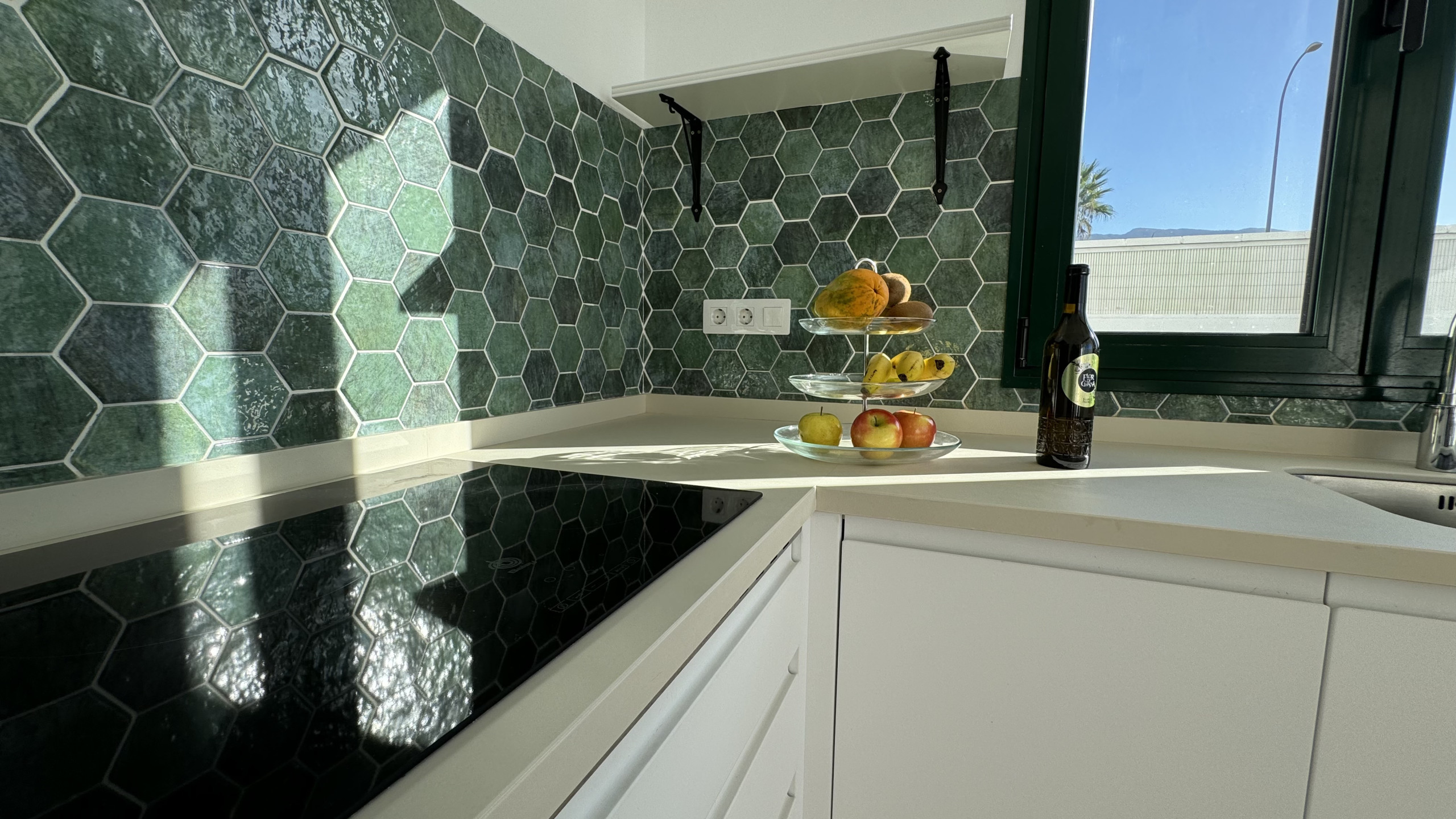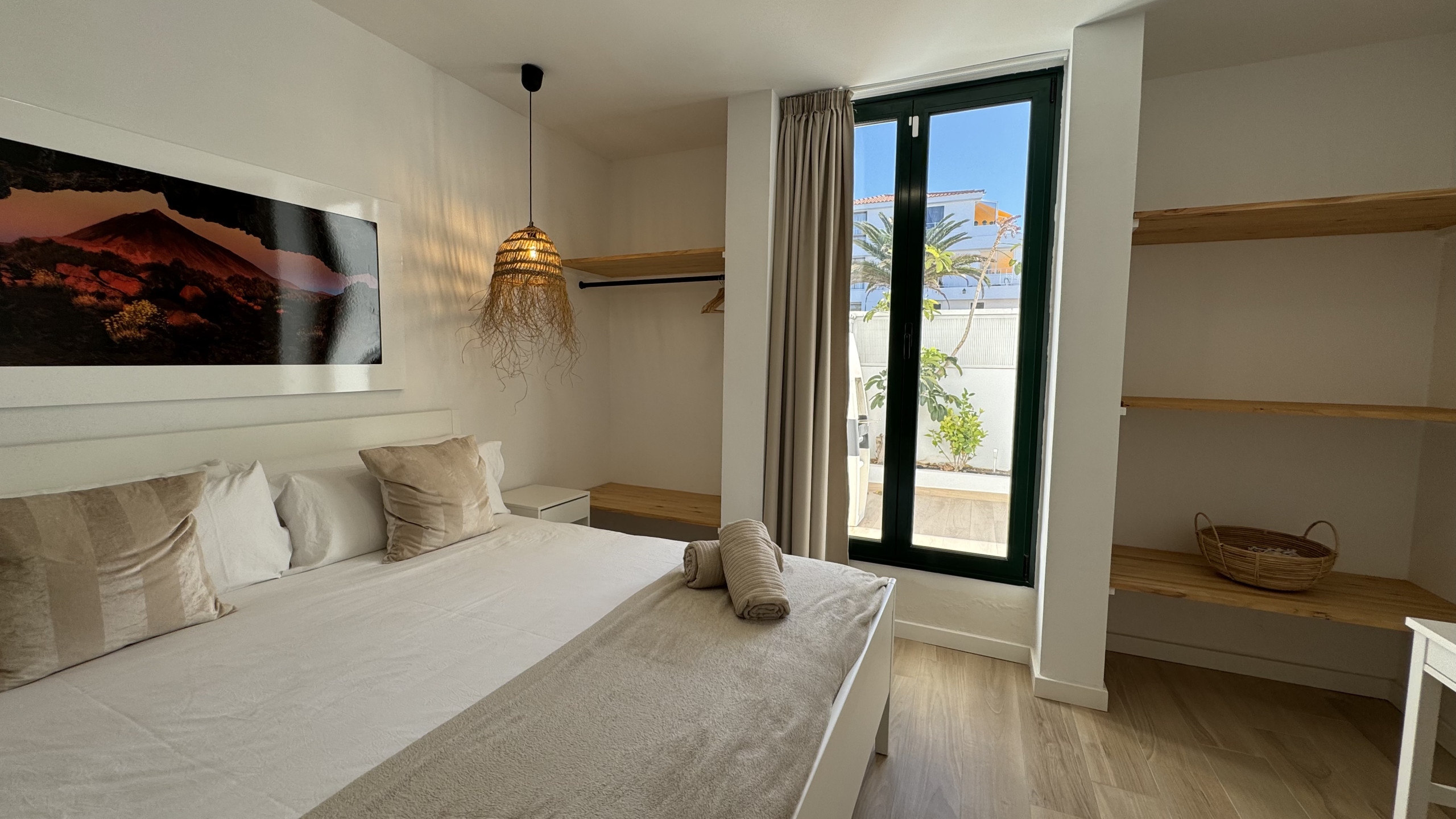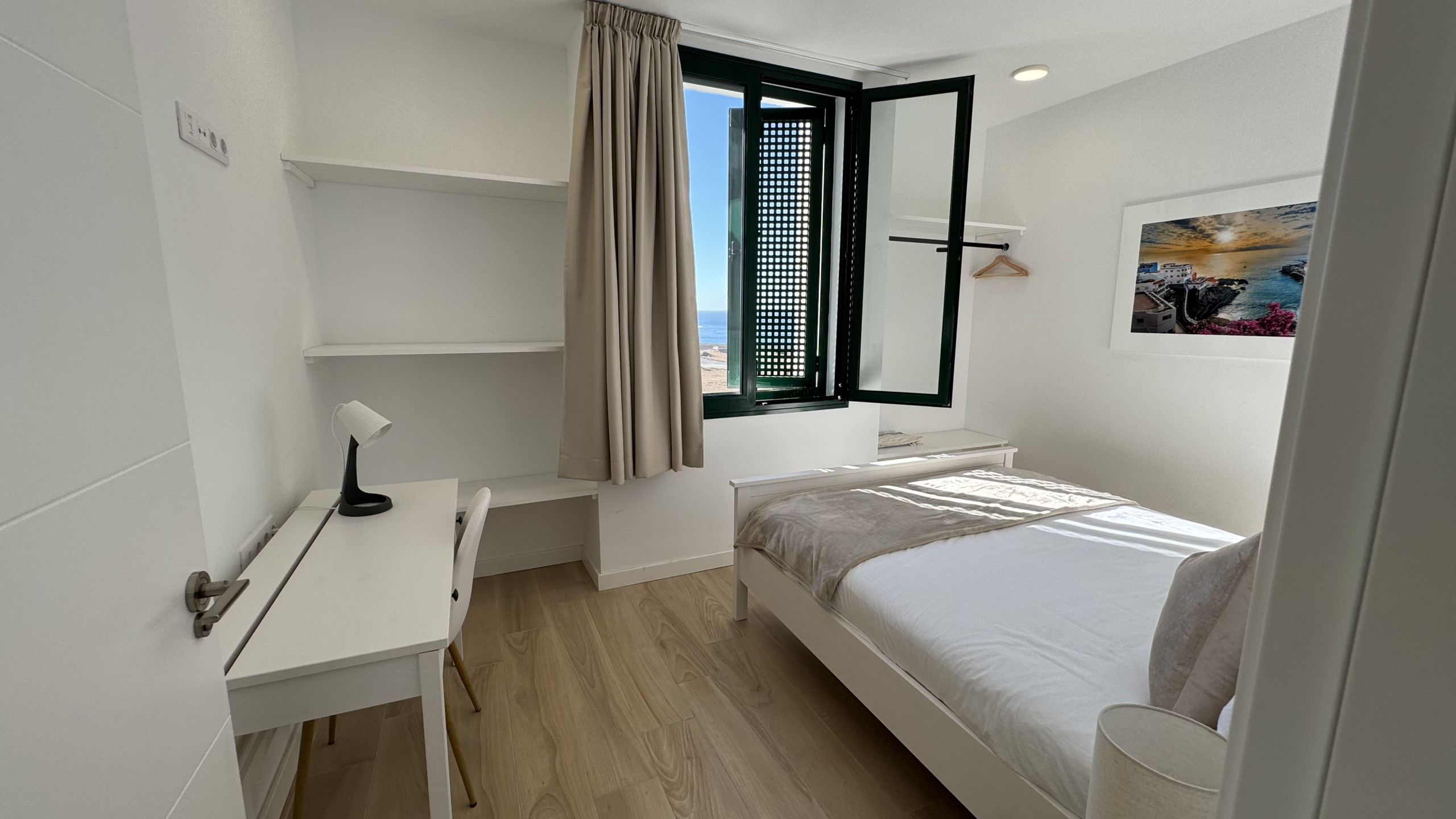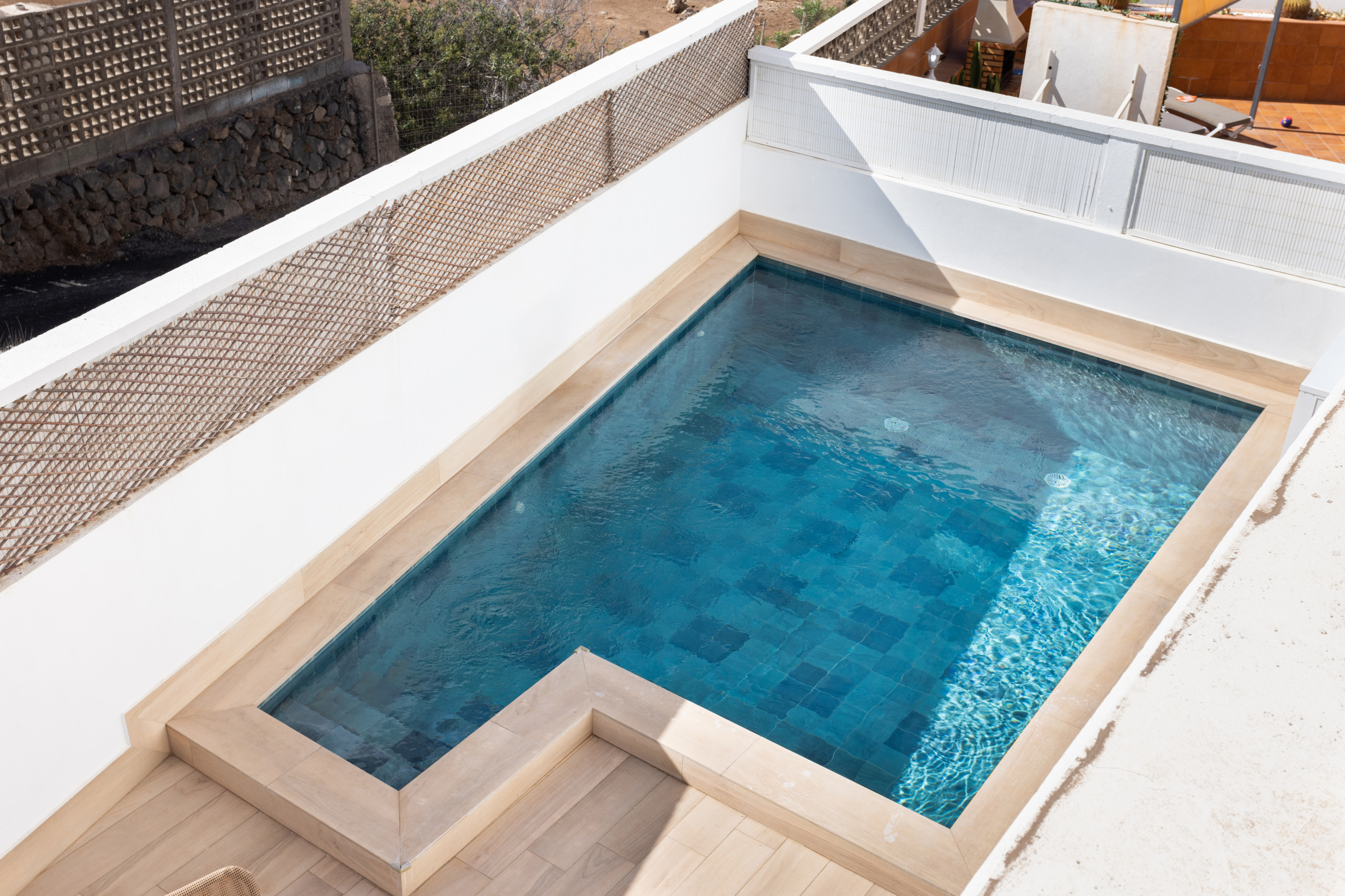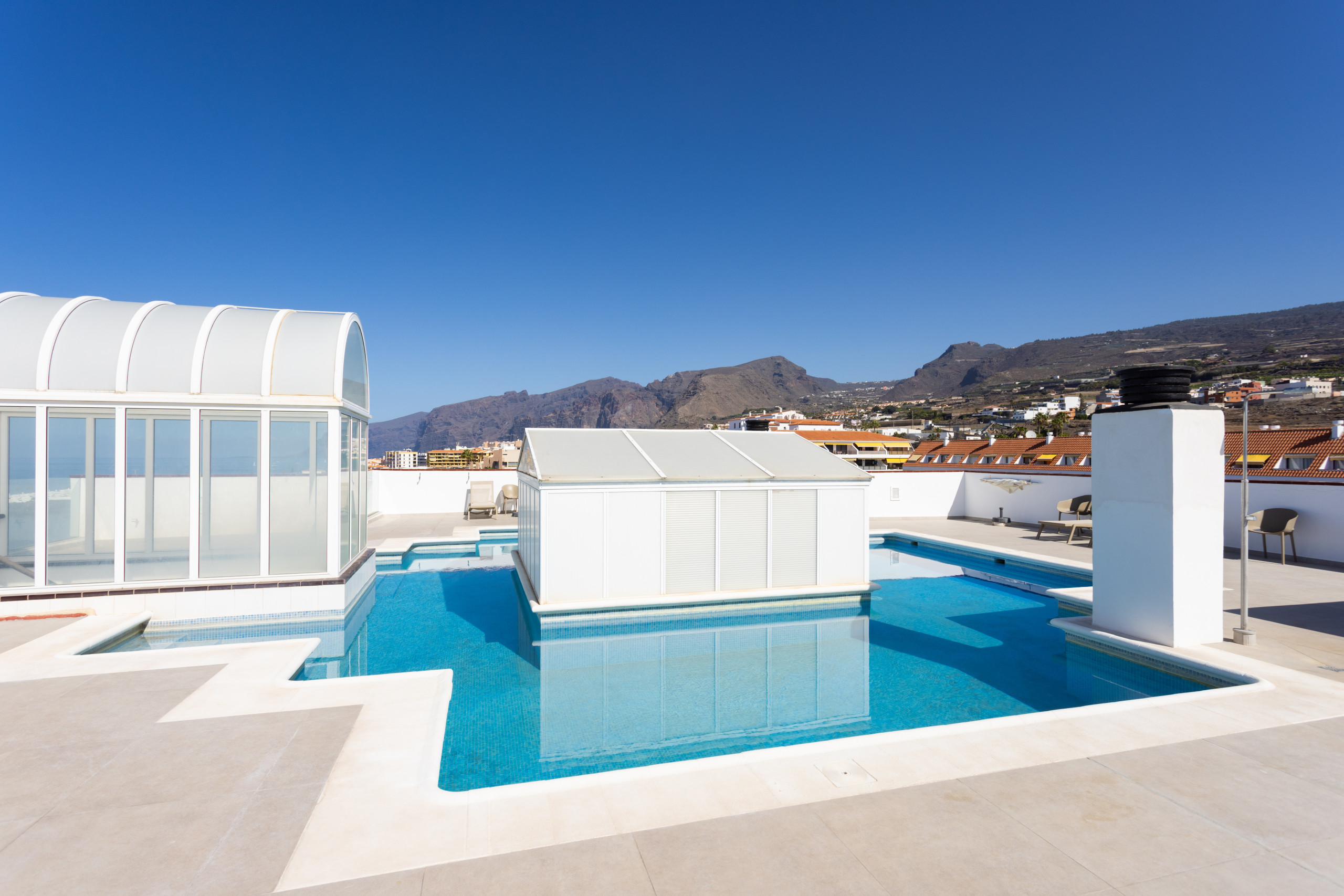 En la azotea del edificio hay una piscina comunitaria con espectaculares vistas al mar, las montañas y la isla de La Gomera.