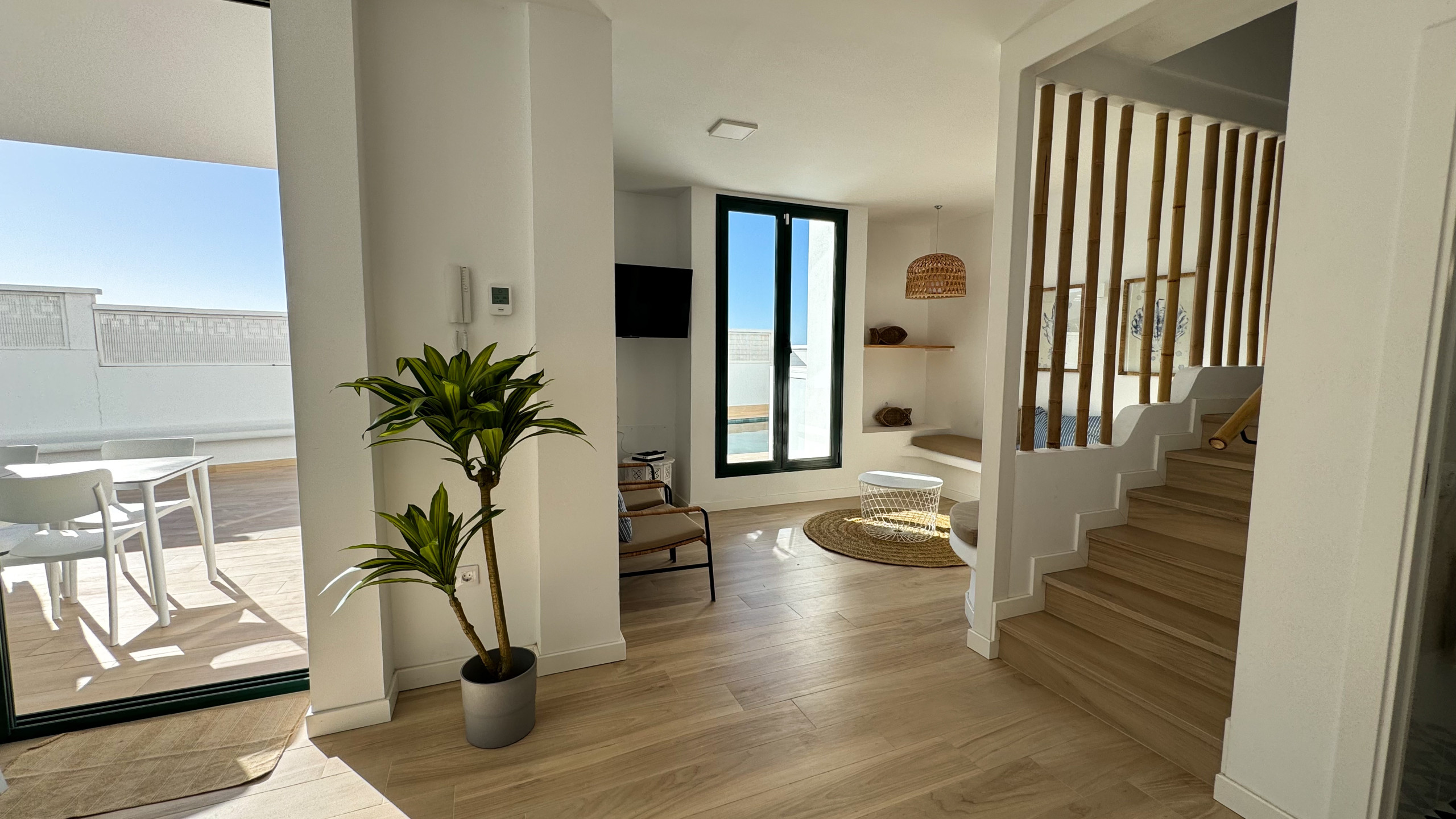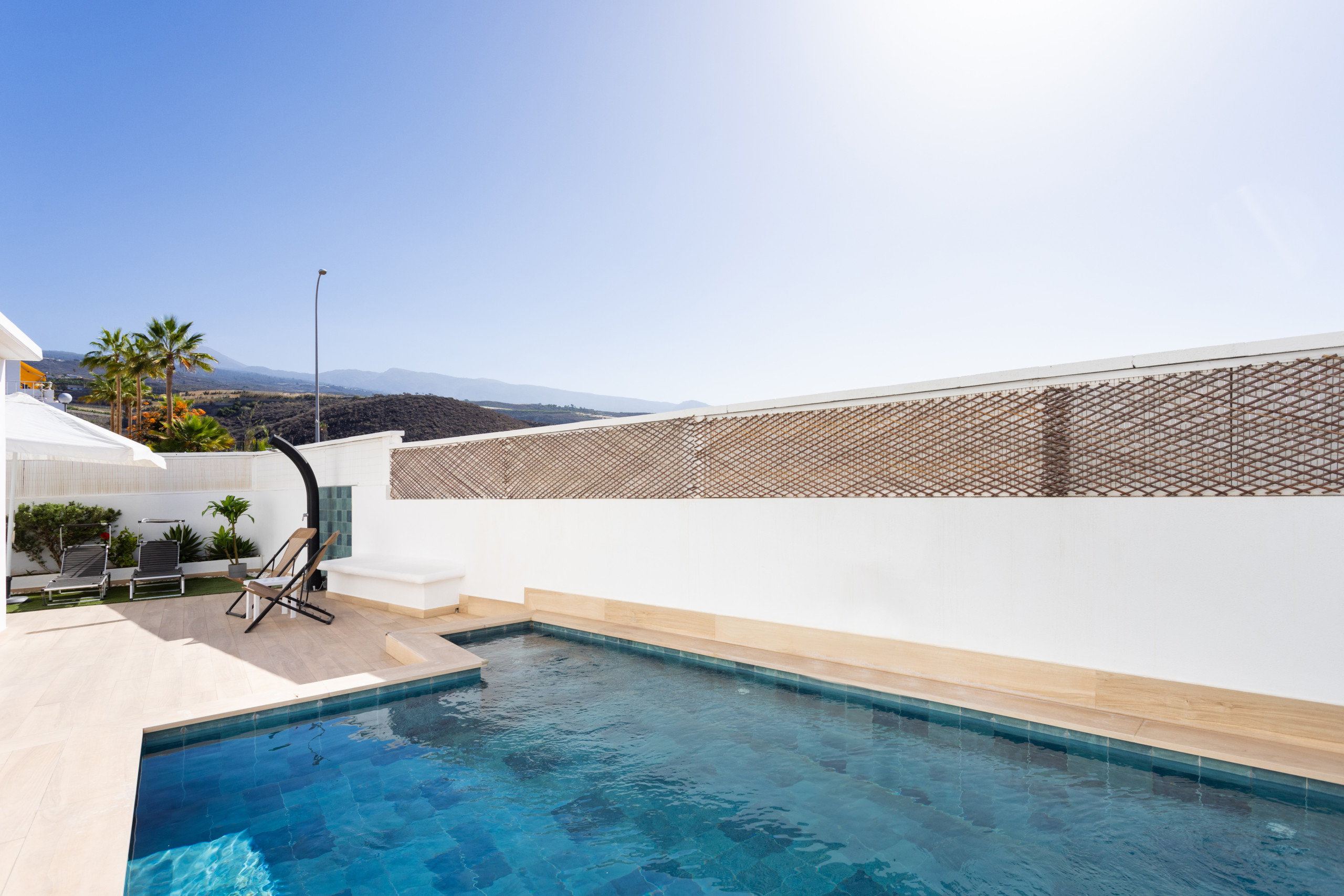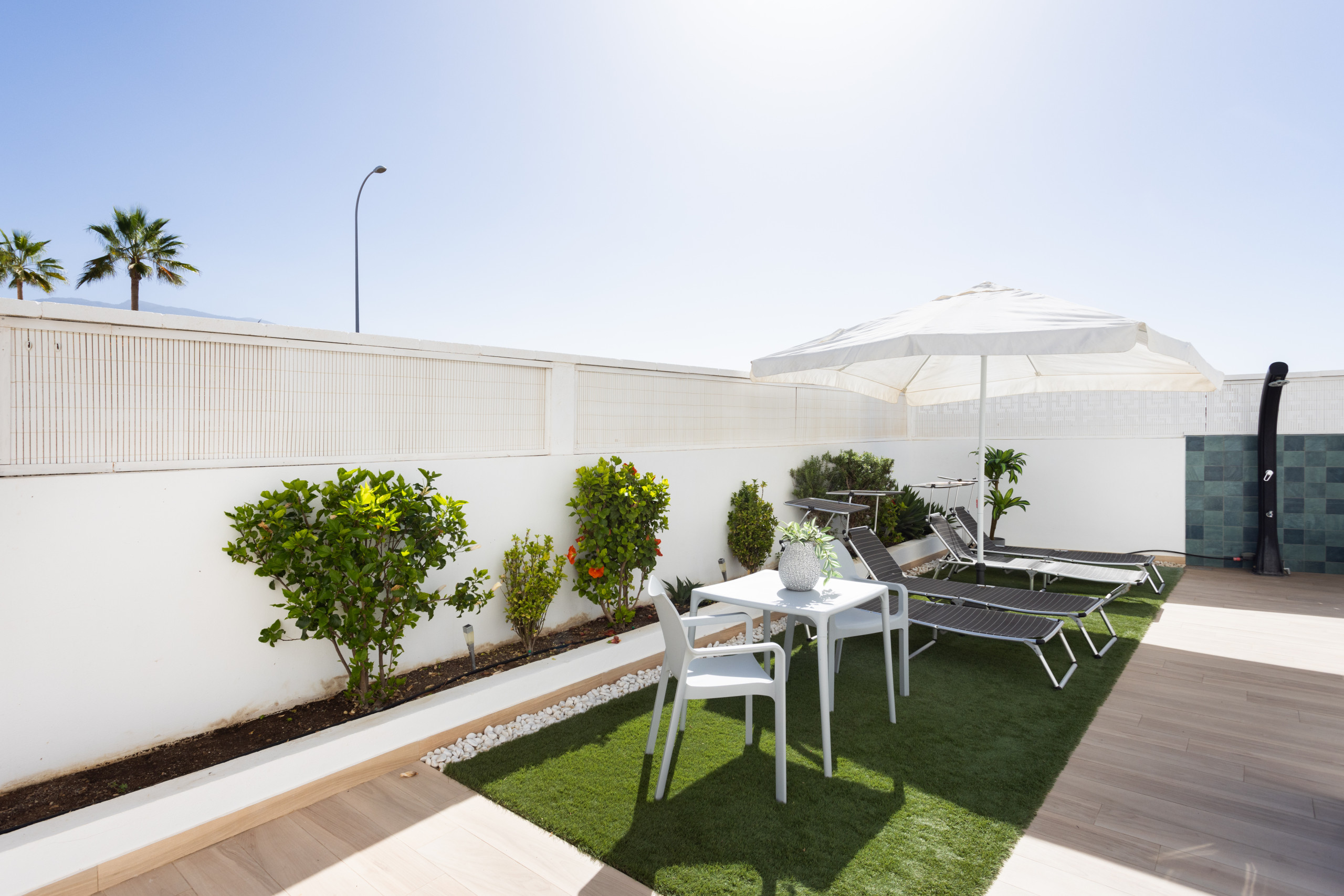 Moderna casa de alquiler vacacional con piscina privada calefactable a solo unos minutos a pie del mar y la playa de Playa la Arena.