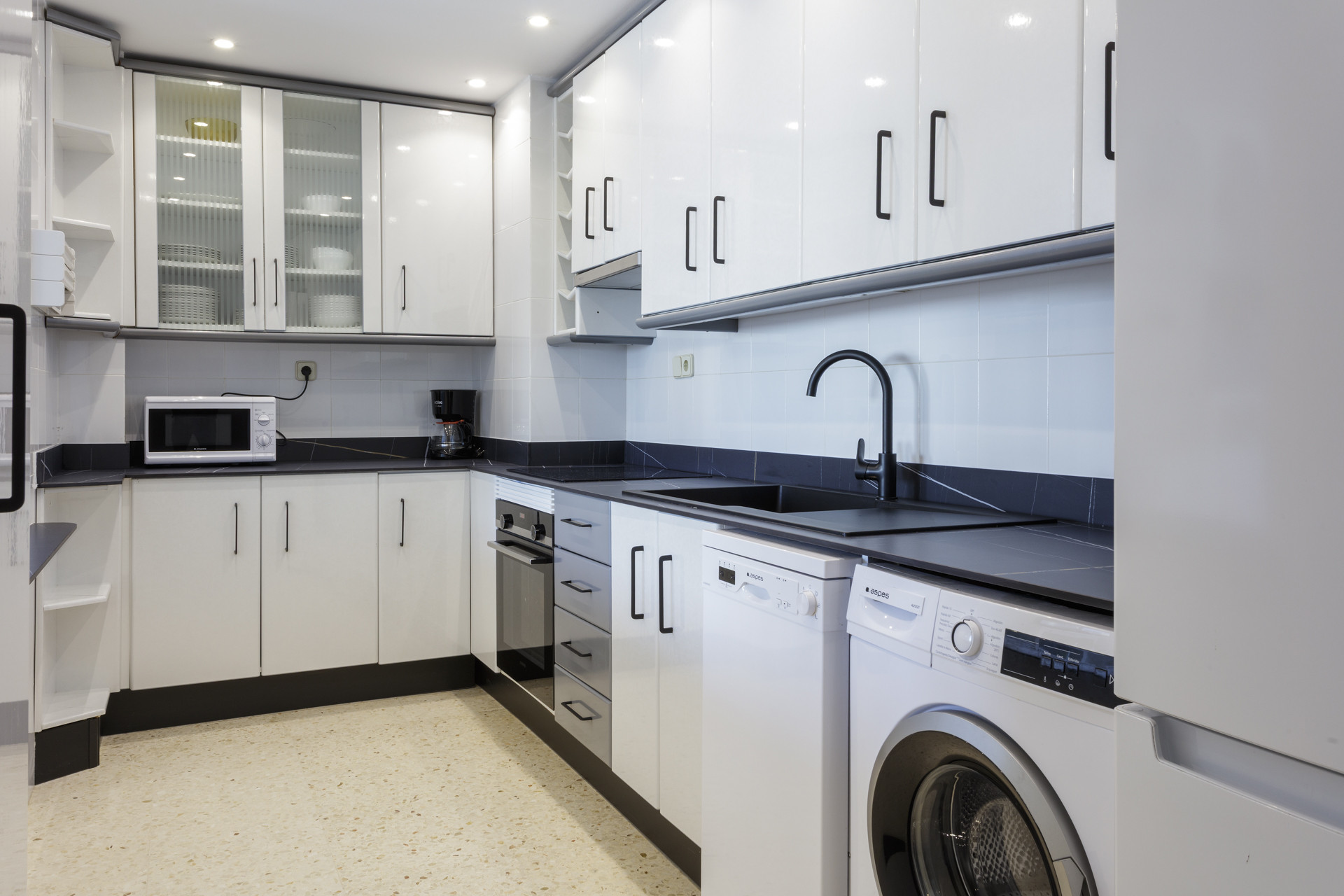 Cocina con lavavajillas, lavadora, tostadora, exprimidor, batidora, ollas, ... todo lo que puedas necesitar para unas largas vacaciones.