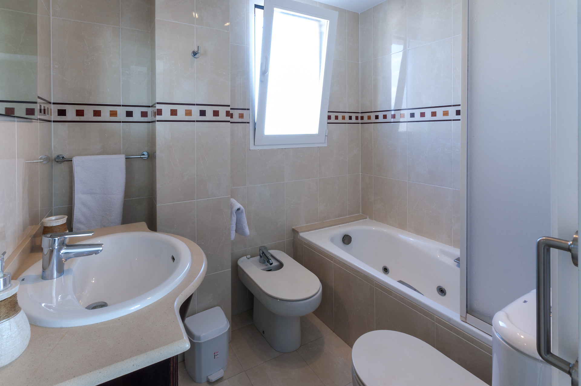 El baño principal es un poco justo al tener bañera, inodoro y bidé. Habría sido mejor no tener bidé y disponer de un poco más de espacio.