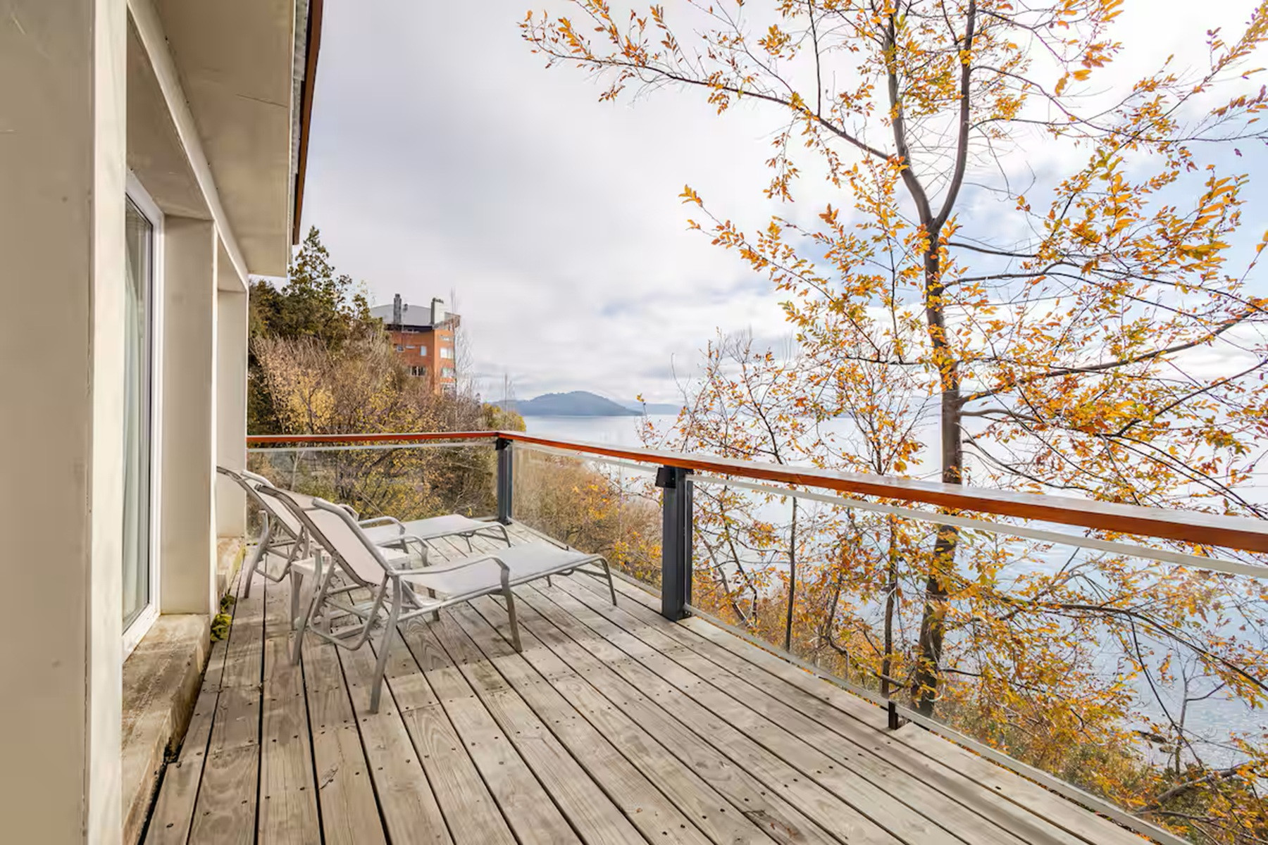 Alojamiento de 70 m², situado en primera línea de playa, con vistas a la montaña y al lago.