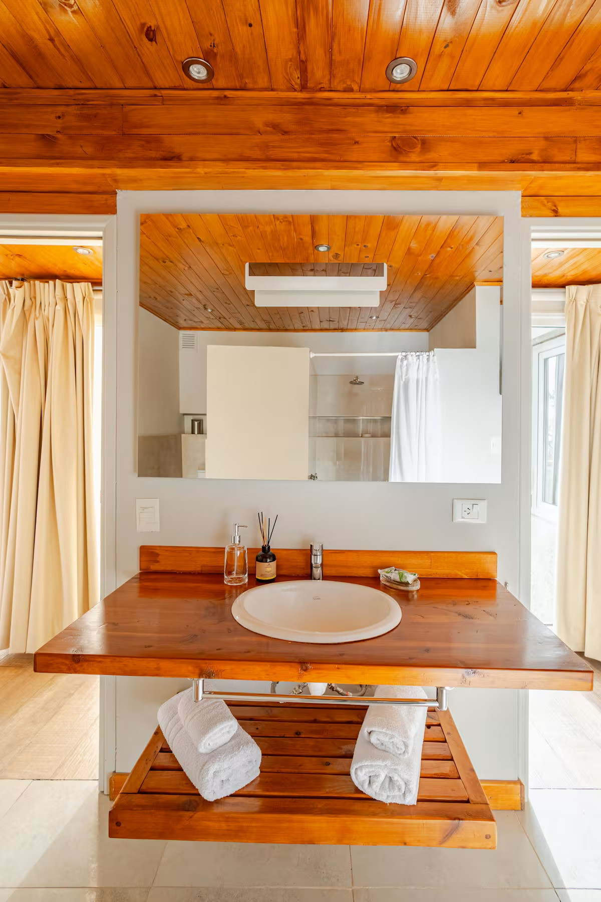 La cabaña comparte predio con otras dos cabañas y una casa principal con entrada independiente.