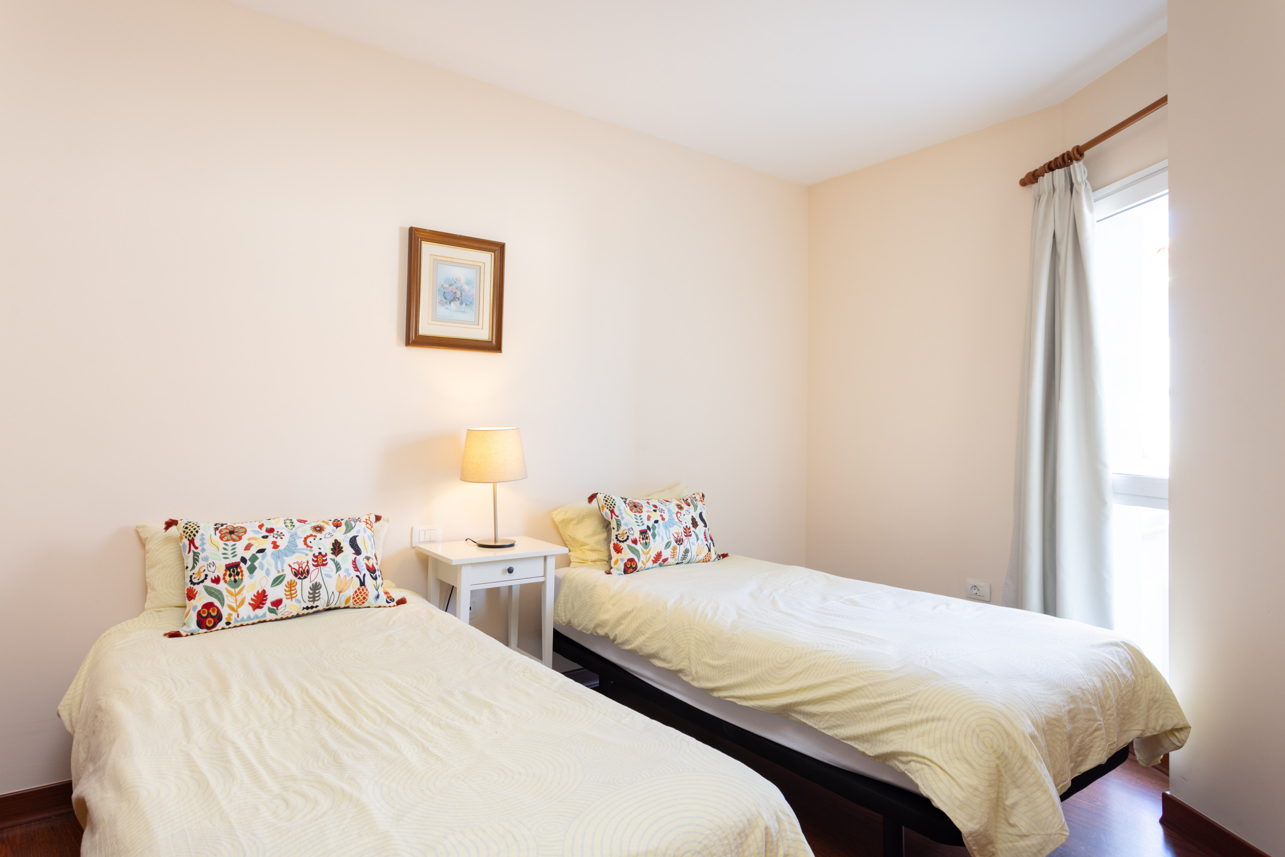 En la planta superior se encuentran dos dormitorios: uno con cama de matrimonio y otro con dos camas individuales. El baño principal dispone de ducha y se proporcionan tanto toallas de baño como toallas de playa. También se ofrecen cunas de viaje y sillas altas sin coste adicional, previa solicitud.