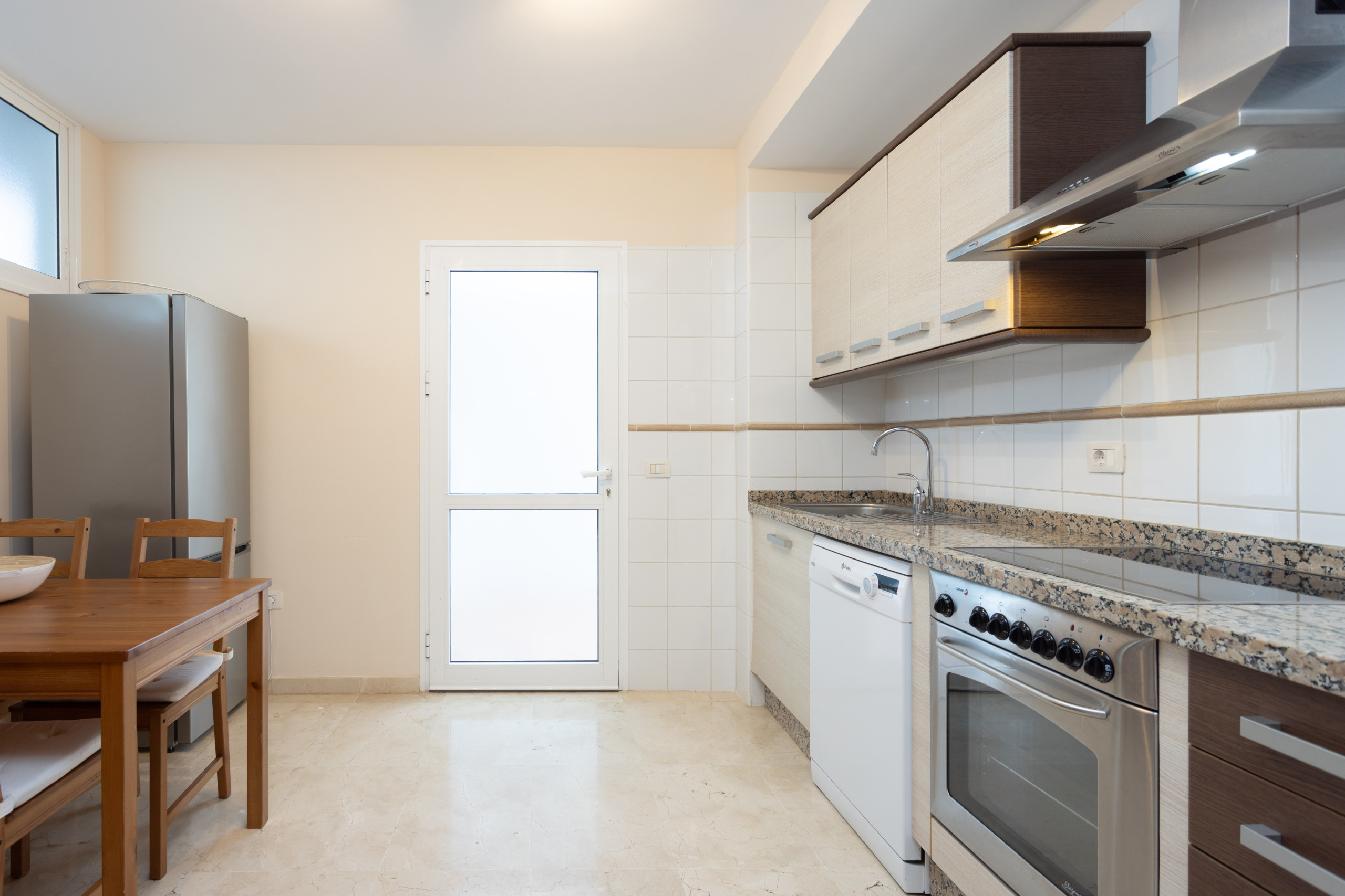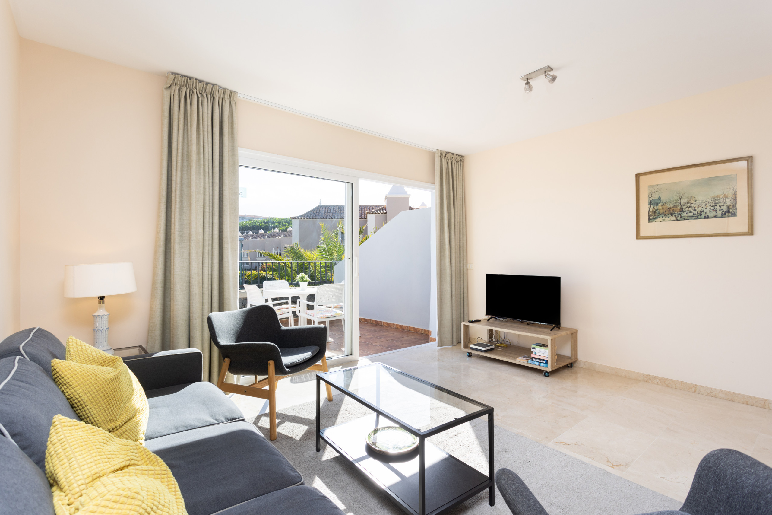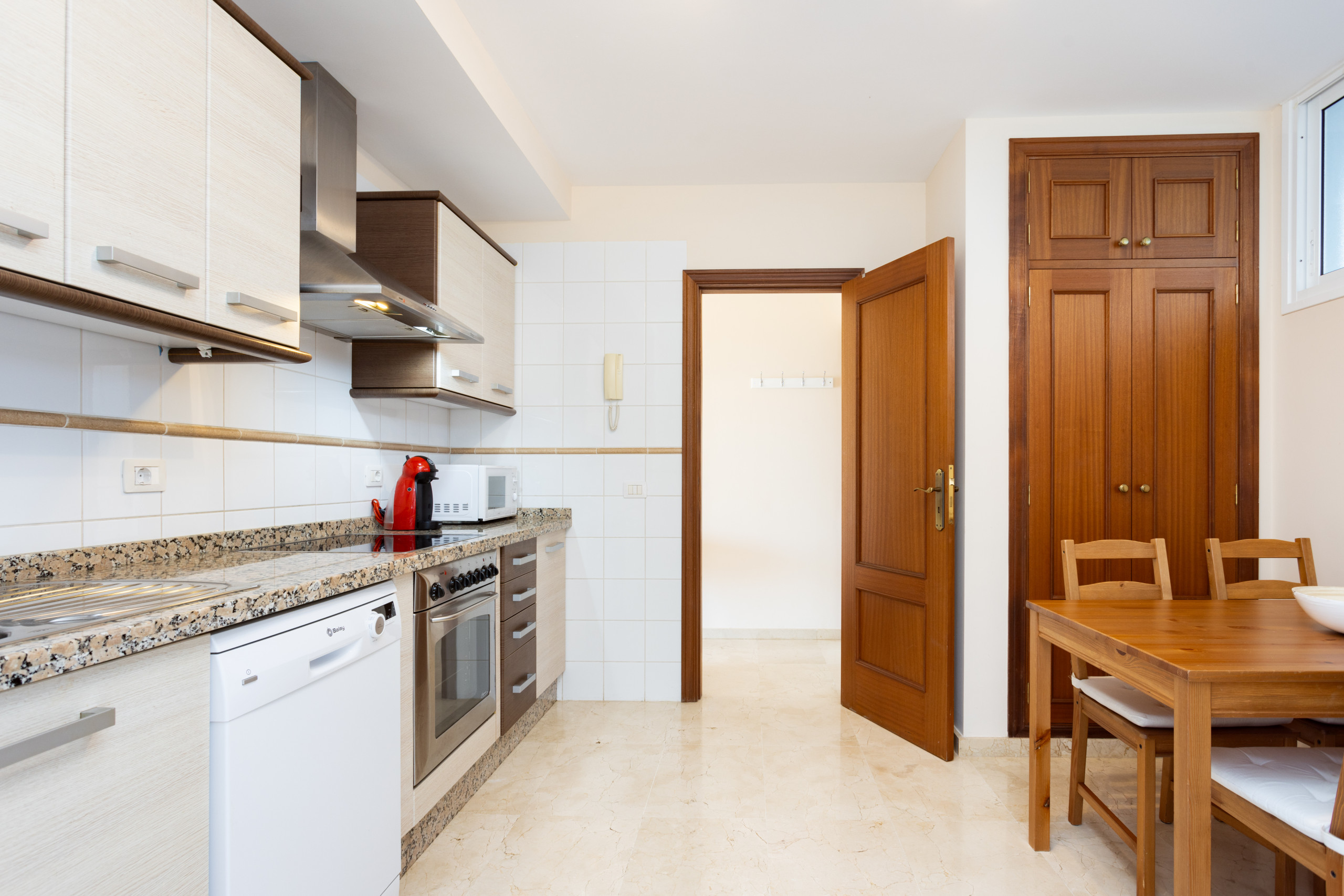 Al ingresar, encontrarás una cocina totalmente equipada que cubre todas las necesidades para una estancia prolongada, incluyendo lavavajillas. Junto a la cocina se ubica un aseo de cortesía. El salón dispone de un sofá cómodo y una smart TV con canales internacionales vía satélite, además de conexión wifi gratuita. Desde esta estancia se accede a una amplia terraza privada con vistas al Puerto de la Cruz y al Loro Parque. La terraza está equipada con dos tumbonas y una mesa con sillas para disfrutar del aire libre.