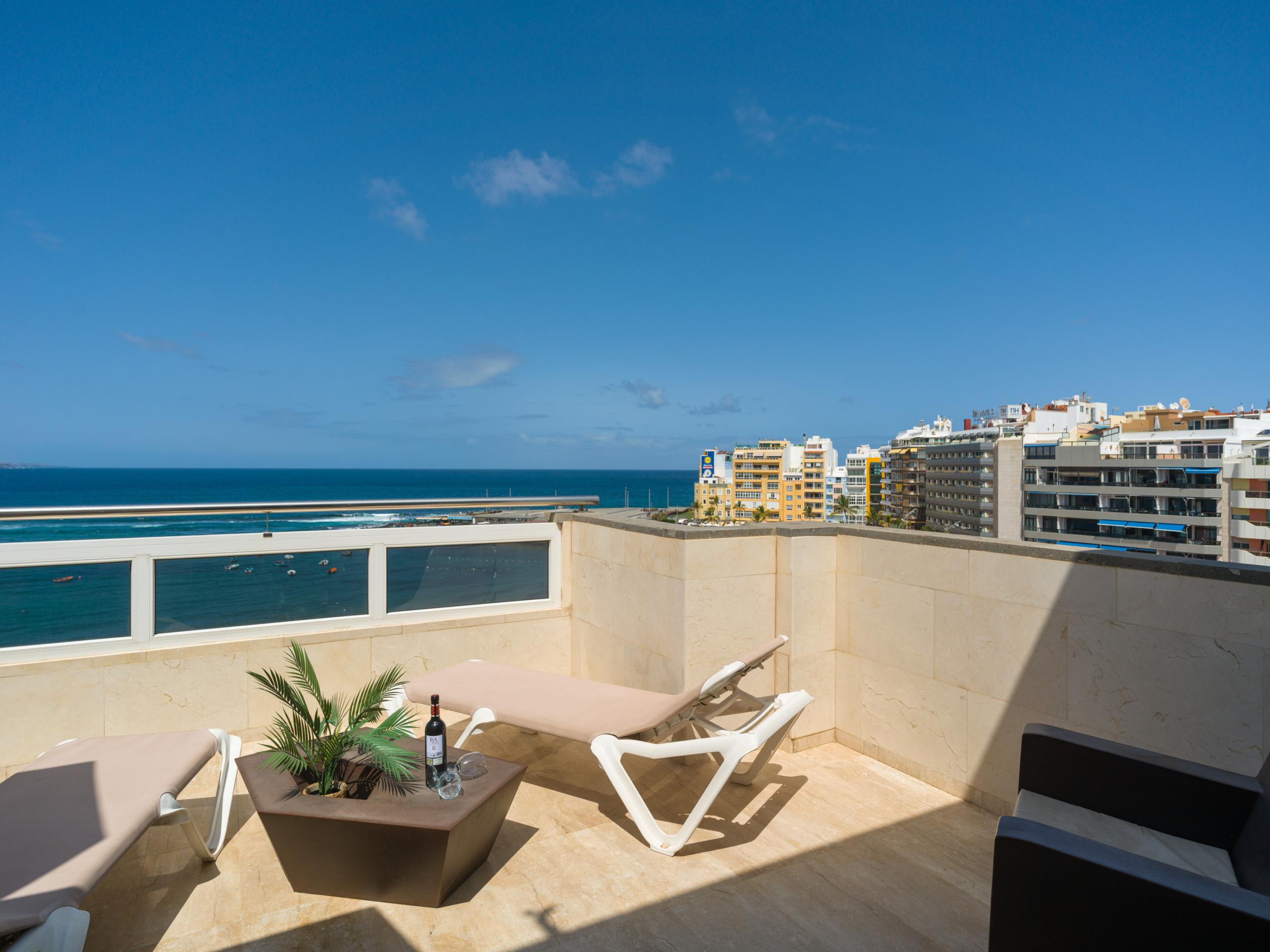 Una de las características destacadas de la vivienda vacacional es su terraza privada de 20 metros cuadrados, con muebles de exterior, hamacas incluidas, donde los huéspedes pueden relajarse, tumbarse al sol y disfrutar de la maravillosa vista al mar, de la playa, de la puesta del sol y de la isla de Tenerife, con su majestuoso volcán del Teide, montaña más alta de España.