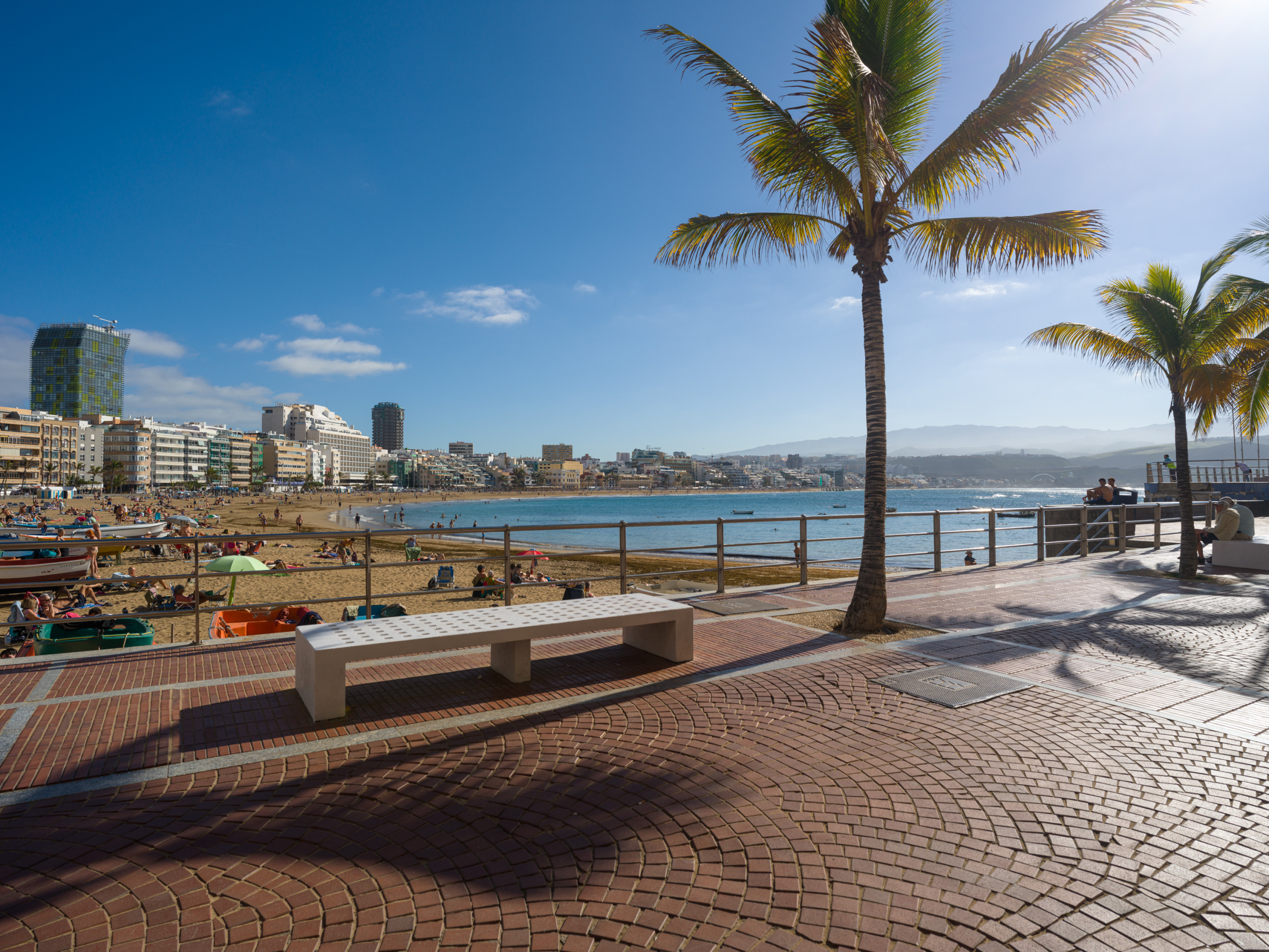 Le recomendamos el largo paseo que serpentea continuo a la arena, sorteando cafés y heladerías. Al inicio del paseo encontrará las terrazas de La Puntilla y los restaurantes de pescado fresco. En el otro extremo de la playa, el ambiente surfero alrededor del Auditorio Alfredo Kraus, con más terrazas y cafés frente al mar.