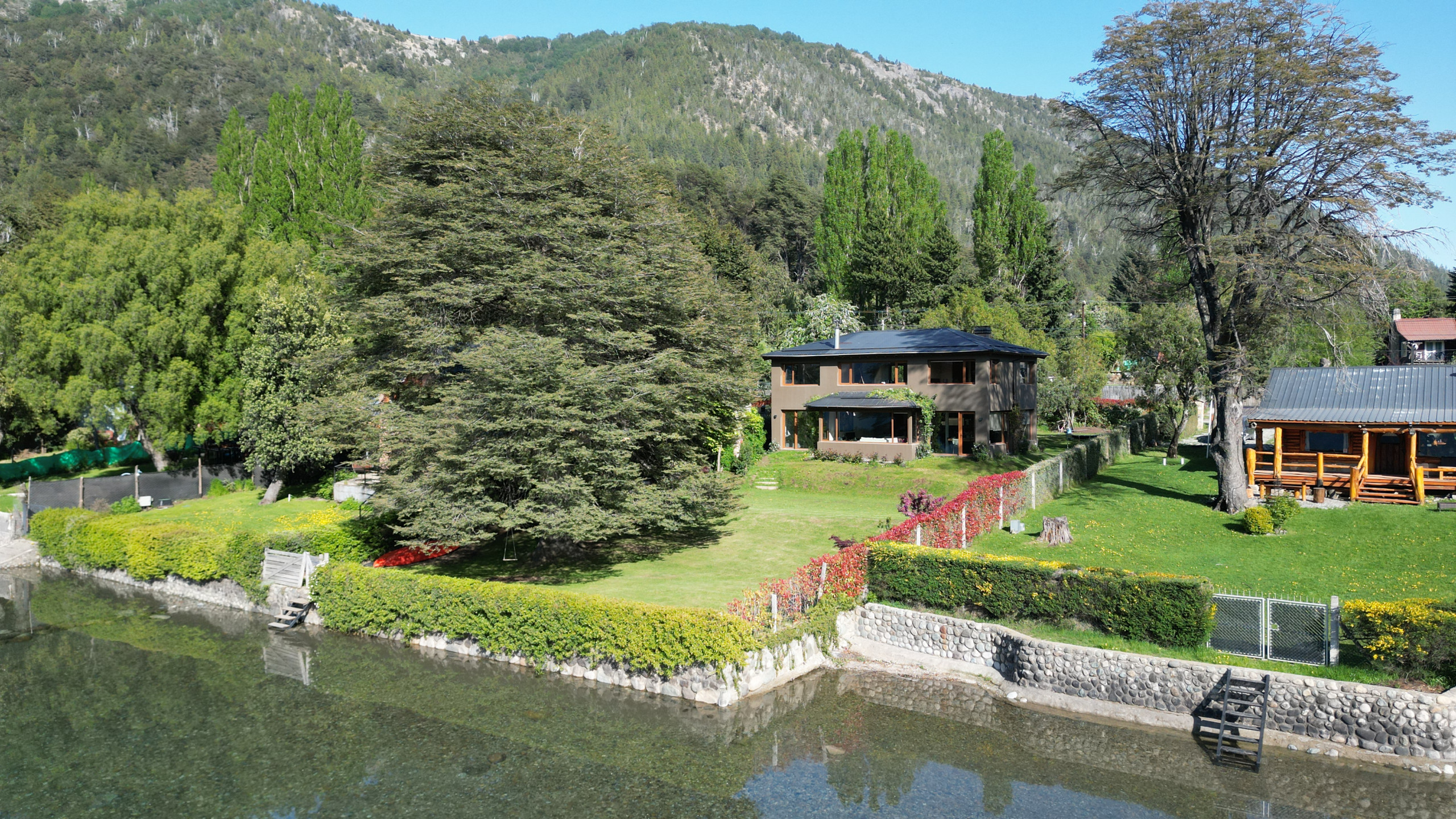Hermosa casa sobre costa de lago e increíble vista a las montañas y al Lago Gutiérrez. Linda y cómoda, sin lujos.