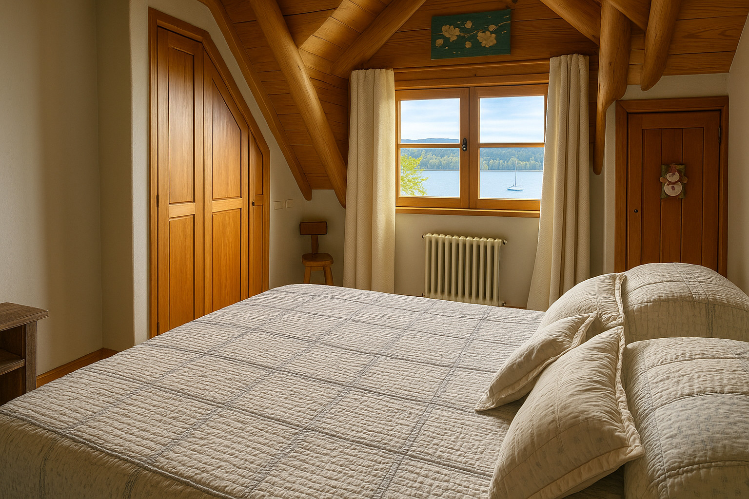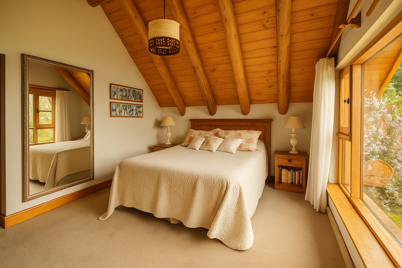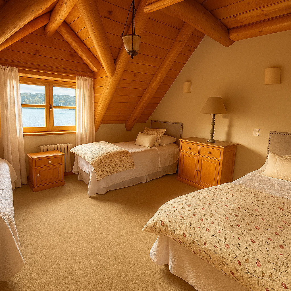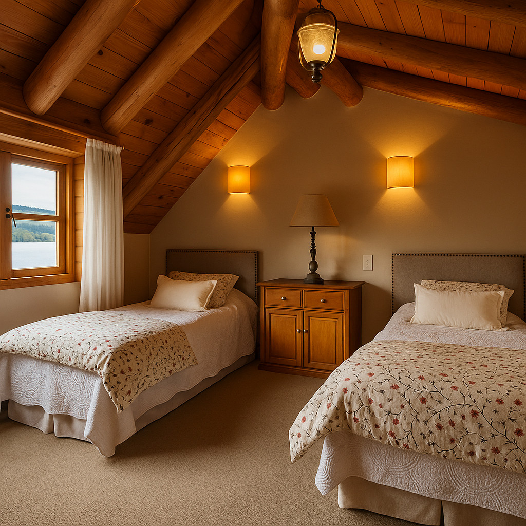* Dormitorio 6: Se ingresa por una escalera tipo altillo que sale del comedor. Tiene muy buena vista y es en suite. Dos camas twin.
