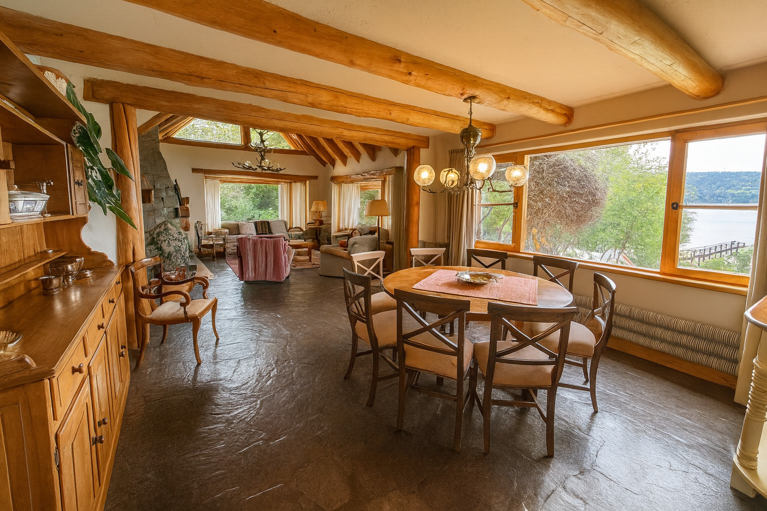 Casa de 450m2 con cálidos ambientes y vista panorámica al lago.