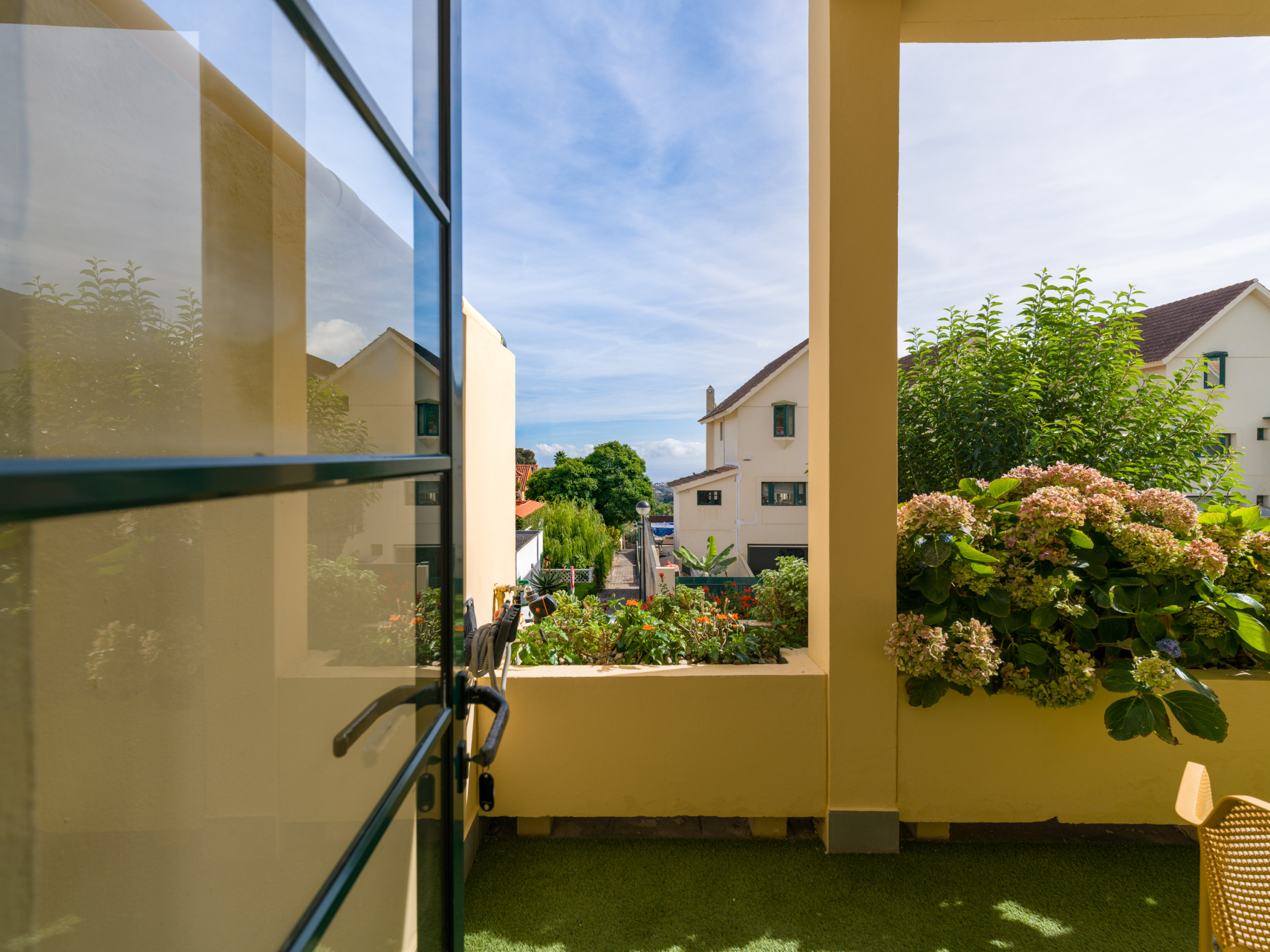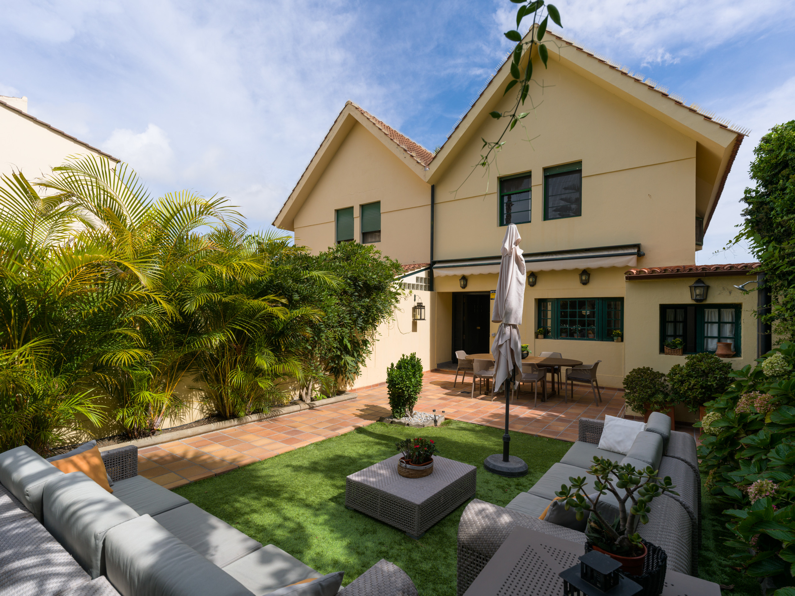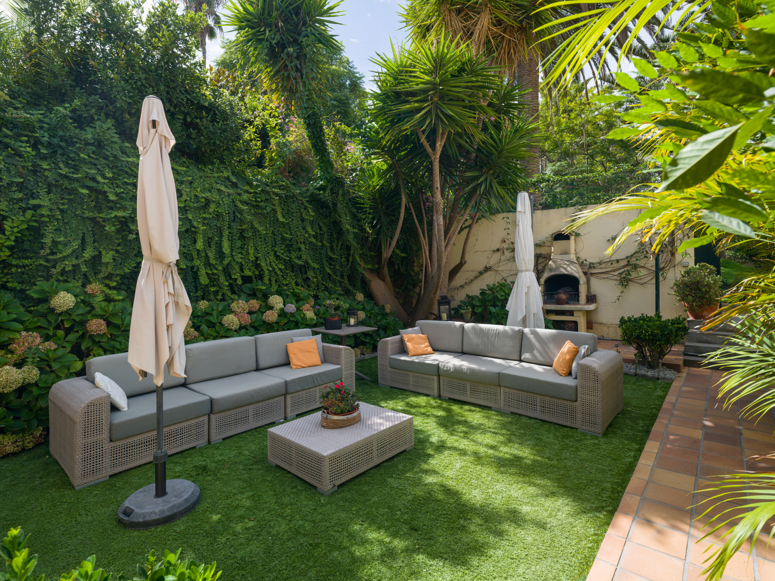 Los espacios exteriores son uno de los puntos fuertes de esta propiedad. Dispone de un jardín cercado, terraza de 50 metros cuadrados, zona de barbacoa, muebles de jardín y balcón, perfecto para disfrutar de las vistas al mar, montaña y jardín.