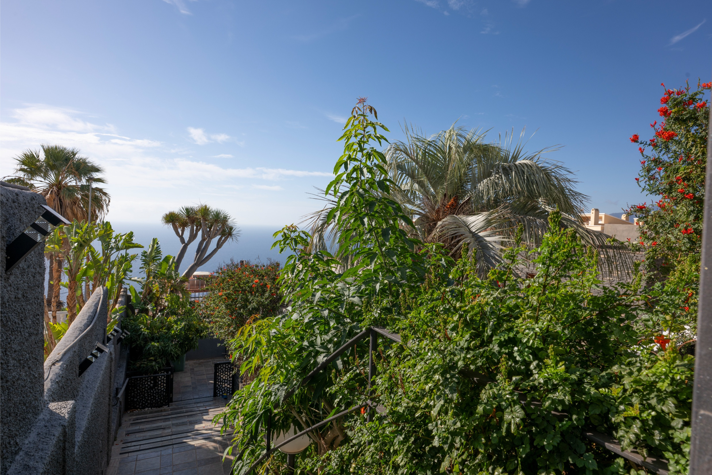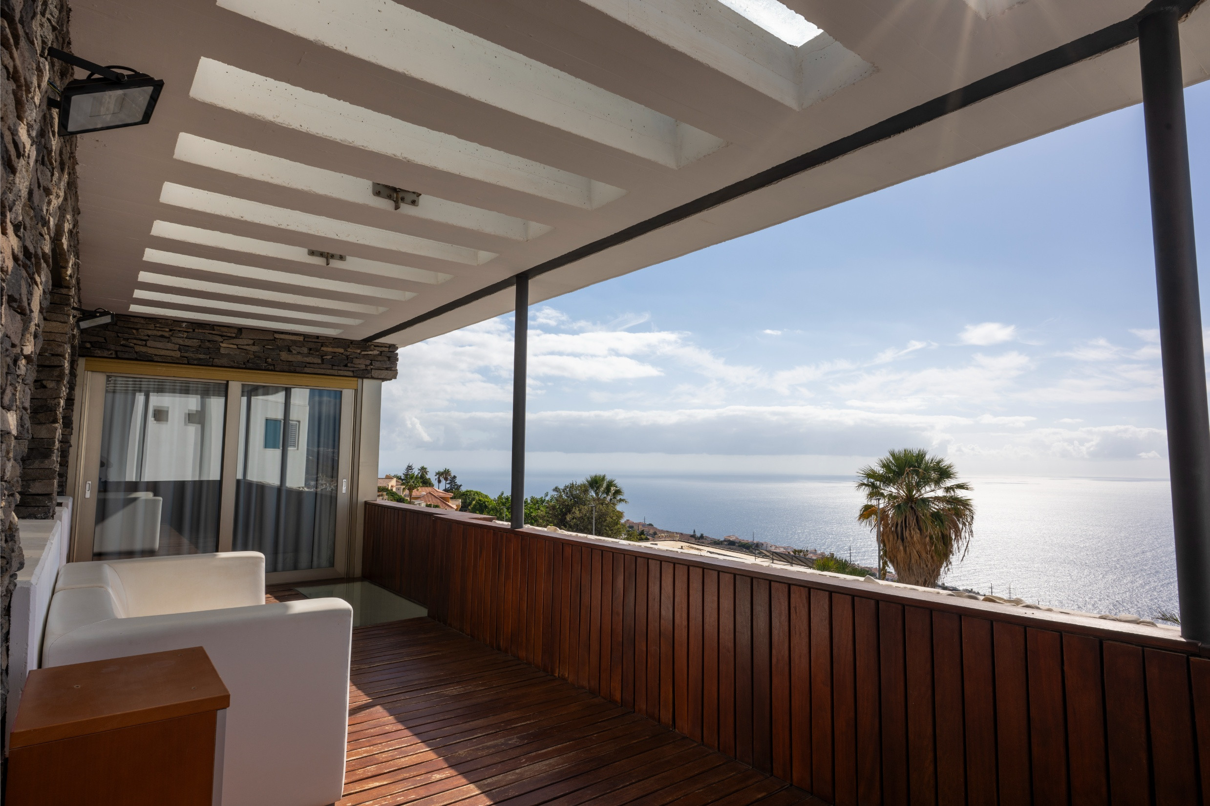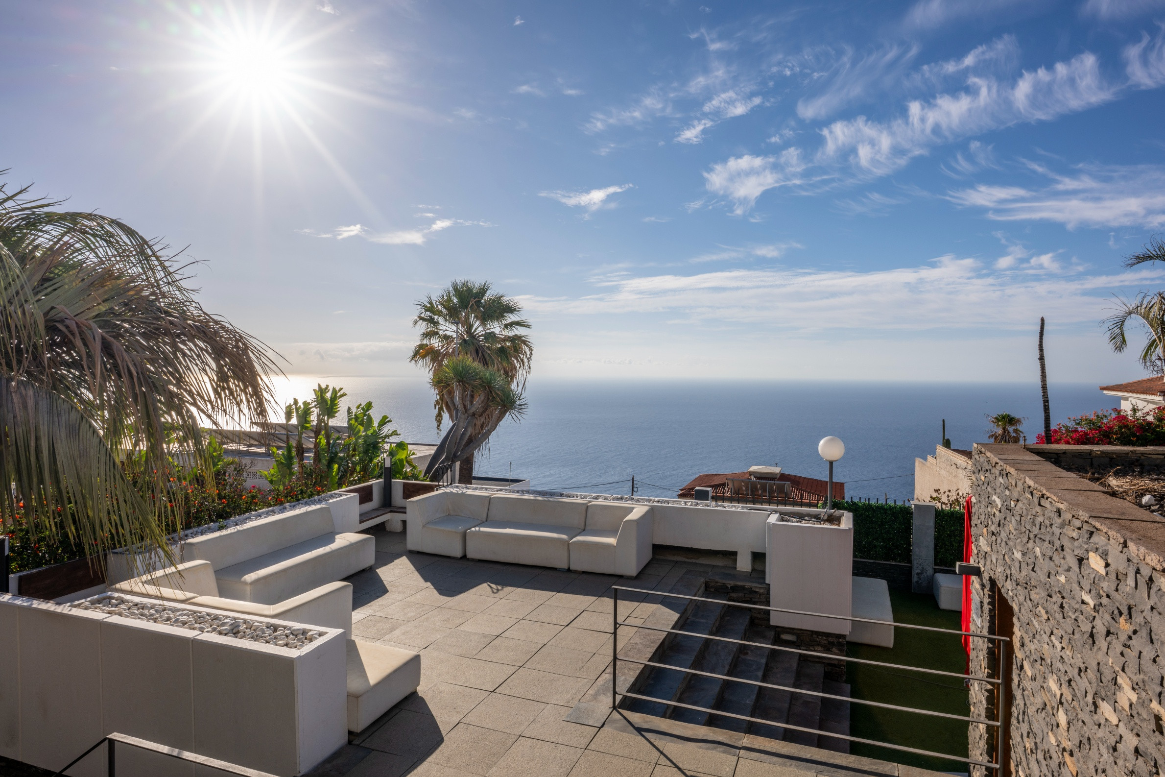 Gran terraza con vistas abiertas al mar.