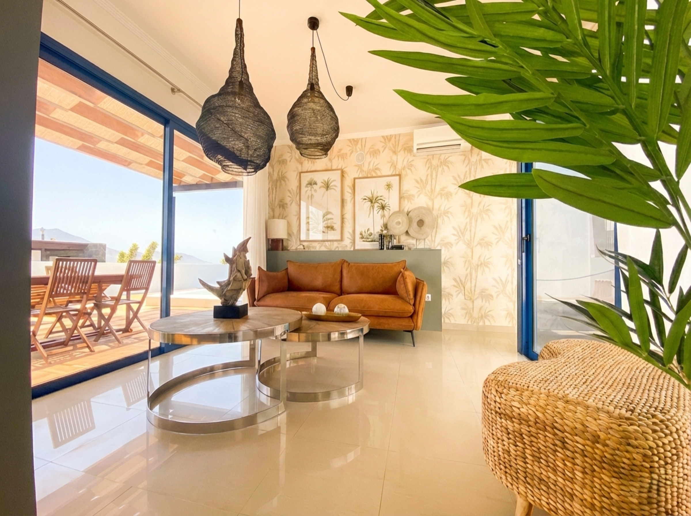 Villa Capri es una casa de una sola planta por lo que es muy cómoda para los huéspedes. Consta de dos baños (uno con plato de ducha y otro con bañera) y 2 dormitorios. Un dormitorio principal con cama de matrimonio de 160 x 200 y baño en suite y un segundo dormitorio con 2 camas individuales de 90 x 190. Salón comedor equipado con TV y con acceso a un agradable porche con vistas al mar. La zona exterior está equipada con barbacoa, sillas y mesa, hamacas y ducha exterior. Cocina bien equipada para una estancia perfecta.