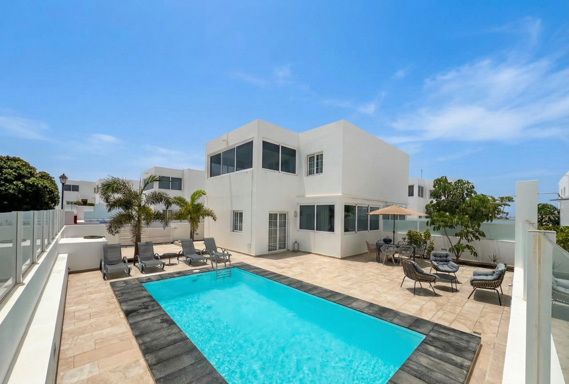 Reserva esta villa en Lanzarote y disfruta de unas vacaciones maravillosas en una villa con piscina privada climatizada, una terraza exterior amplia y bien cuidada y una ubicación inmejorable.