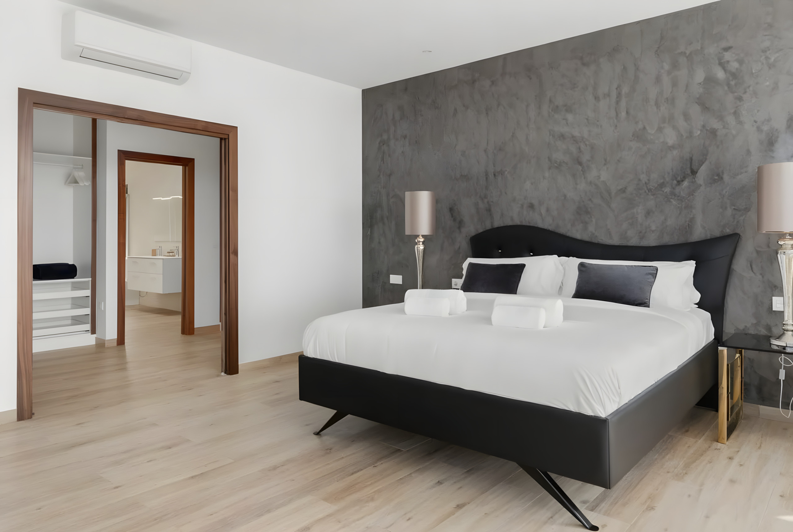 Sube y descubre un oasis privado: tres habitaciones llenas de calma y elegancia, dos de ellas en suite. El dormitorio principal te regala un vestidor de película y una terraza con jacuzzi, ideal para ver cómo el sol se esconde tras el mar, copa en mano.