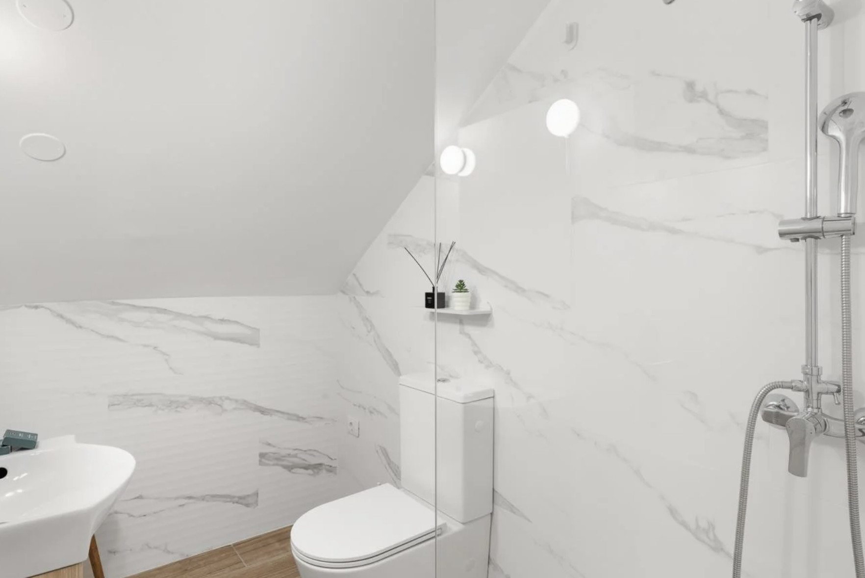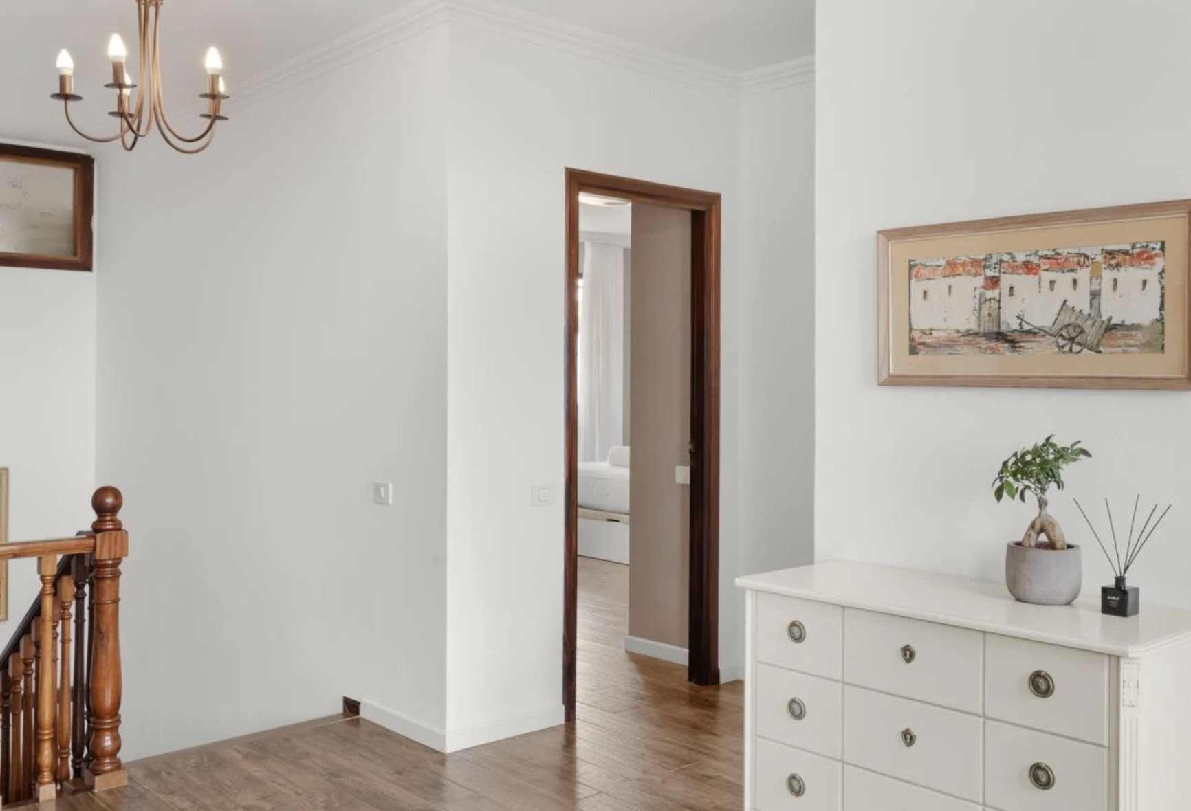 La planta alta está dedicada al descanso y la serenidad. Aquí se encuentran cuatro elegantes dormitorios: una majestuosa suite con cama doble de 160x200 cm, una segunda habitación doble del mismo tamaño, y dos habitaciones adicionales, cada una con dos camas individuales de 90x200 cm. También hay un baño adicional con plato de ducha.