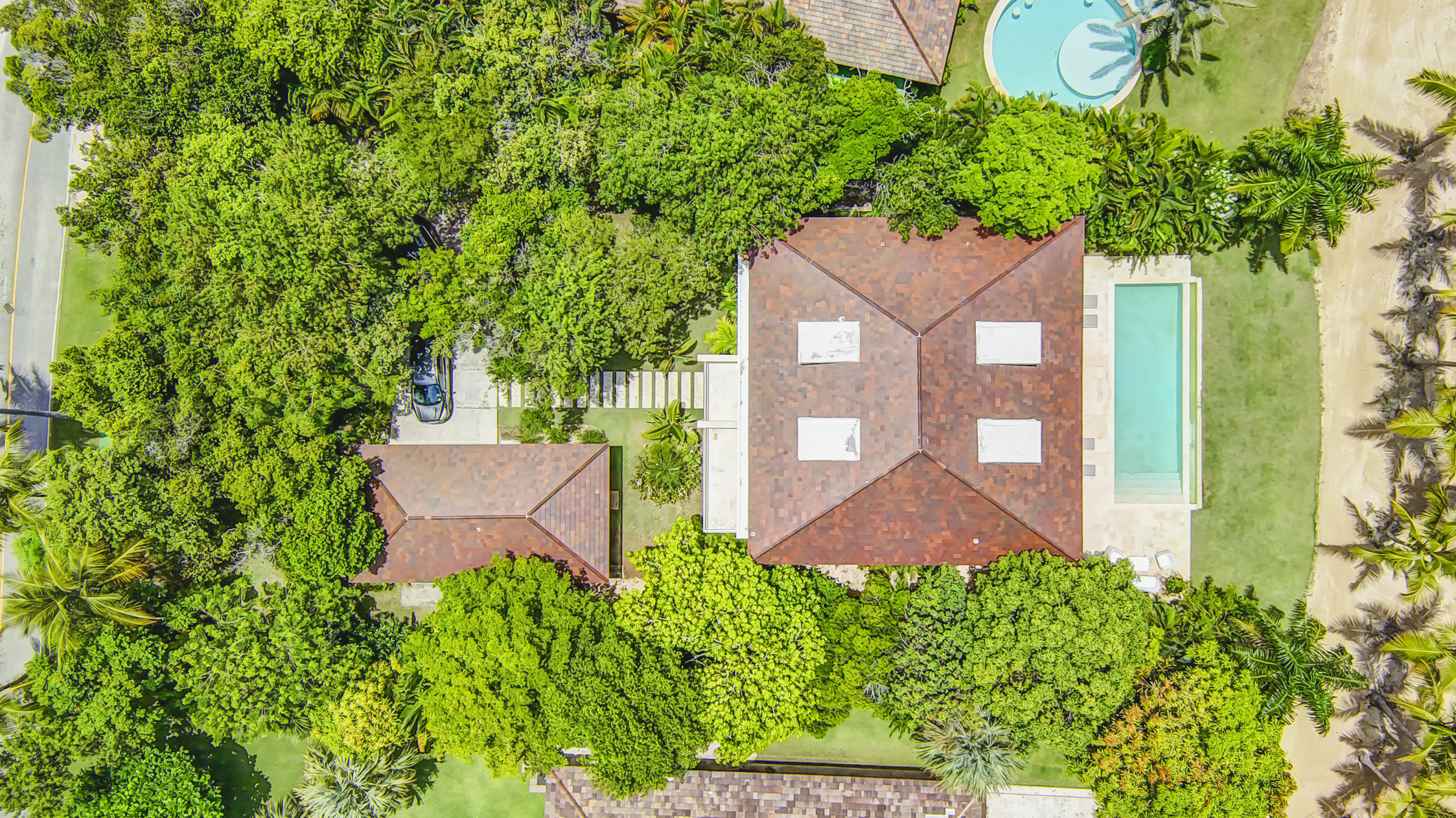 La villa se encuentra en la exclusiva comunidad cerrada Puntacana Resort & Club, a solo diez minutos del Aeropuerto Internacional de Punta Cana. El complejo ofrece más de 26 millas cuadradas de playas, áreas verdes, restaurantes, actividades deportivas y un ambiente de lujo caribeño.