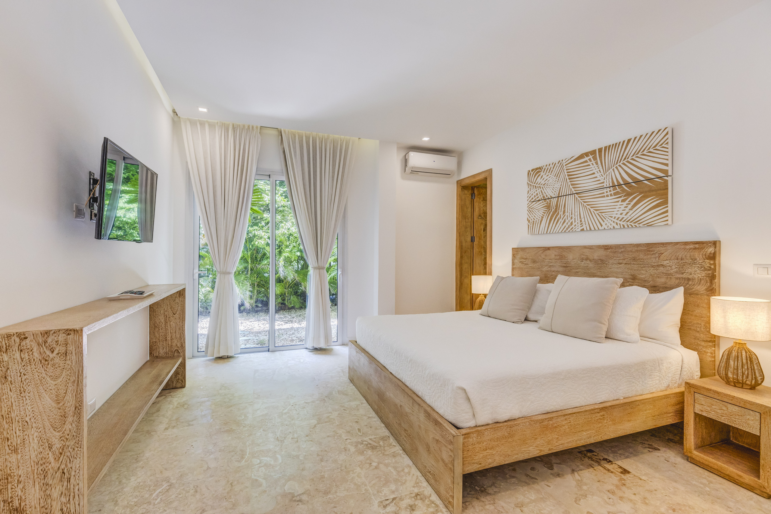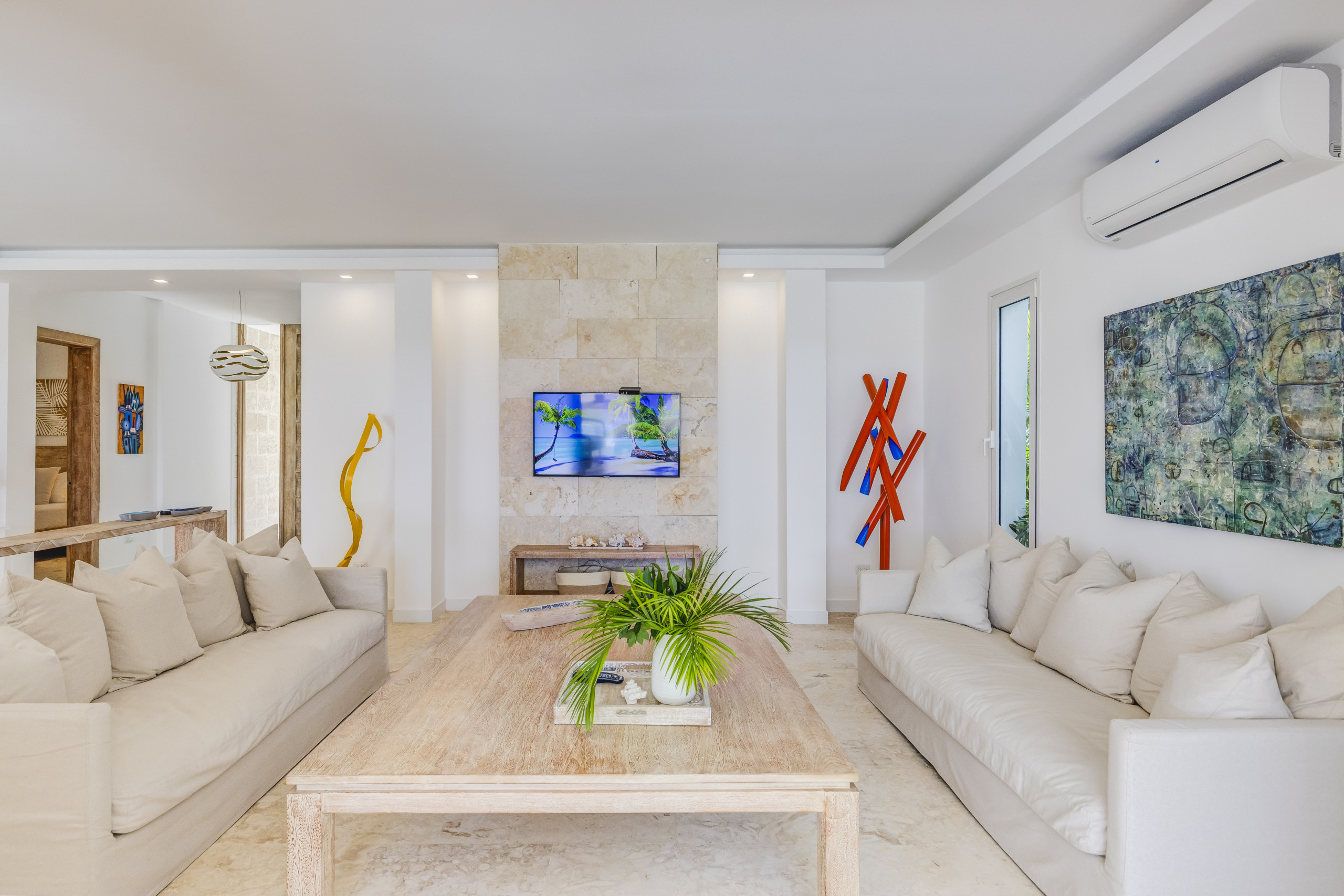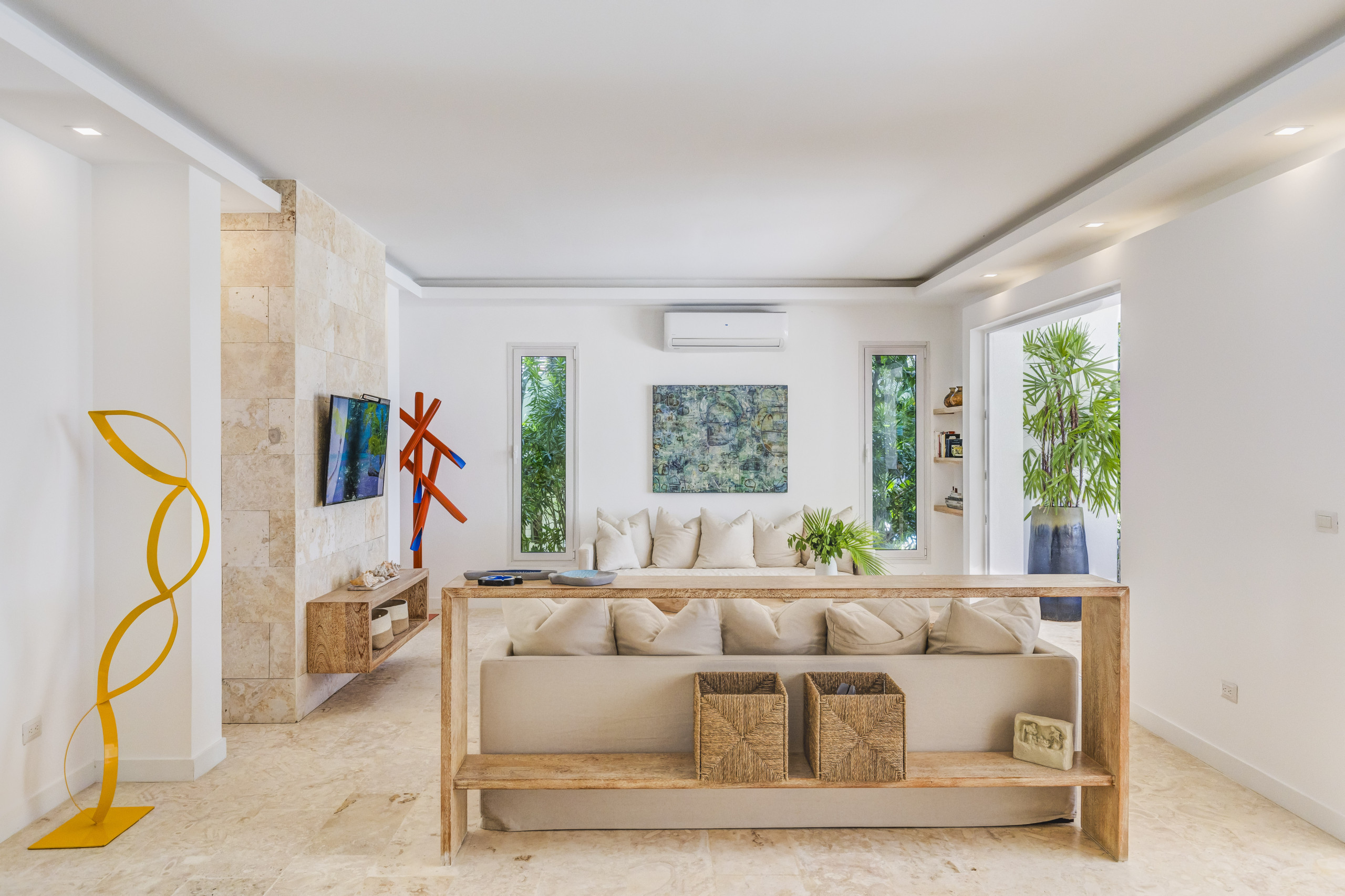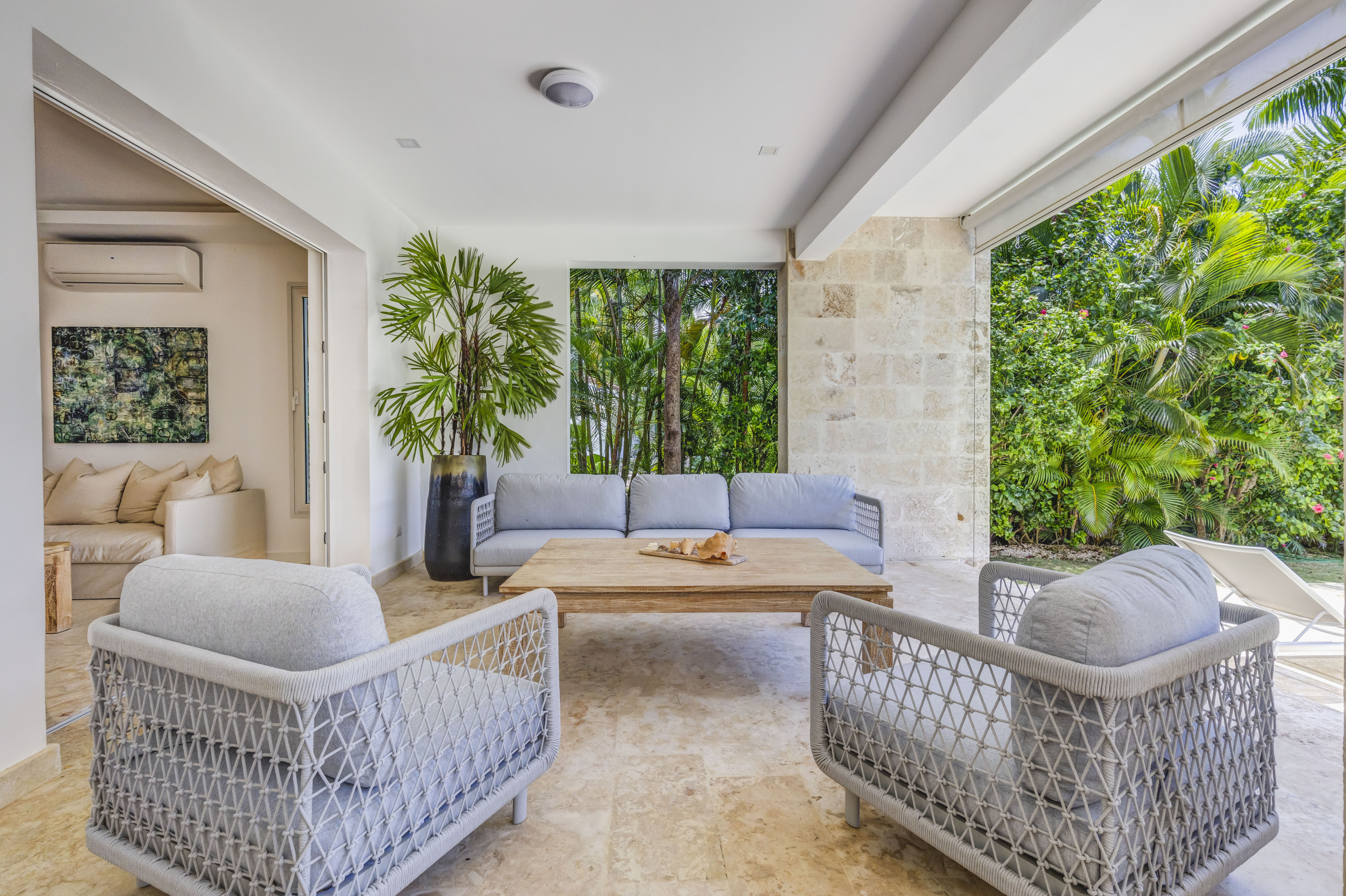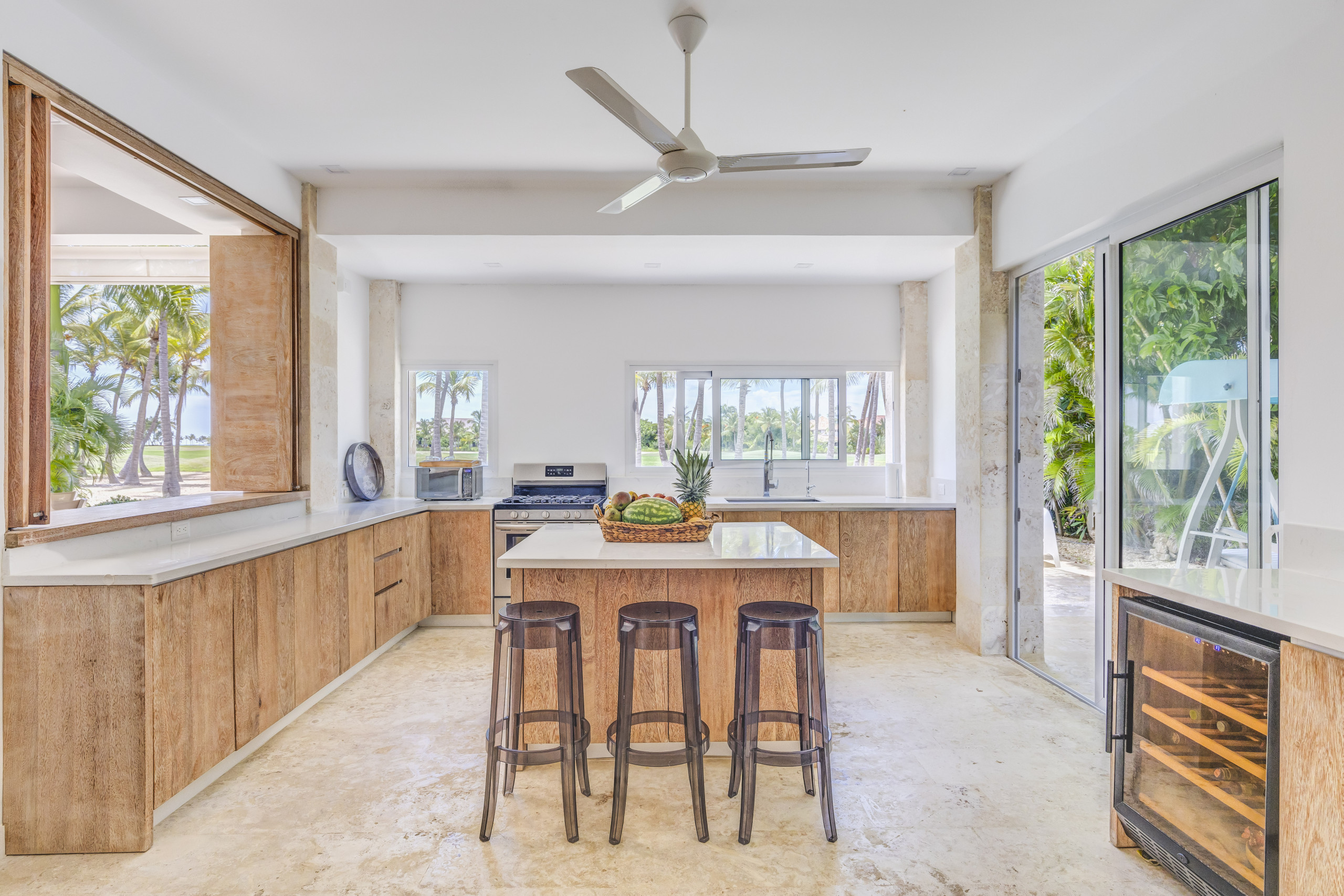 Esta exquisita propiedad muestra un diseño tropical contemporáneo con toques de piedra de coral que crean una atmósfera de relajación serena y confort lujoso. Con sus líneas elegantes y elementos cuidadosamente seleccionados, ofrece una combinación perfecta de estética moderna y encanto tropical, prometiendo un retiro tranquilo en medio de la belleza natural.