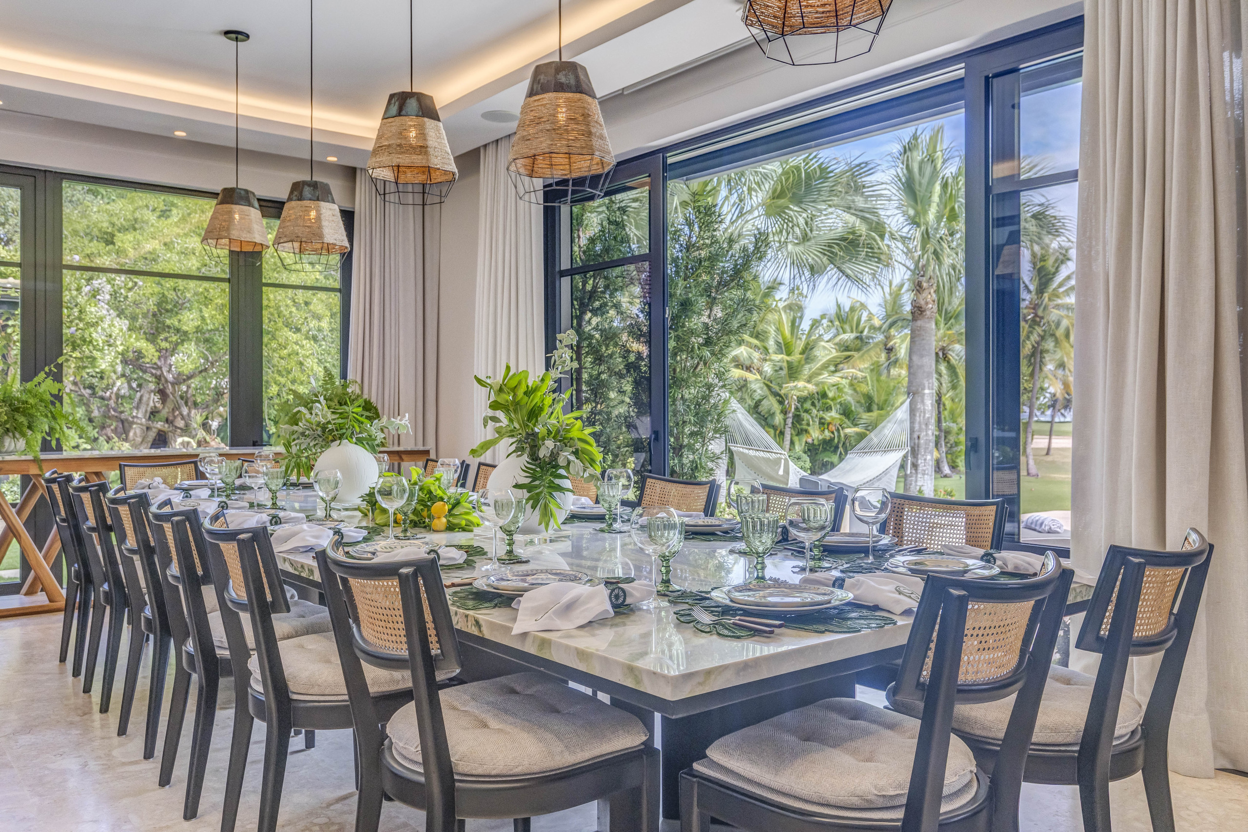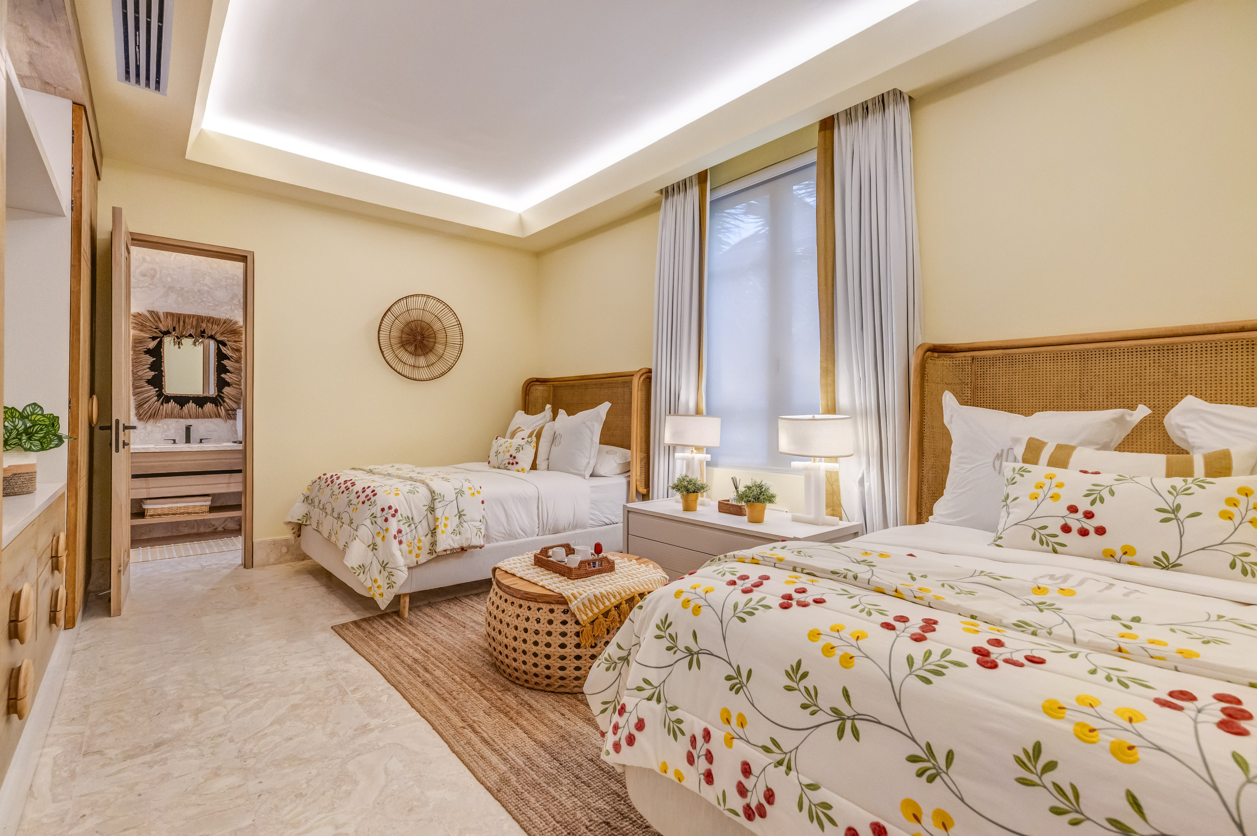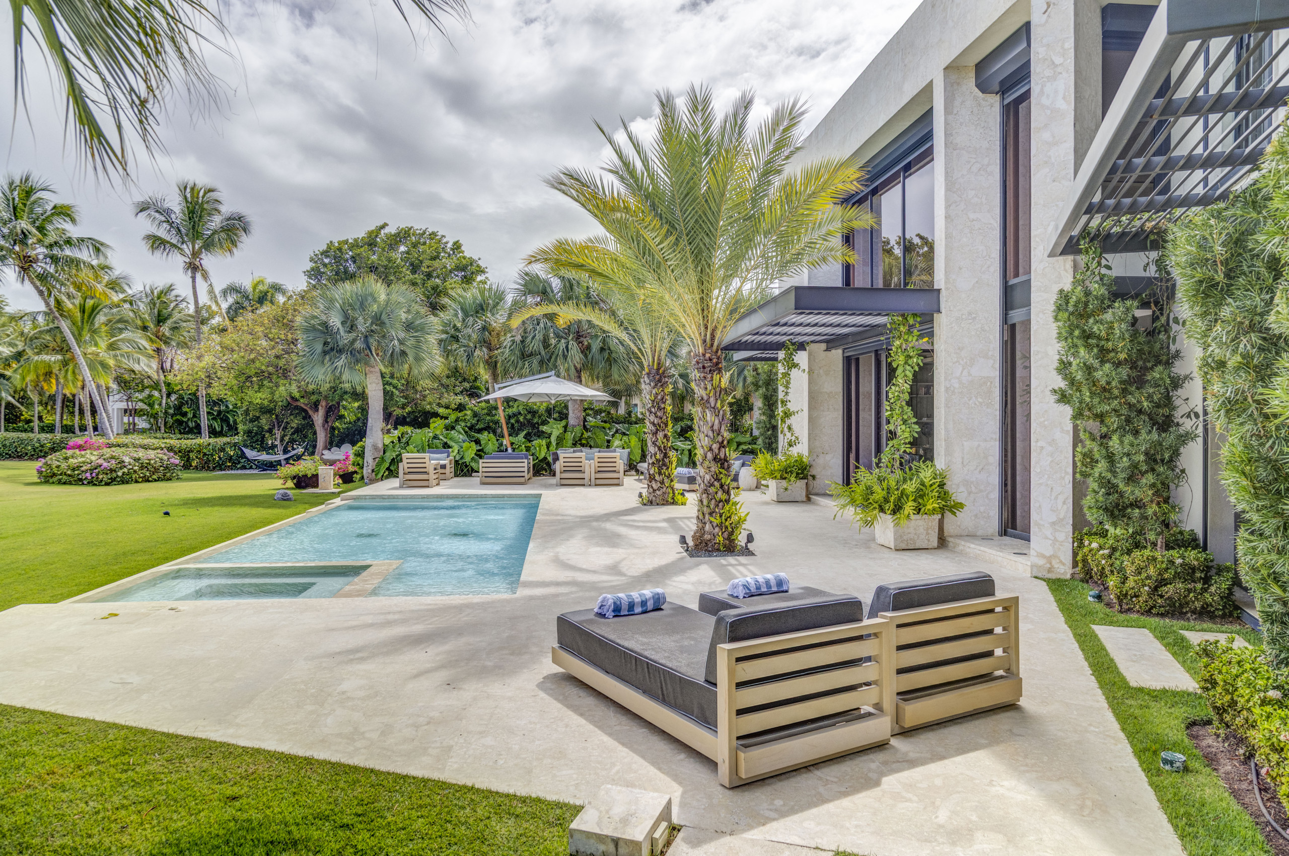 Esta villa tropical ofrece una experiencia de alojamiento exclusiva, con espacios amplios, modernos y diseñados para la comodidad. Dispone de cinco dormitorios, cuatro de ellos con cama king y uno con dos camas full. La propiedad cuenta con una cocina totalmente equipada, un amplio salón, comedor interior, terraza, jardín privado y piscina. Todas las habitaciones incluyen aire acondicionado, televisión, baño privado y vestidor.