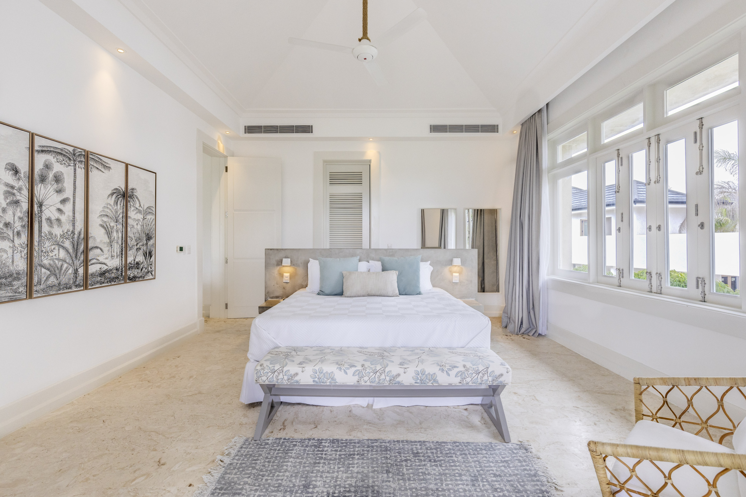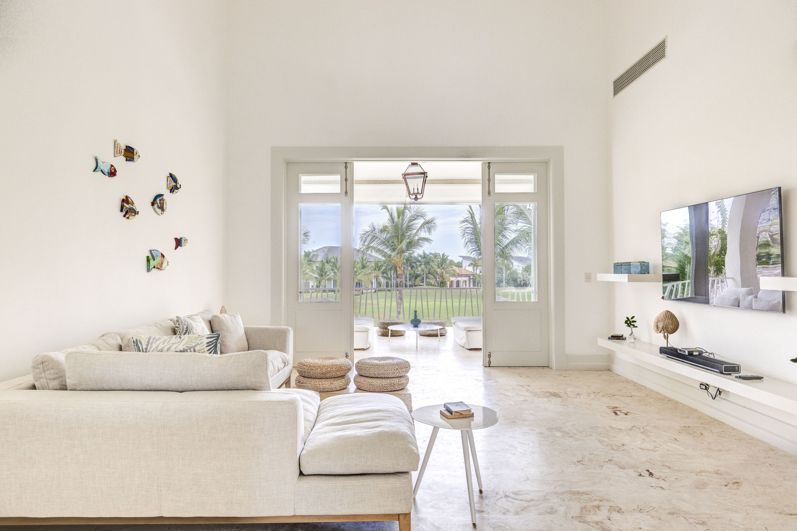 Al acceder a la propiedad, un vestíbulo de techos altos introduce un estilo moderno y sobrio con toques vanguardistas y obras de arte coloridas. El amplio salón principal combina mobiliario art nouveau con elementos caribeños y se abre a un jardín privado siempre verde que aporta privacidad y serenidad.