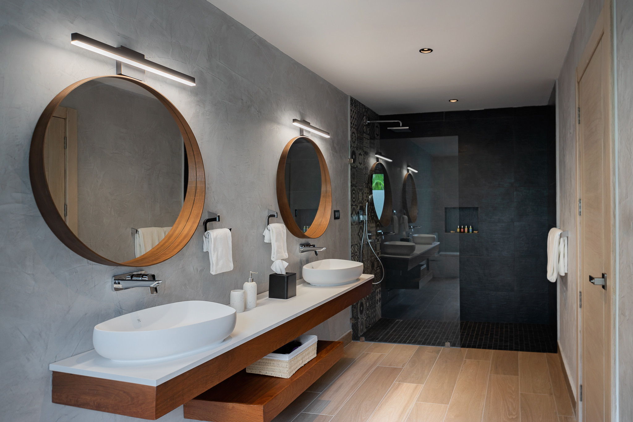 Los espacios interiores se caracterizan por techos altos, líneas limpias, mobiliario contemporáneo y luz natural en abundancia. El diseño general combina elegancia moderna con funcionalidad, pensado tanto para el descanso como para el entretenimiento.