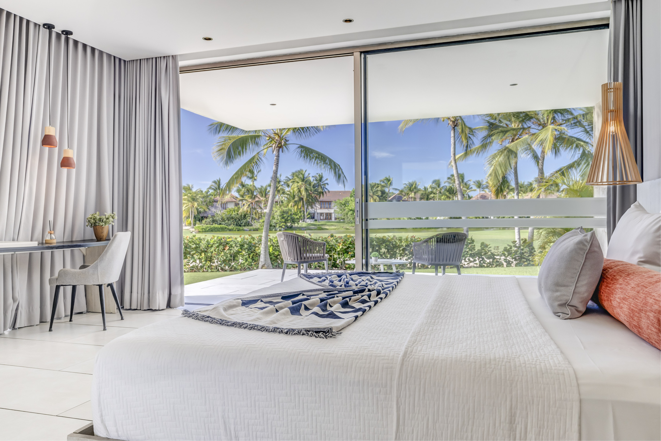 La estancia incluye traslado privado de ida y vuelta desde el Aeropuerto Internacional de Punta Cana, bebidas y snacks de bienvenida, amenidades de baño de lujo, check-in privado en la propiedad, televisión por cable y conexión WiFi de alta velocidad.