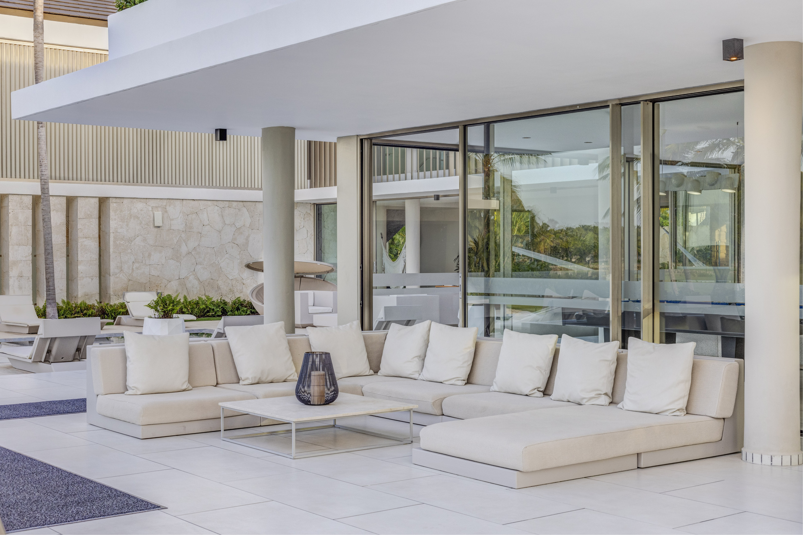 Esta impresionante villa de nueve dormitorios ha sido concebida como un hito arquitectónico del Caribe, construida sobre los pilares del modernismo, el minimalismo y el diseño vanguardista. Ubicada a apenas 400 metros de La Cana Golf & Beach Club —solo tres minutos en carrito de golf— y a ocho minutos de Playa Blanca, su ubicación garantiza comodidad, privacidad y acceso inmediato a lo mejor del resort.