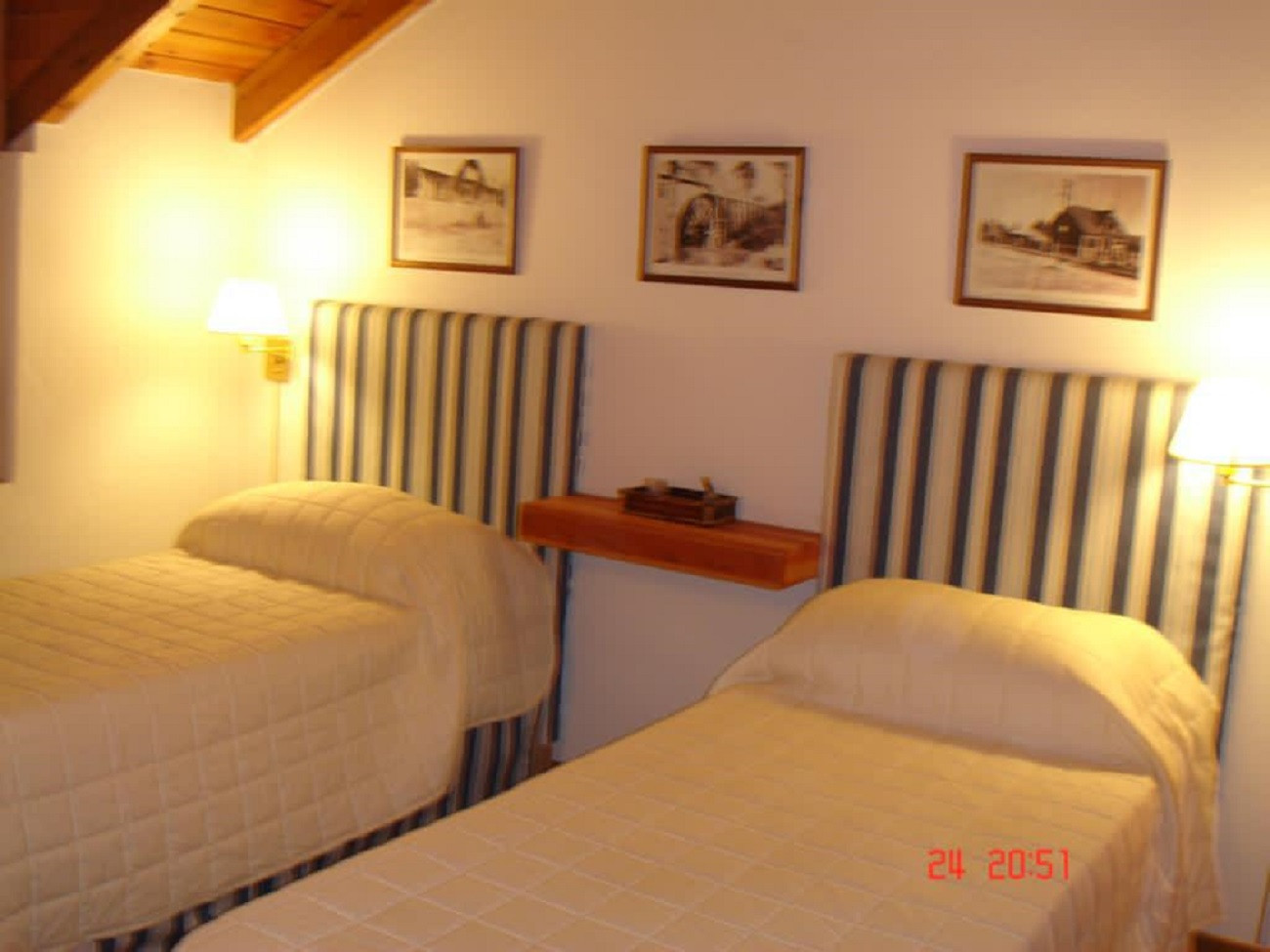 The department is spacious and very welcoming, with a beautiful wooden mezzanine that provides warmth. In the mezzanine there are two sectors: one with two single and a half beds that can be joined forming another matrimonial, and another with two twin beds arranged in L, accompanied by TV and radio, ideal for relaxing or for children to have their own space.