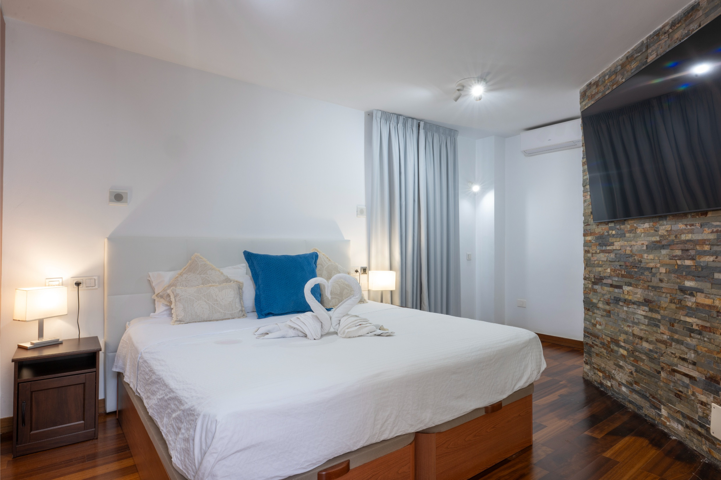 Main suite: King bed 2x2, 75-inch TV, en-suite bathroom with bathtub and privileged views.