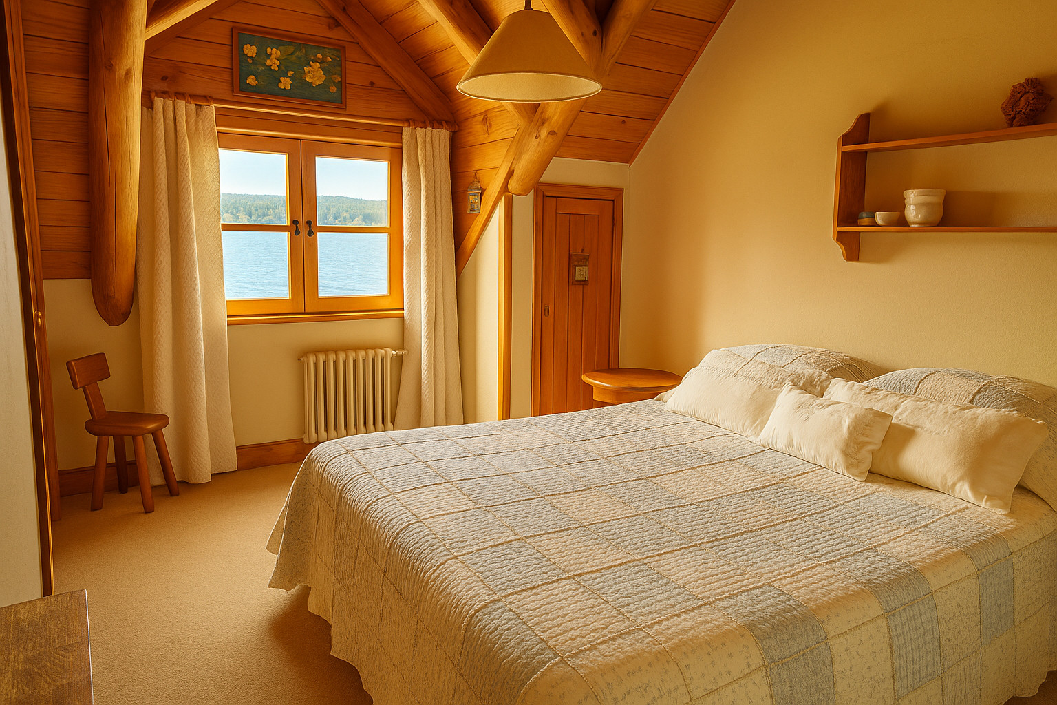 - 1 bedroom with double bed (or 2 single beds)
