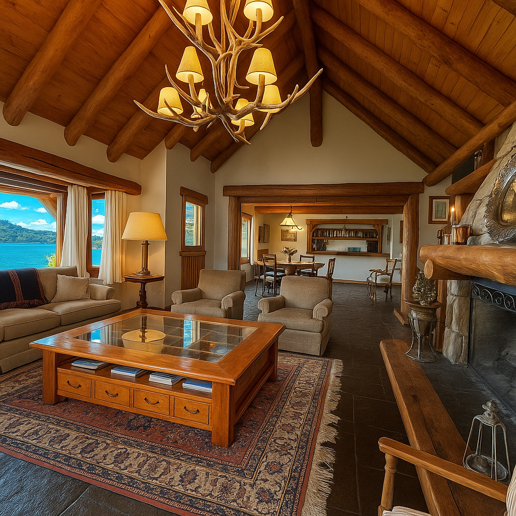 Spectacular house with a large garden and coast with a dock on Lake Nahuel Huapi.