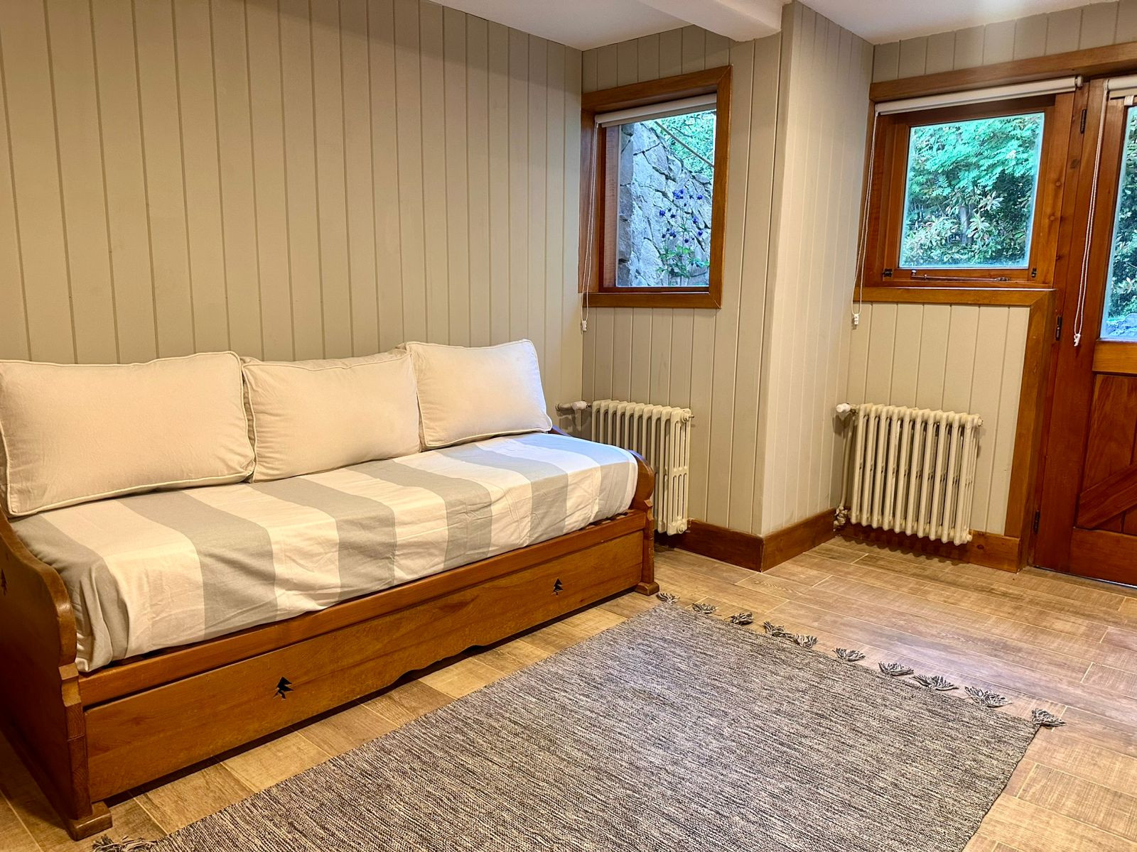 - 1 bedroom with 2 single beds and across the hall 1 full bathroom