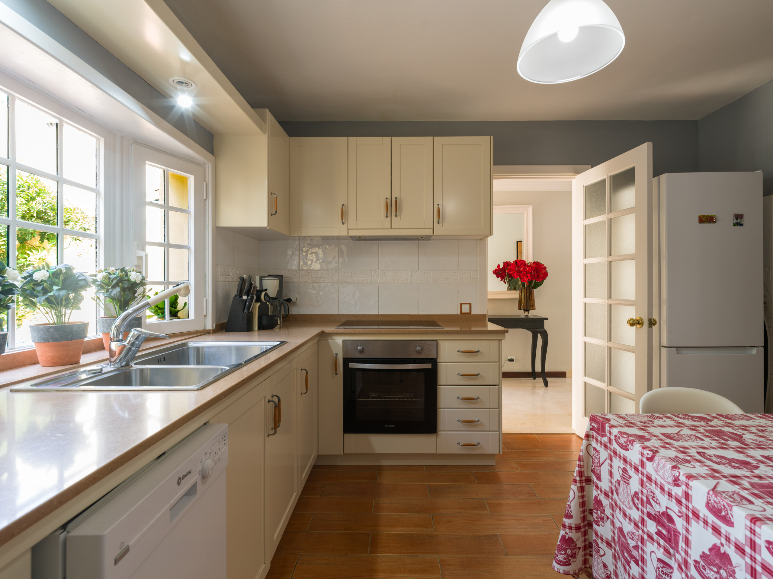 The kitchen, fully equipped and independent, includes state-of-the-art appliances such as a washing machine, dryer, dishwasher, oven, microwave, coffee maker, toaster, and kettle. It has a ceramic hob and all the necessary utensils to prepare delicious meals.
