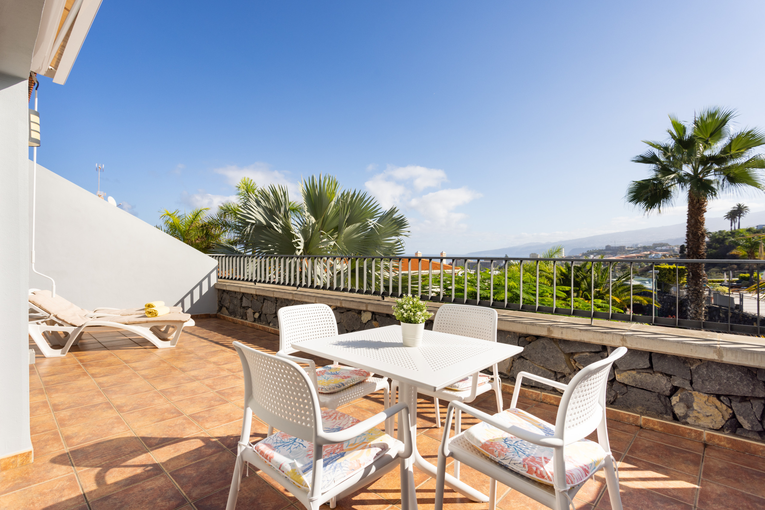 Upon entering, you will find a fully equipped kitchen that covers all needs for a long stay, including a dishwasher. Next to the kitchen is a courtesy toilet. The living room has a comfortable sofa and a smart TV with international satellite channels, as well as free WiFi. From this room, you can access a spacious private terrace with views of Puerto de la Cruz and Loro Parque. The terrace is equipped with two sun loungers and a table with chairs to enjoy the outdoors.