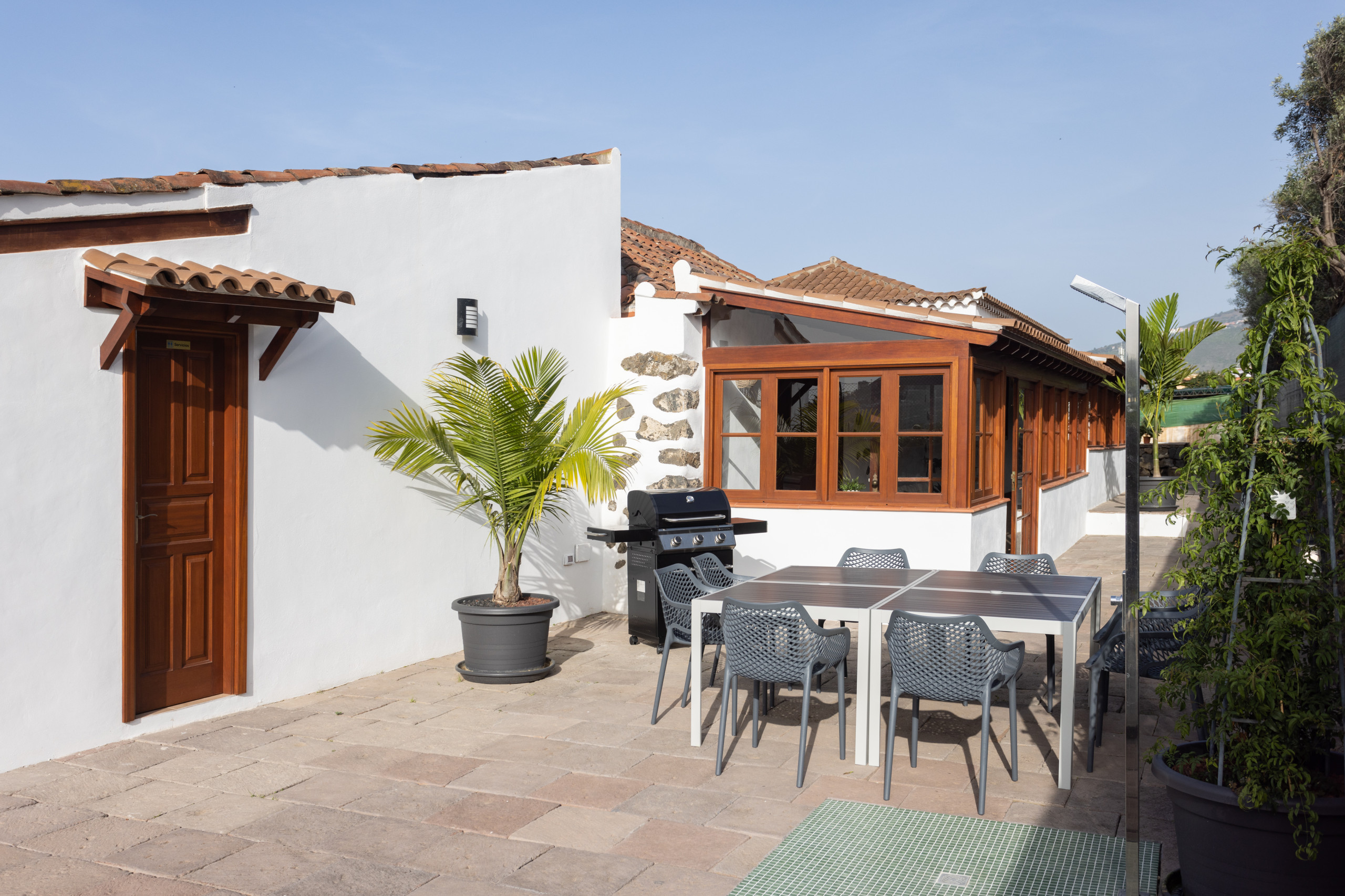 Imagine waking up every morning with an impressive view of the valley and the mountain, enjoying a quiet coffee on the gallery while the sun plays with the colours of Tenerife. Then, take a jump into the private pool (4 × 7.5 m) that you can heat to enjoy it even on the coolest nights. Outside, you'll find spacious areas: sun loungers, outdoor shower, barbecue and two large outdoor dining tables for family or friends meals. And if you prefer, work for a while in the indoor area because the wifi is high-speed (600 Mb fibre) — ideal for teleworking or simply staying connected.