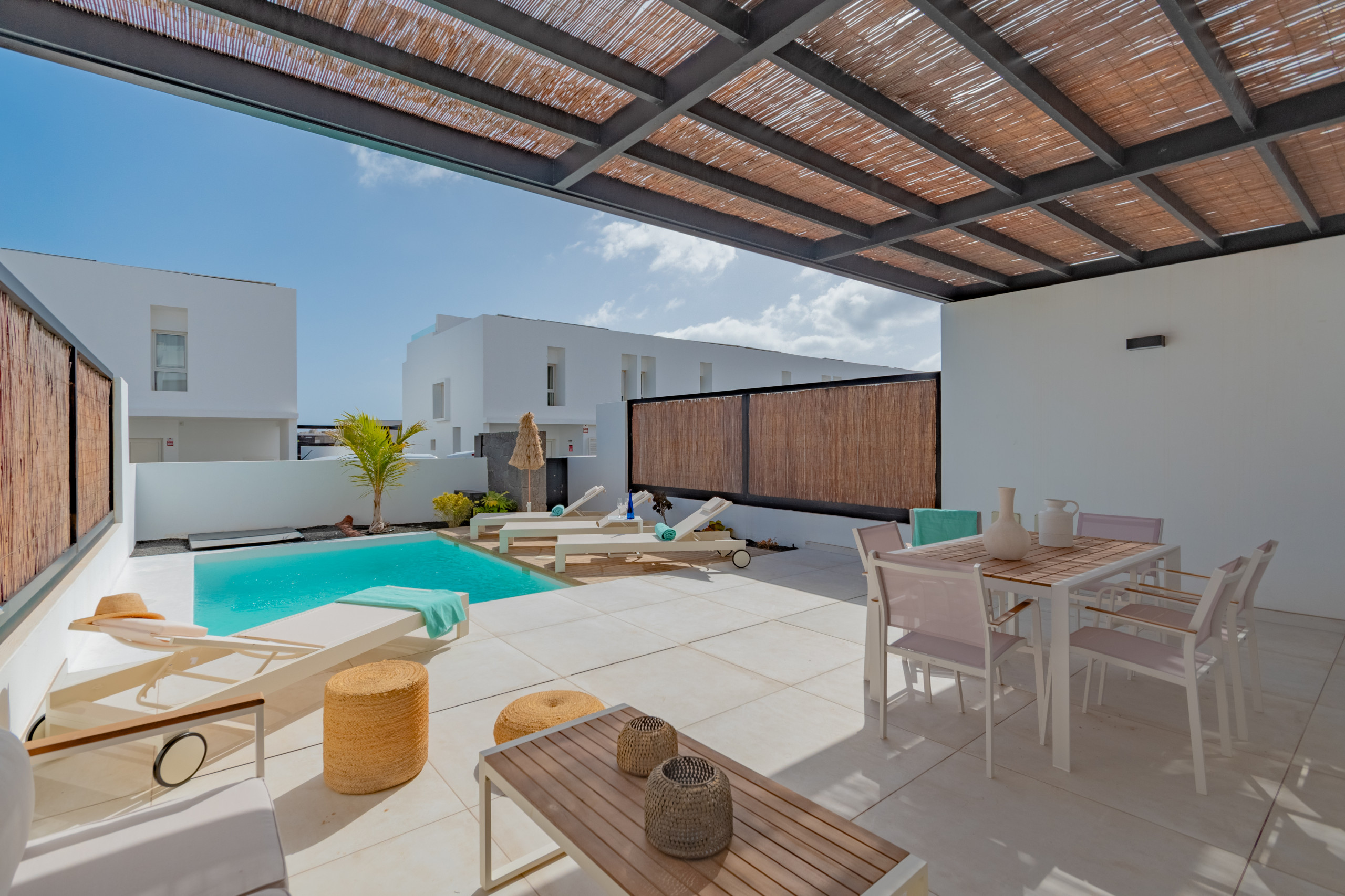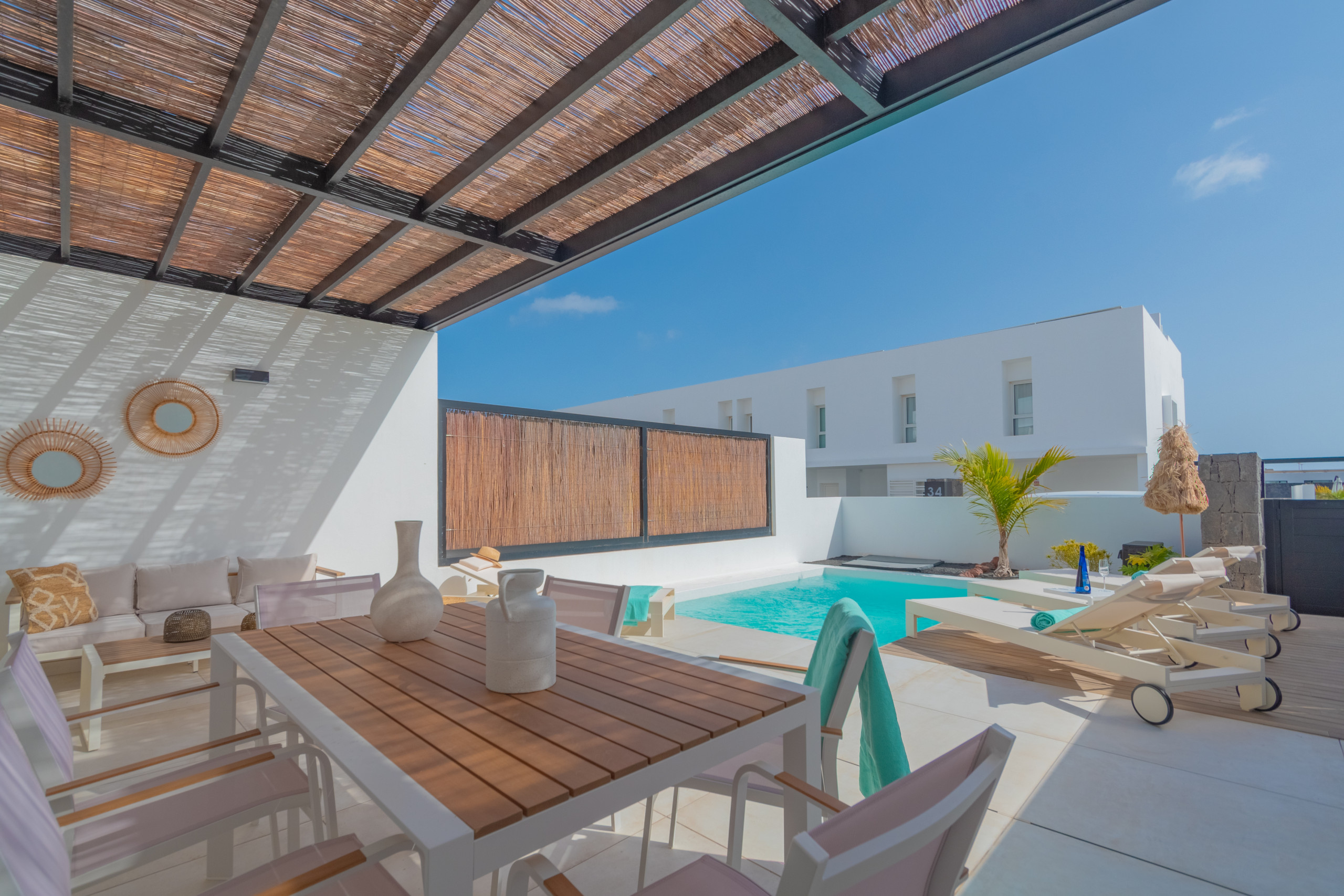 Enjoy with family, couple or friends this villa with private heated pool located in a perfect area to immerse yourself in Lanzarote and its views of the sea, Fuerteventura and the island of Lobos.