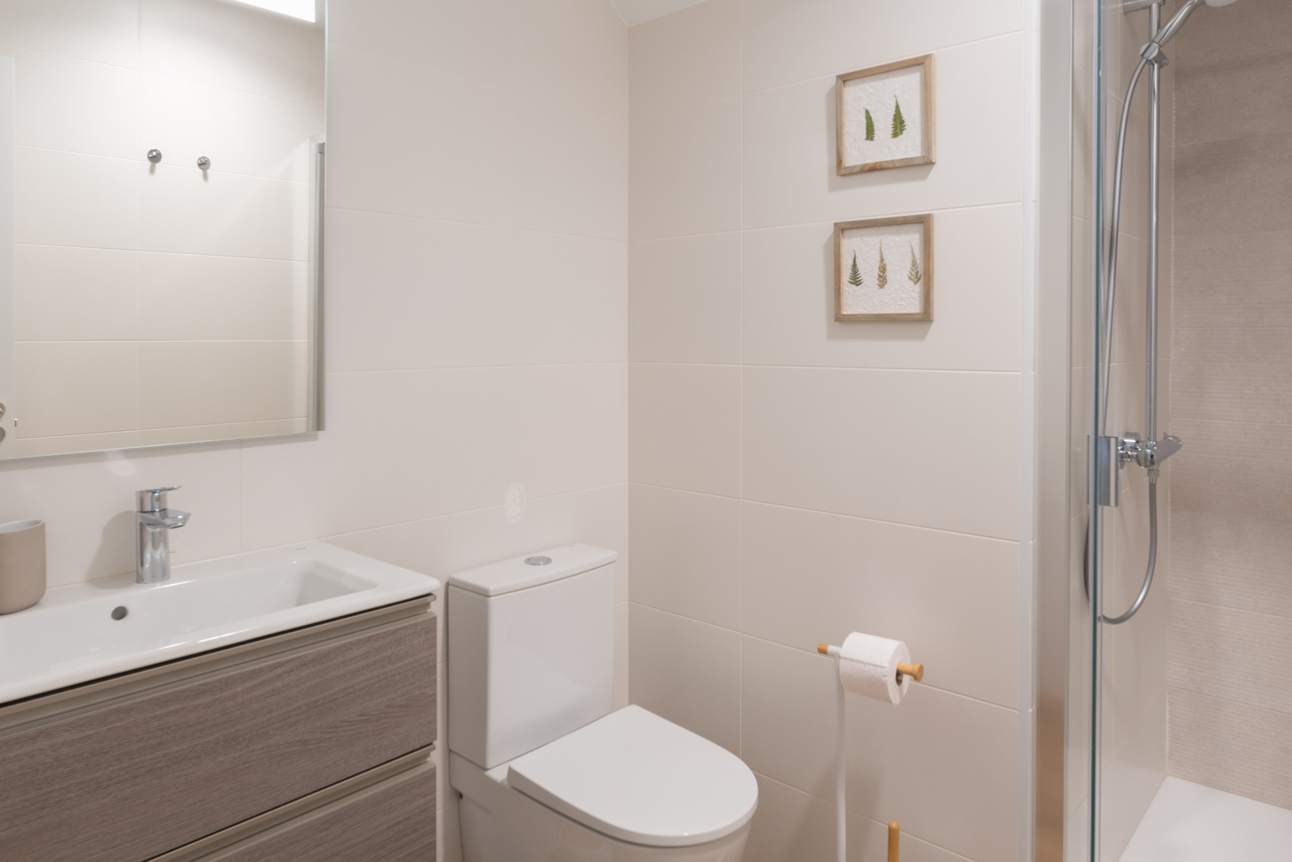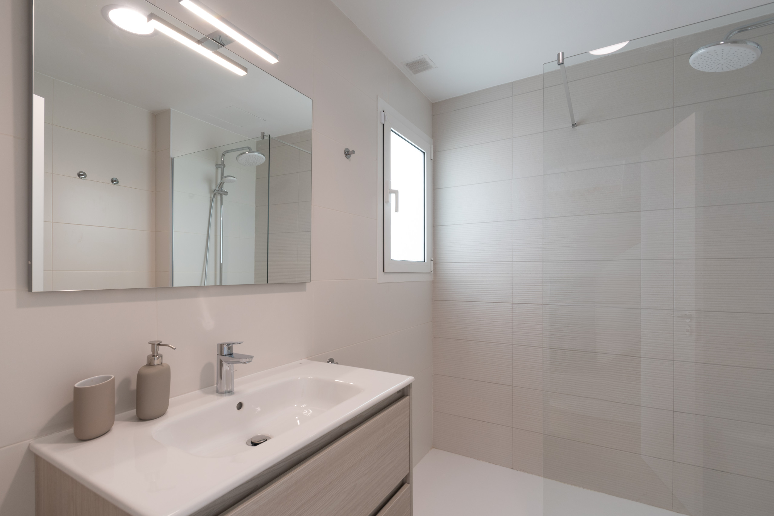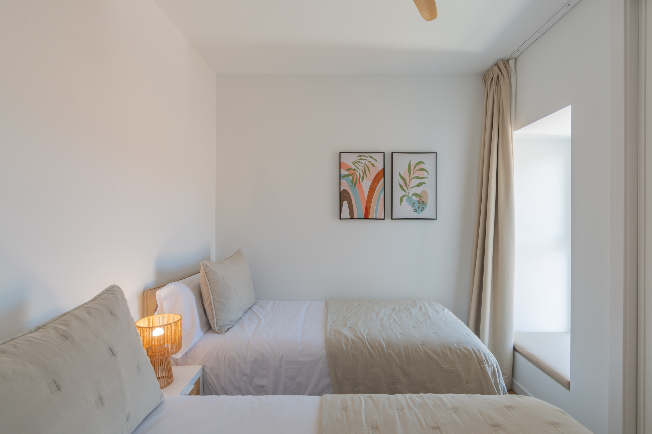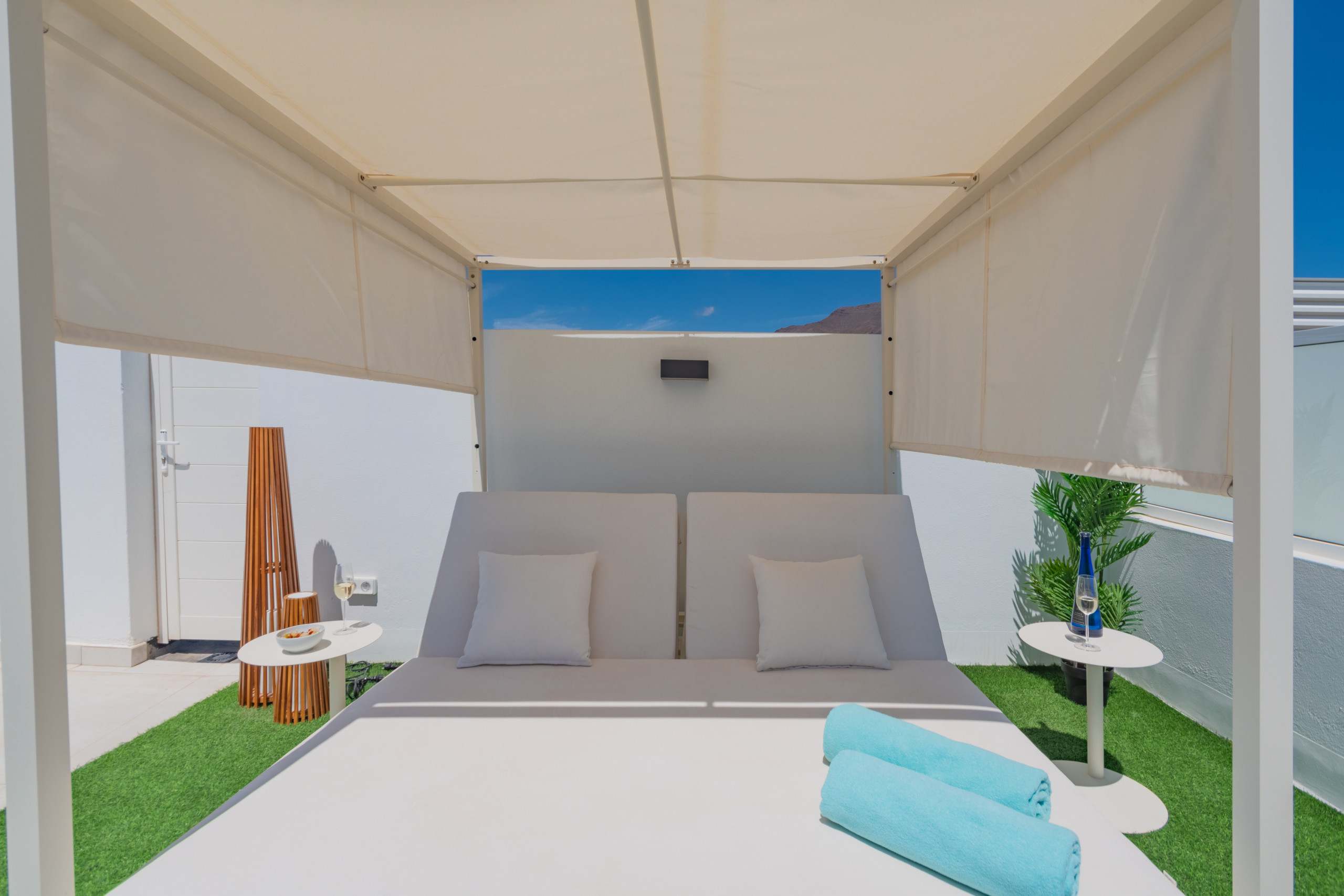 On the first floor, the rest area consists of three bedrooms (two with a double bed and one with two single beds). Its elegant main suite includes a bathroom with a shower and direct access to a private balcony and an exclusive rooftop terrace, equipped with a luxurious Balinese bed, perfect for disconnecting from daily routine.