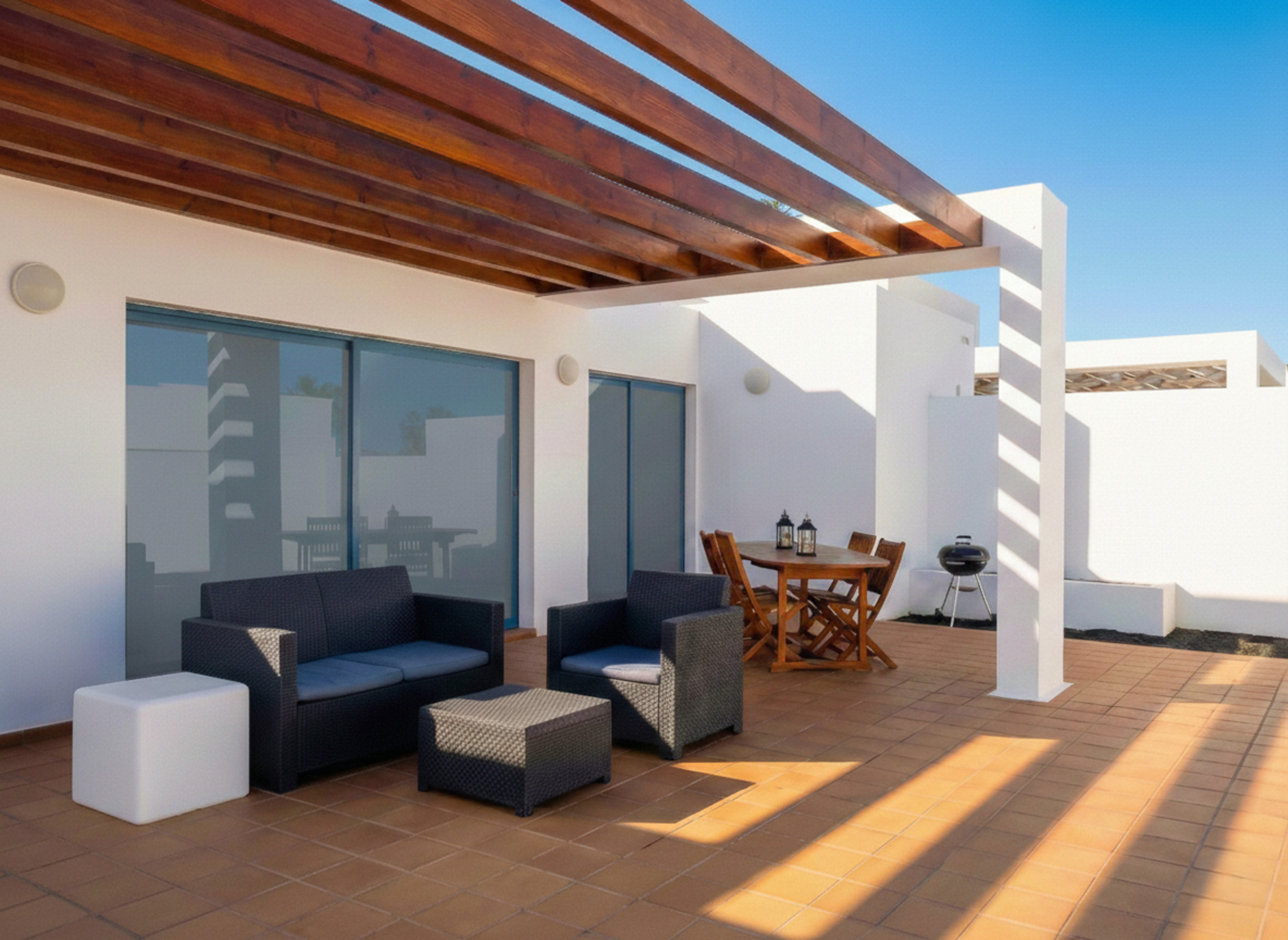 In a very special enclave, Villalia Capri has a large, well-equipped outdoor area and a 6 x 4 m private swimming pool for you to enjoy the good climate of Lanzarote and an unbeatable holiday.