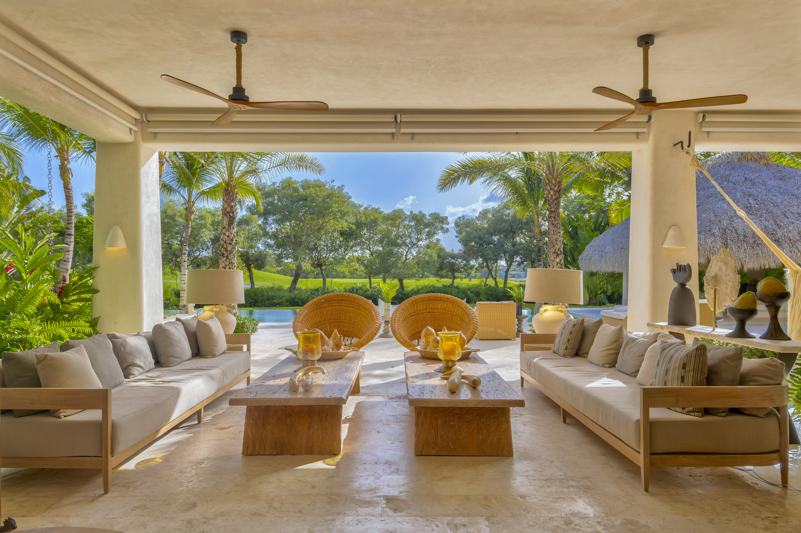 The villa is located in the exclusive gated community of Puntacana Resort & Club, just ten minutes from Punta Cana International Airport. The complex offers over 26 square miles of beaches, green areas, restaurants, sports activities, and a luxurious Caribbean atmosphere.