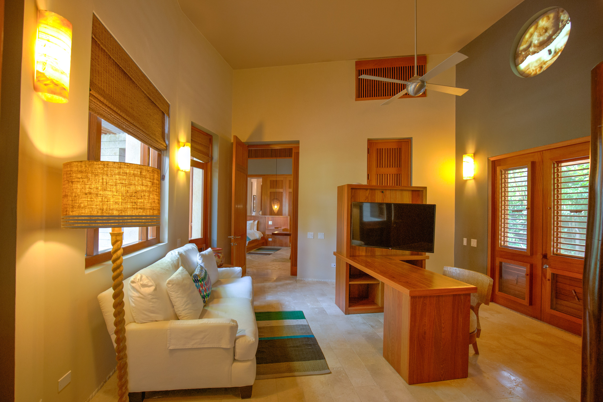 Coral Breeze Grand Villa is an extraordinary architectural work. Its open spaces, high ceilings and elegant natural materials create a warm and sophisticated atmosphere. Each bedroom offers absolute privacy, while the spacious social areas allow enjoying group moments with views of the ocean, the golf course and lush tropical gardens.