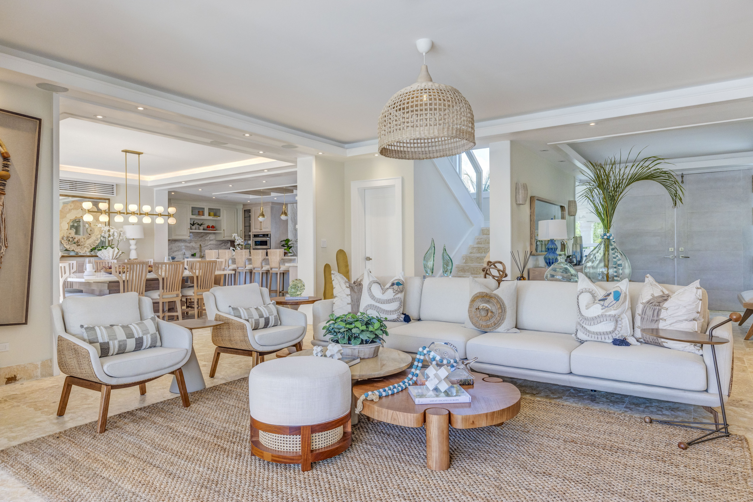 Villa Starfish stands out for its unique, minimalist and modern design with influences from Malibu and Beverly Hills. The pop art style present throughout the house, along with details such as a bicycle hanging from the ceiling and colourful artworks, creates a vibrant, warm and contemporary atmosphere. It is a space entirely designed for those seeking originality, style and comfort in an exclusive Caribbean setting.