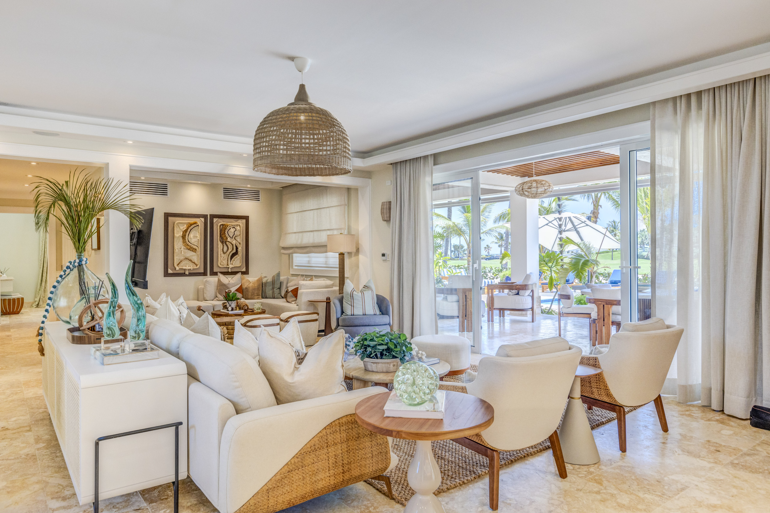 The villa is located in the exclusive gated community of Puntacana Resort & Club, just ten minutes from Punta Cana International Airport. The complex offers over 26 square miles of beaches, green areas, restaurants, sports activities, and a luxurious Caribbean atmosphere.