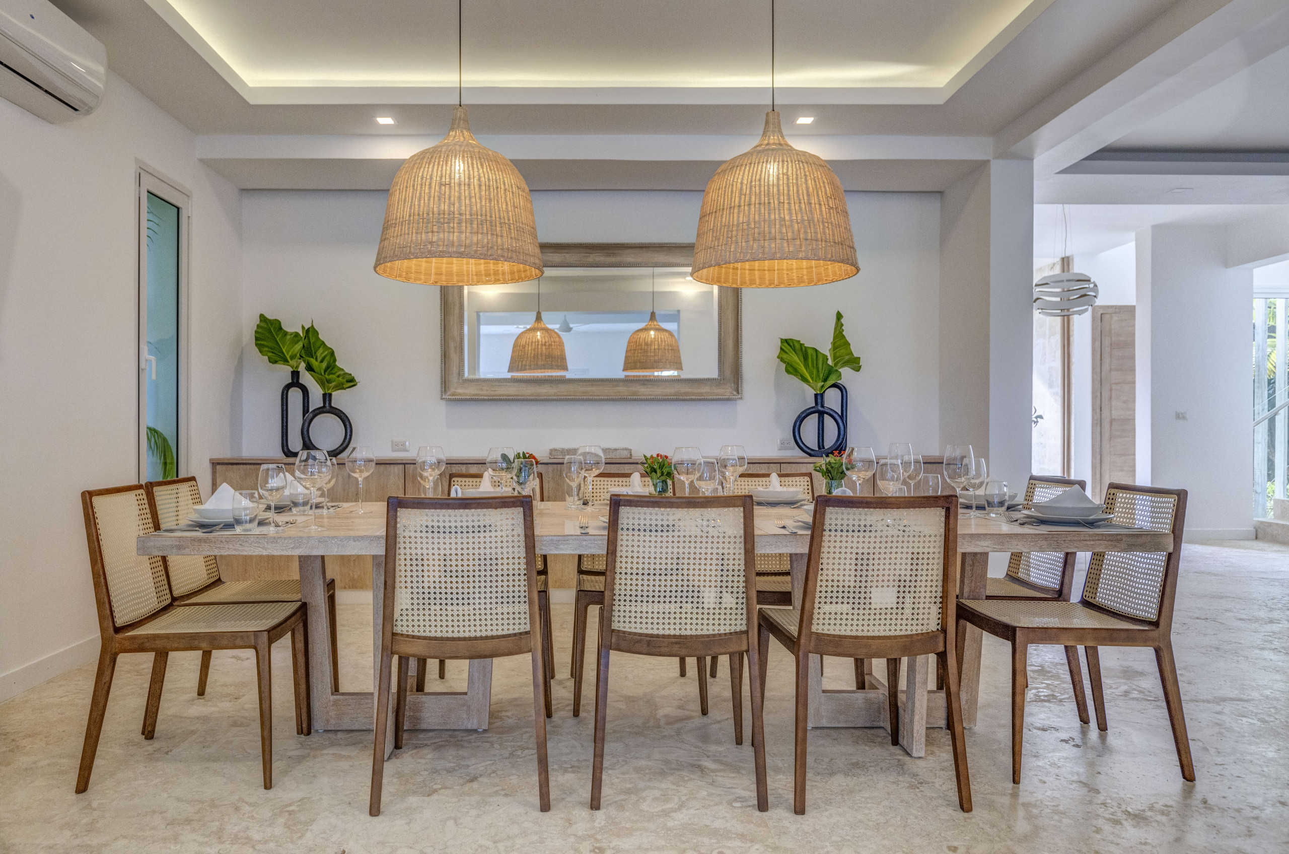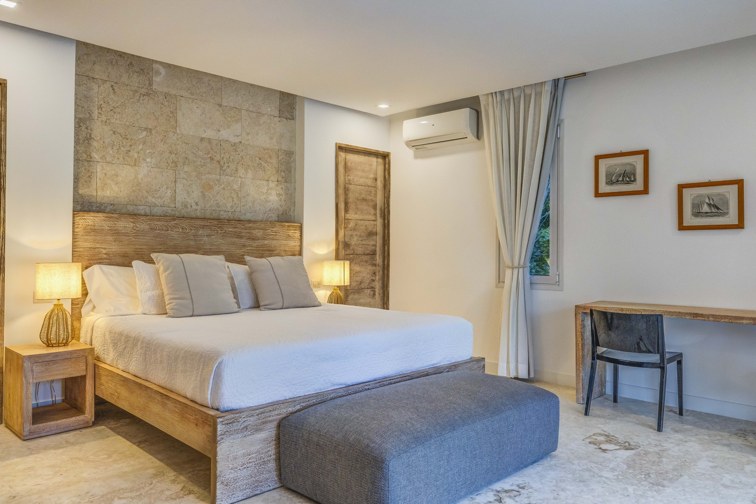 Villa Starfish stands out for its unique, minimalist and modern design with influences from Malibu and Beverly Hills. The pop art style present throughout the house, along with details such as a bicycle hanging from the ceiling and colourful artworks, creates a vibrant, warm and contemporary atmosphere. It is a space entirely designed for those seeking originality, style and comfort in an exclusive Caribbean setting.
