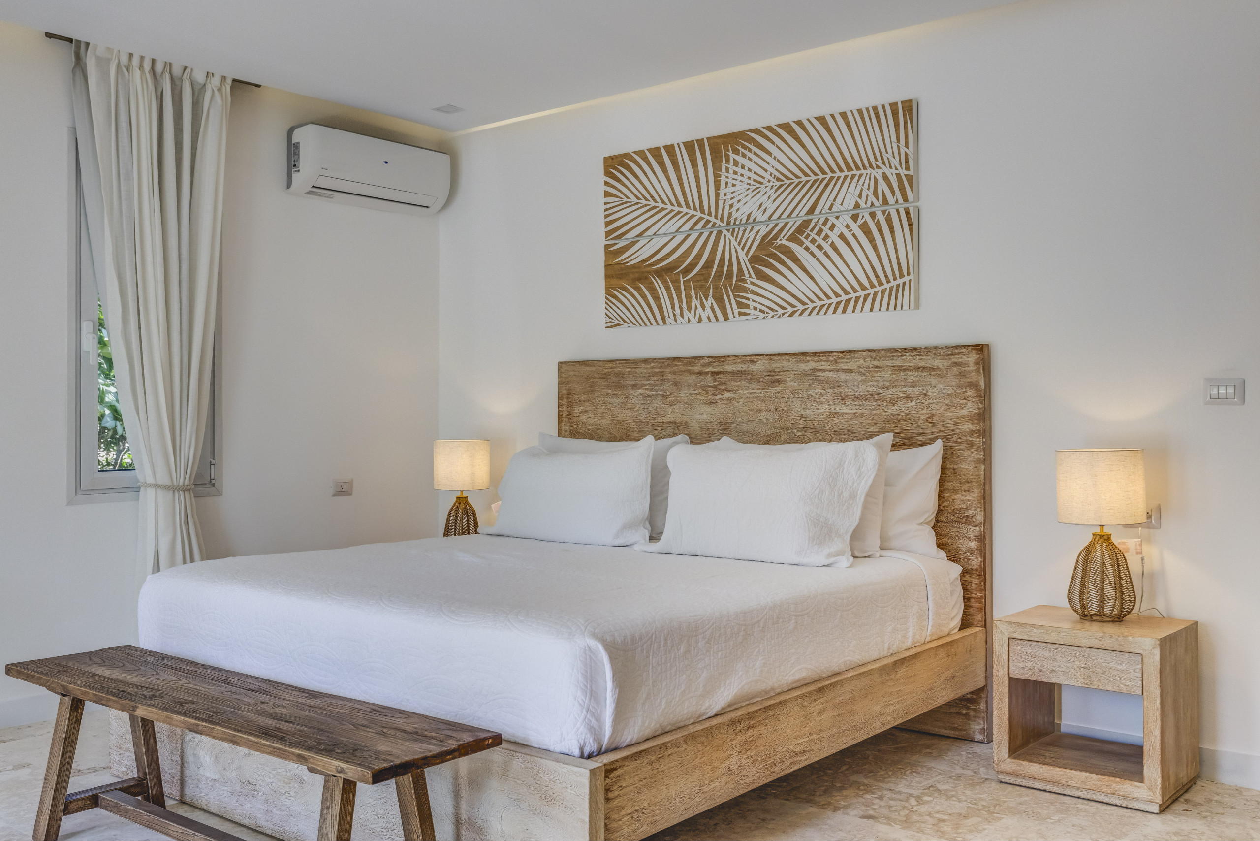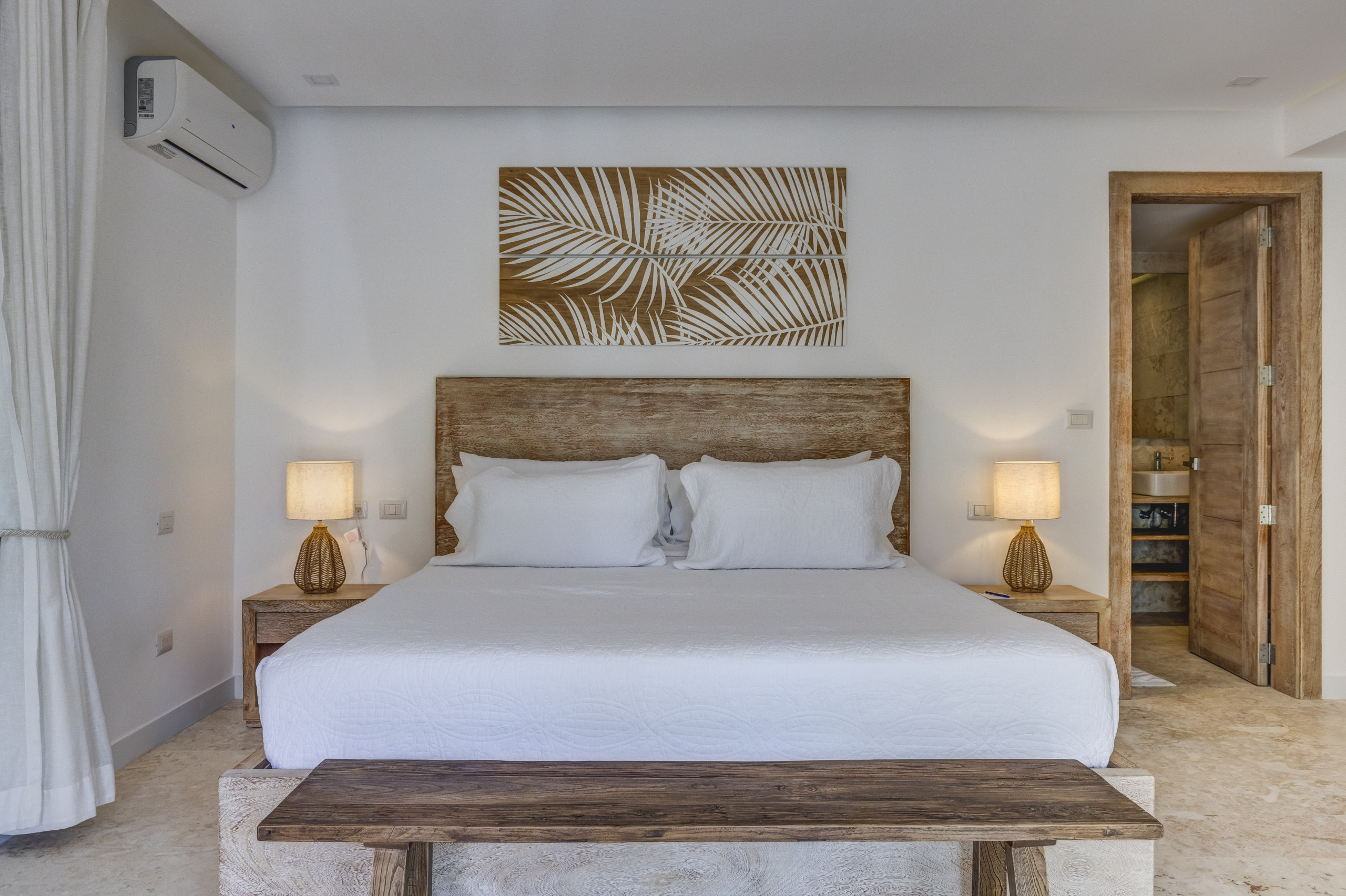 Private check-in at the property, Welcome drinks & snacks, Luxury Frederic Malle bathroom amenities, Cable TV & high-speed WiFi. Roundtrip airport transfer courtesy service from Punta Cana Airport (PUJ) may be arranged upon prior request and is subject to provider availability and scheduling conditions.