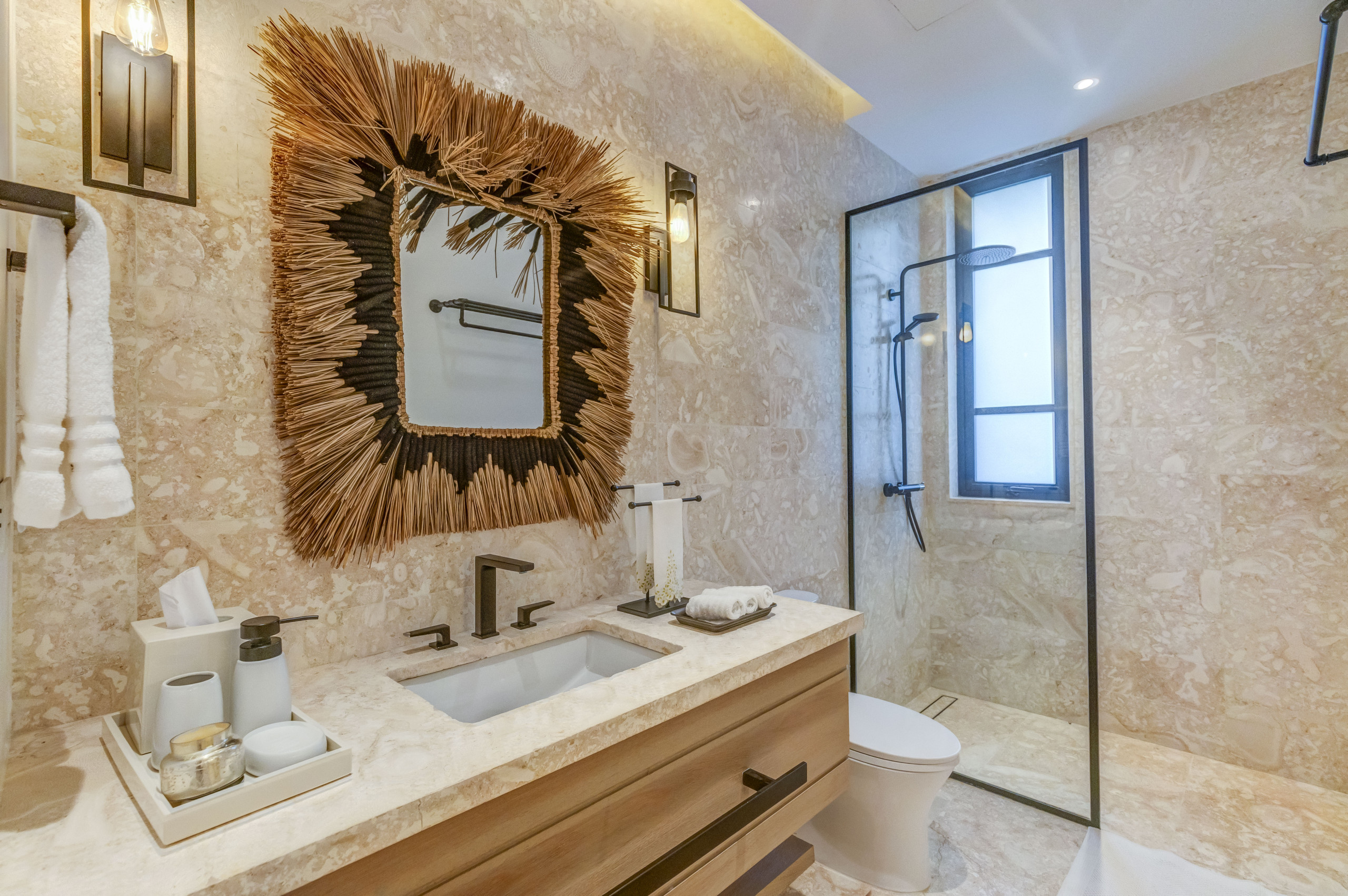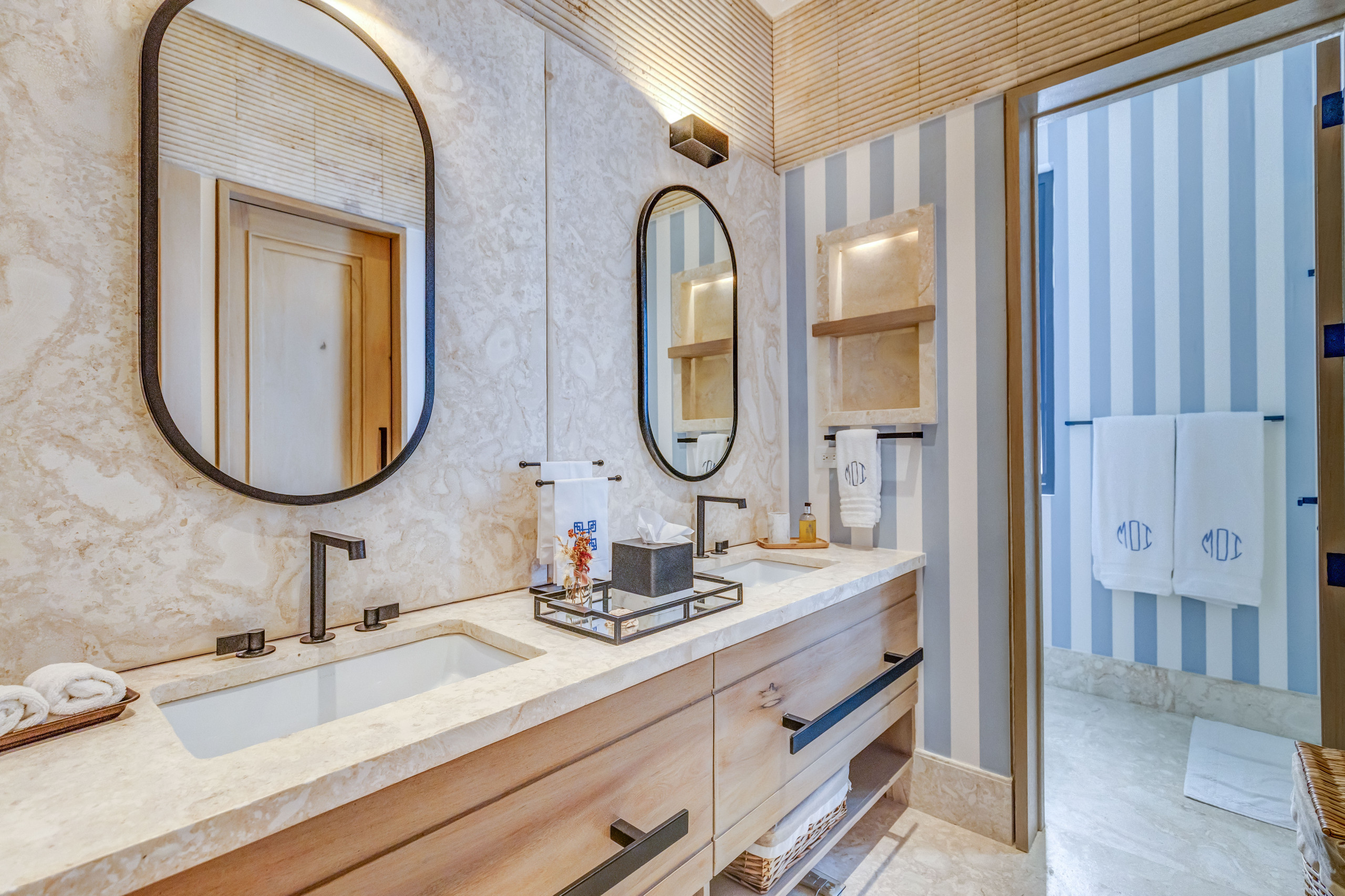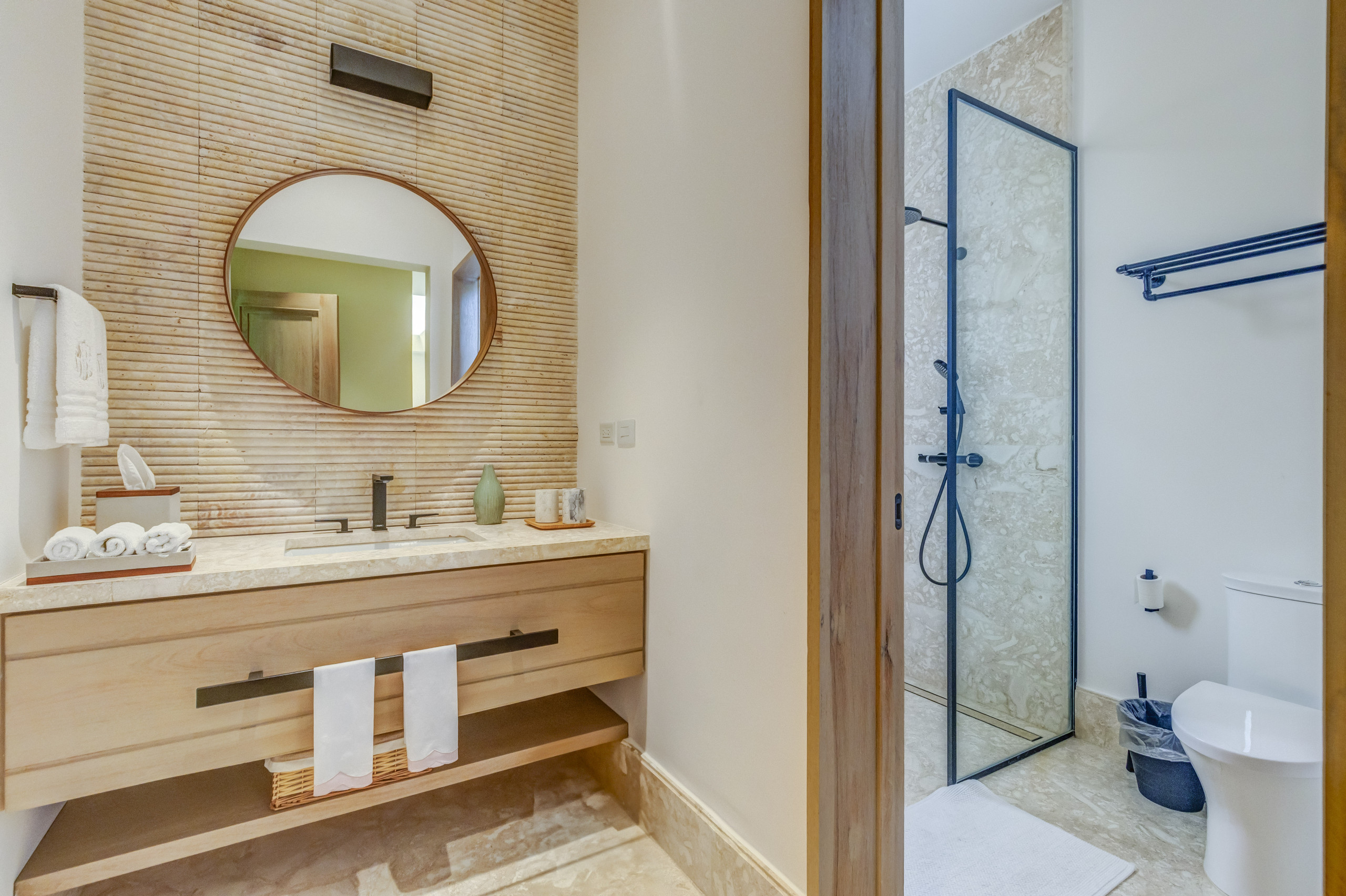 Private check-in at the property, Welcome drinks & snacks, Luxury Frederic Malle bathroom amenities, Cable TV & high-speed WiFi. Roundtrip airport transfer courtesy service from Punta Cana Airport (PUJ) may be arranged upon prior request and is subject to provider availability and scheduling conditions.