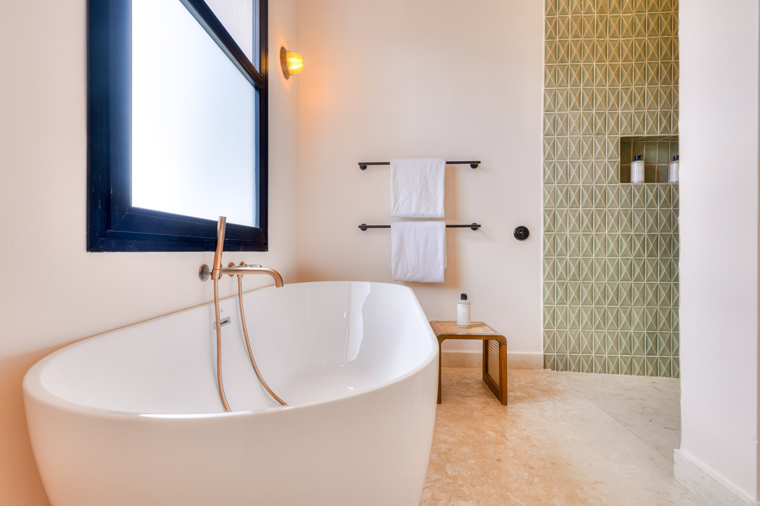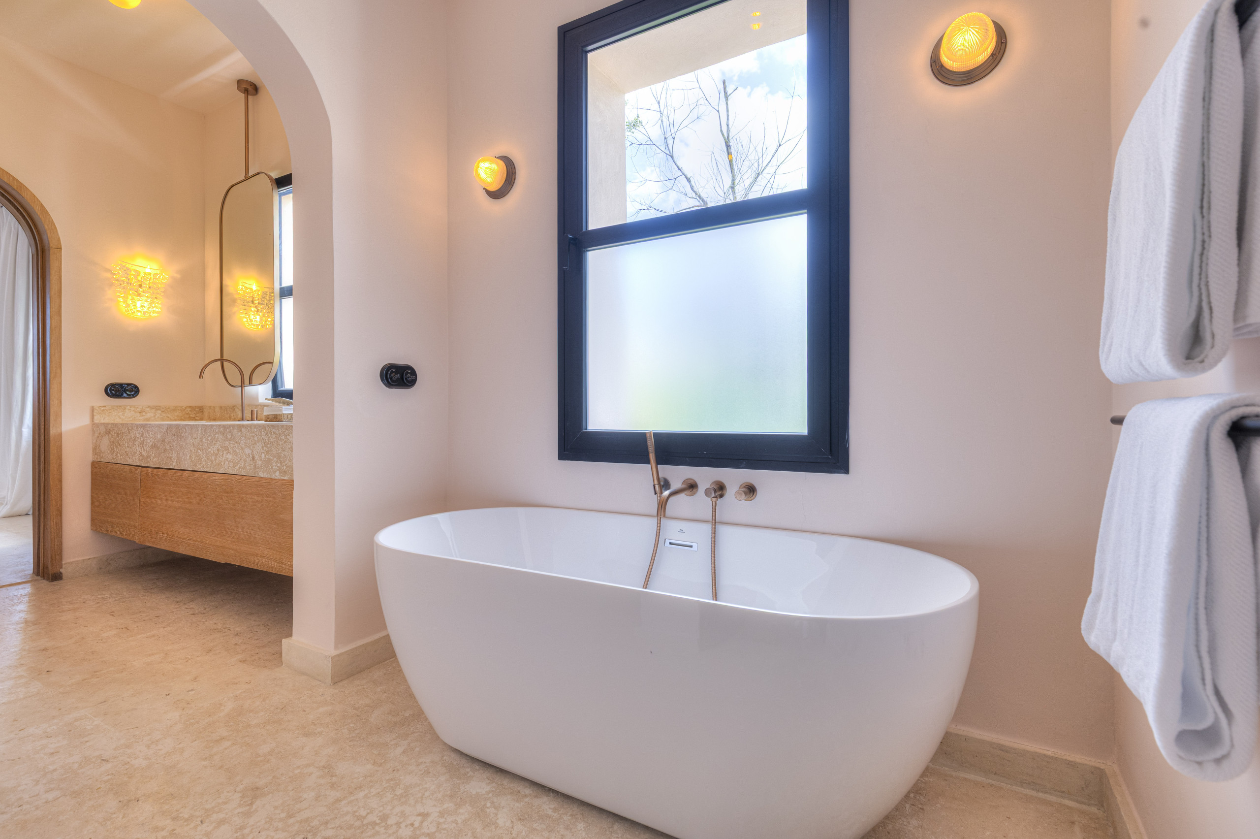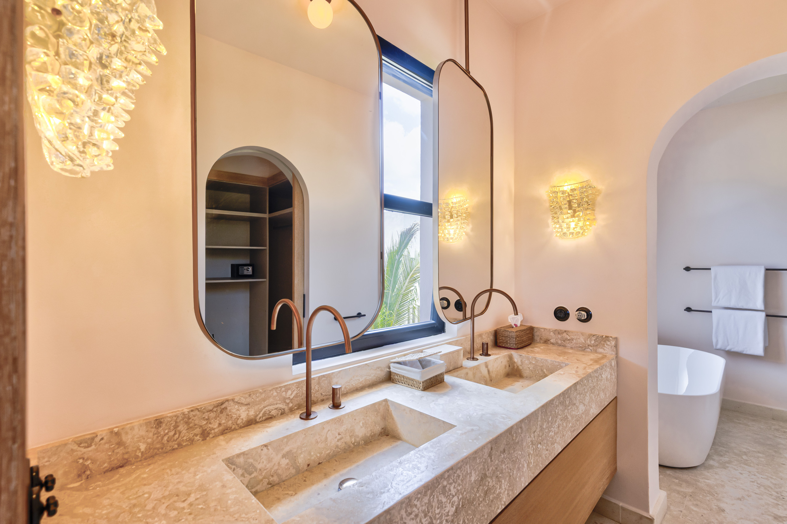 Private check-in at the property, Welcome drinks & snacks, Luxury Frederic Malle bathroom amenities, Cable TV & high-speed WiFi. Roundtrip airport transfer courtesy service from Punta Cana Airport (PUJ) may be arranged upon prior request and is subject to provider availability and scheduling conditions.