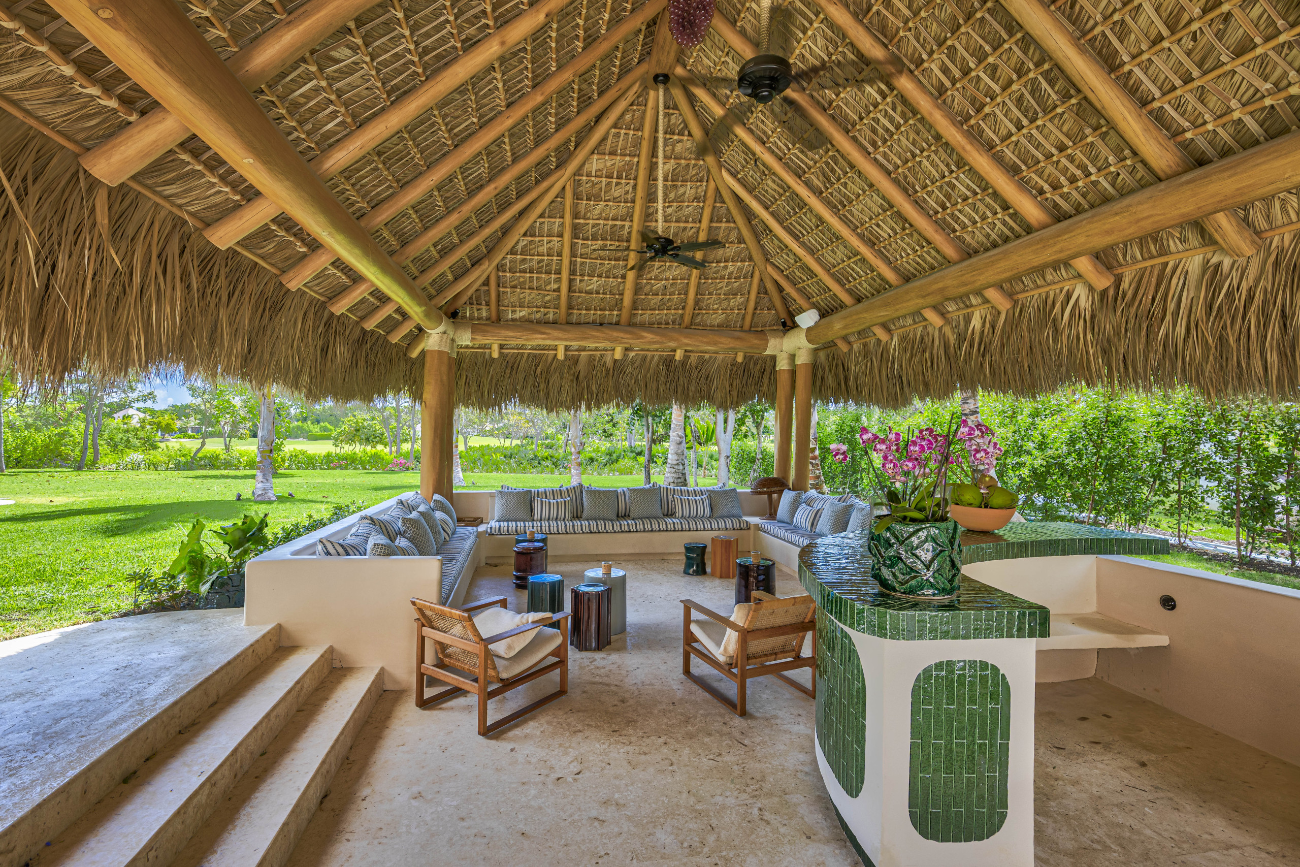 The villa is located in the exclusive gated community of Puntacana Resort & Club, just ten minutes from Punta Cana International Airport. The complex offers over 26 square miles of beaches, green areas, restaurants, sports activities, and a luxurious Caribbean atmosphere.