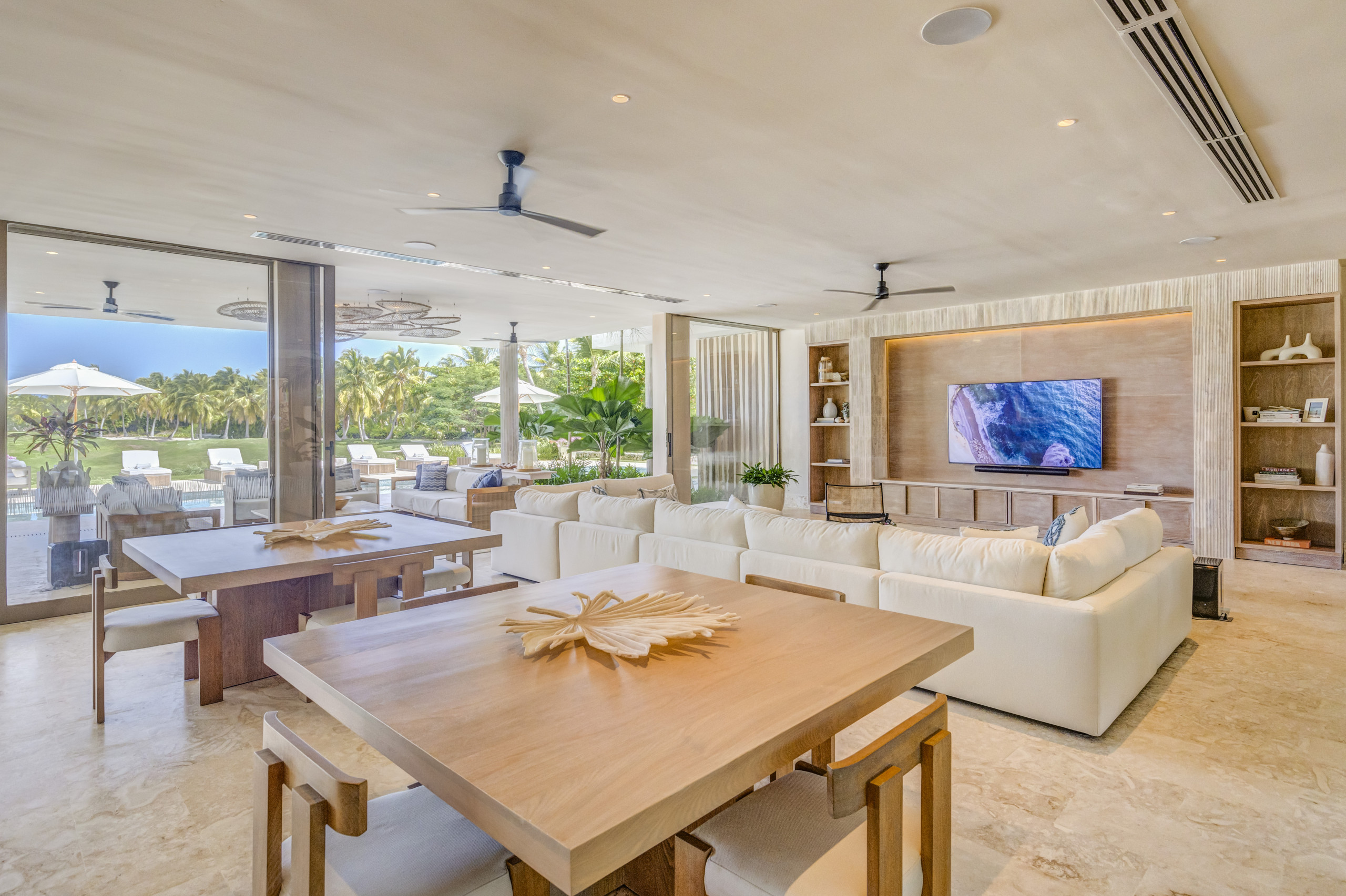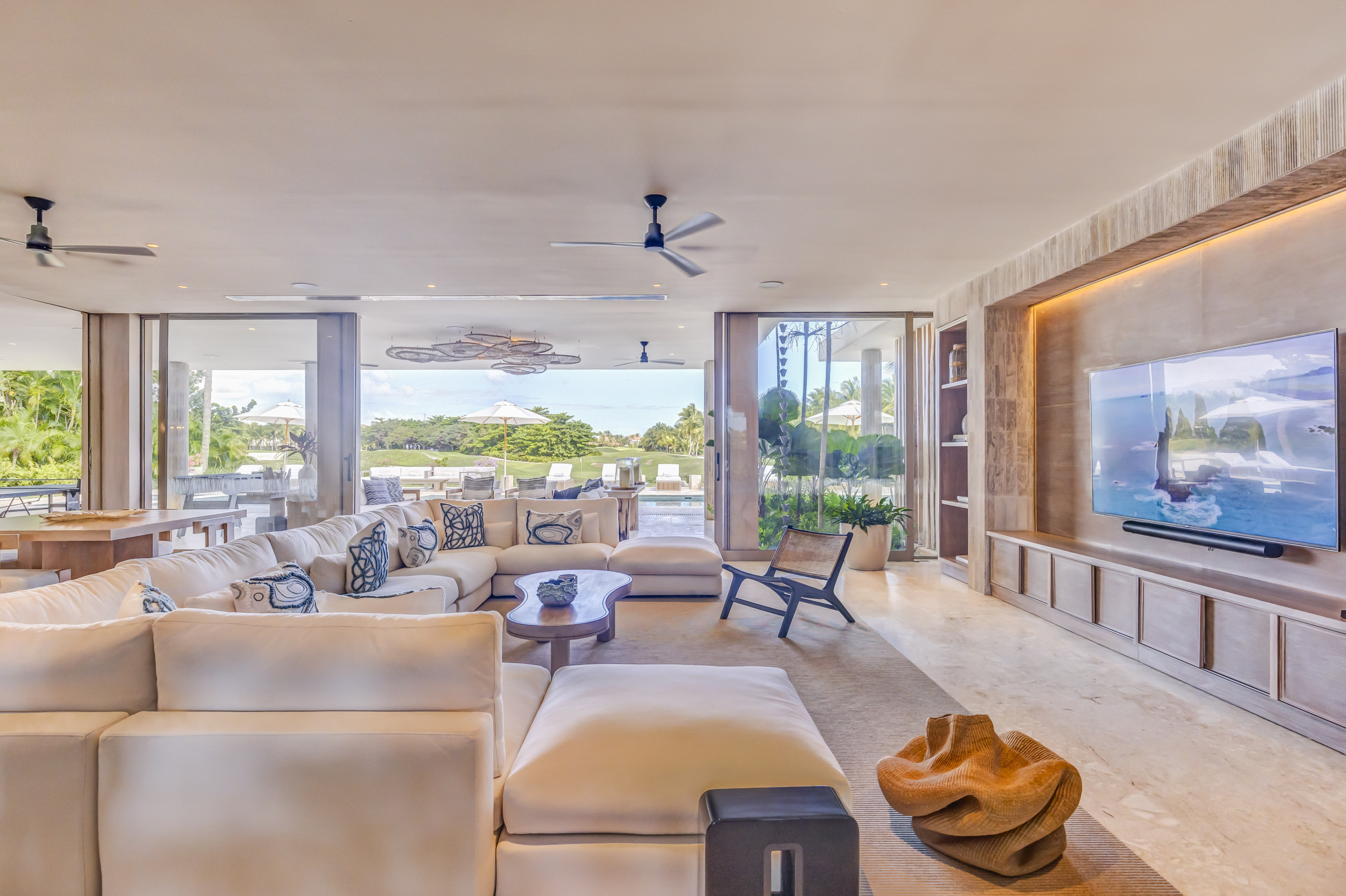 This impressive nine-bedroom villa has been conceived as a Caribbean architectural landmark, built on the pillars of modernism, minimalism, and avant-garde design. Located just 400 metres from La Cana Golf & Beach Club—only three minutes by golf cart—and eight minutes from Playa Blanca, its location guarantees comfort, privacy, and immediate access to the best of the resort.