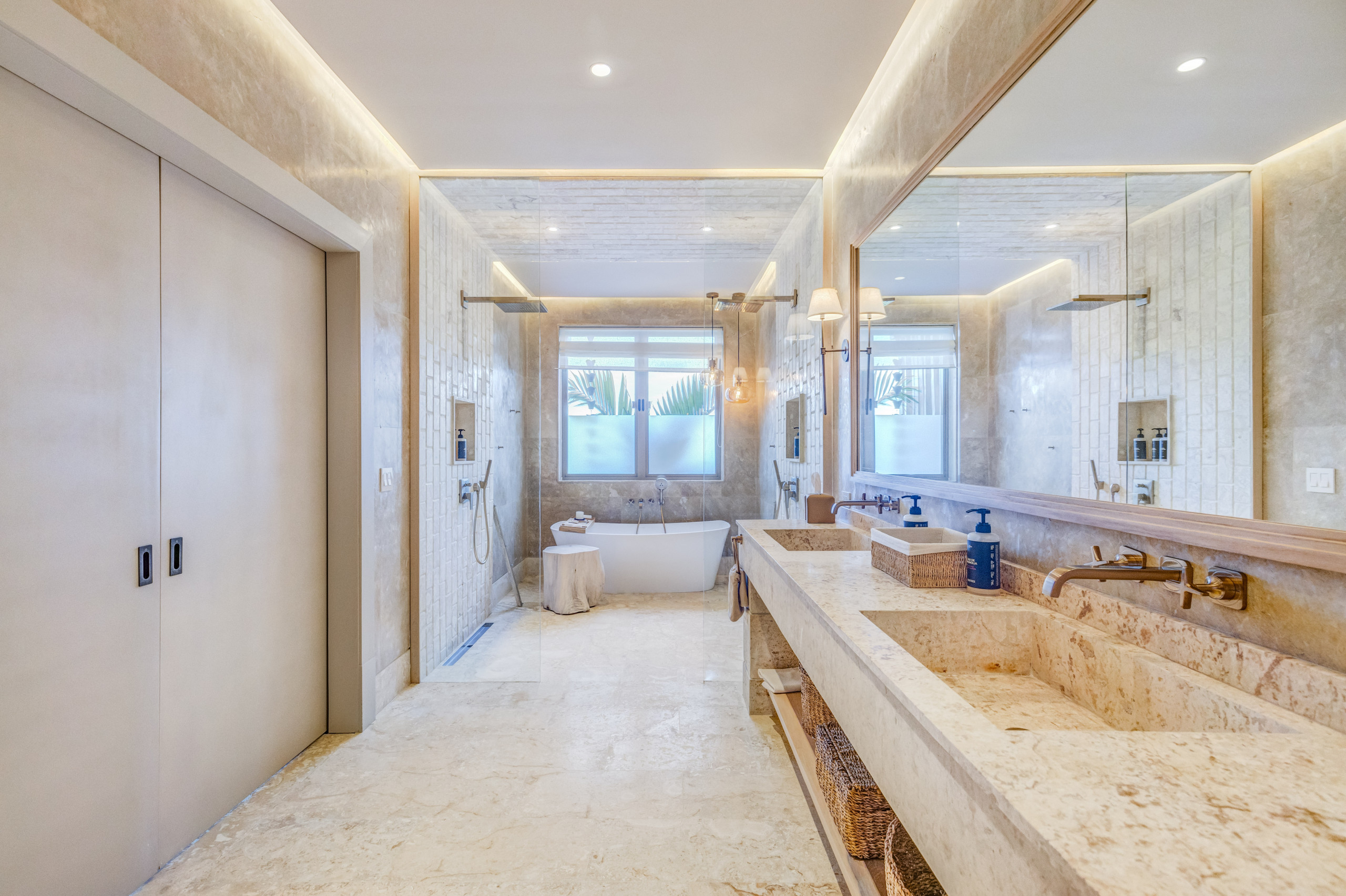 All rooms have a private bathroom. At least one staff member remains available 24 hours in the designated service area. The villa can also be rented with 6, 7, or 8 bedrooms, except during special dates such as high season, holidays, or Spring Break.